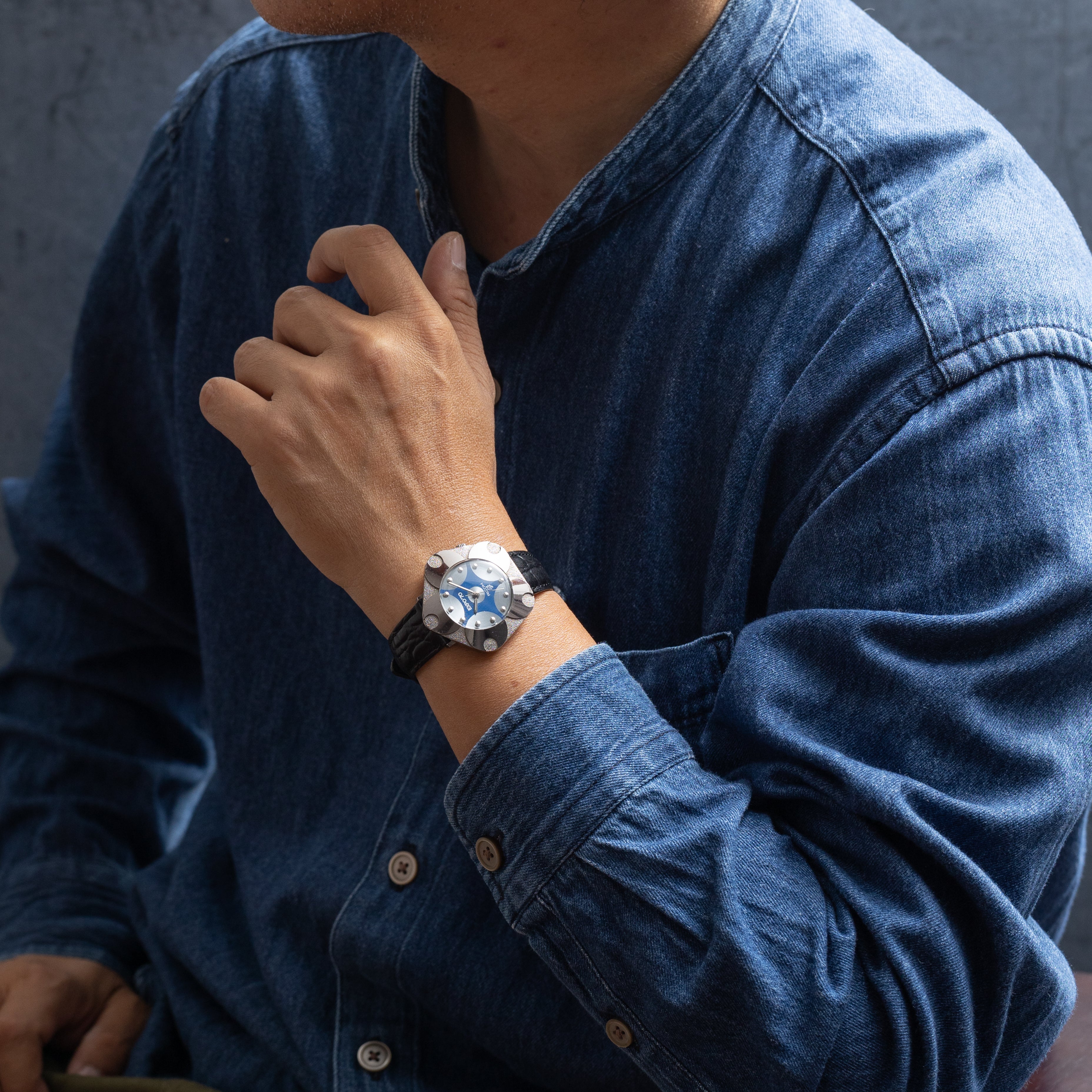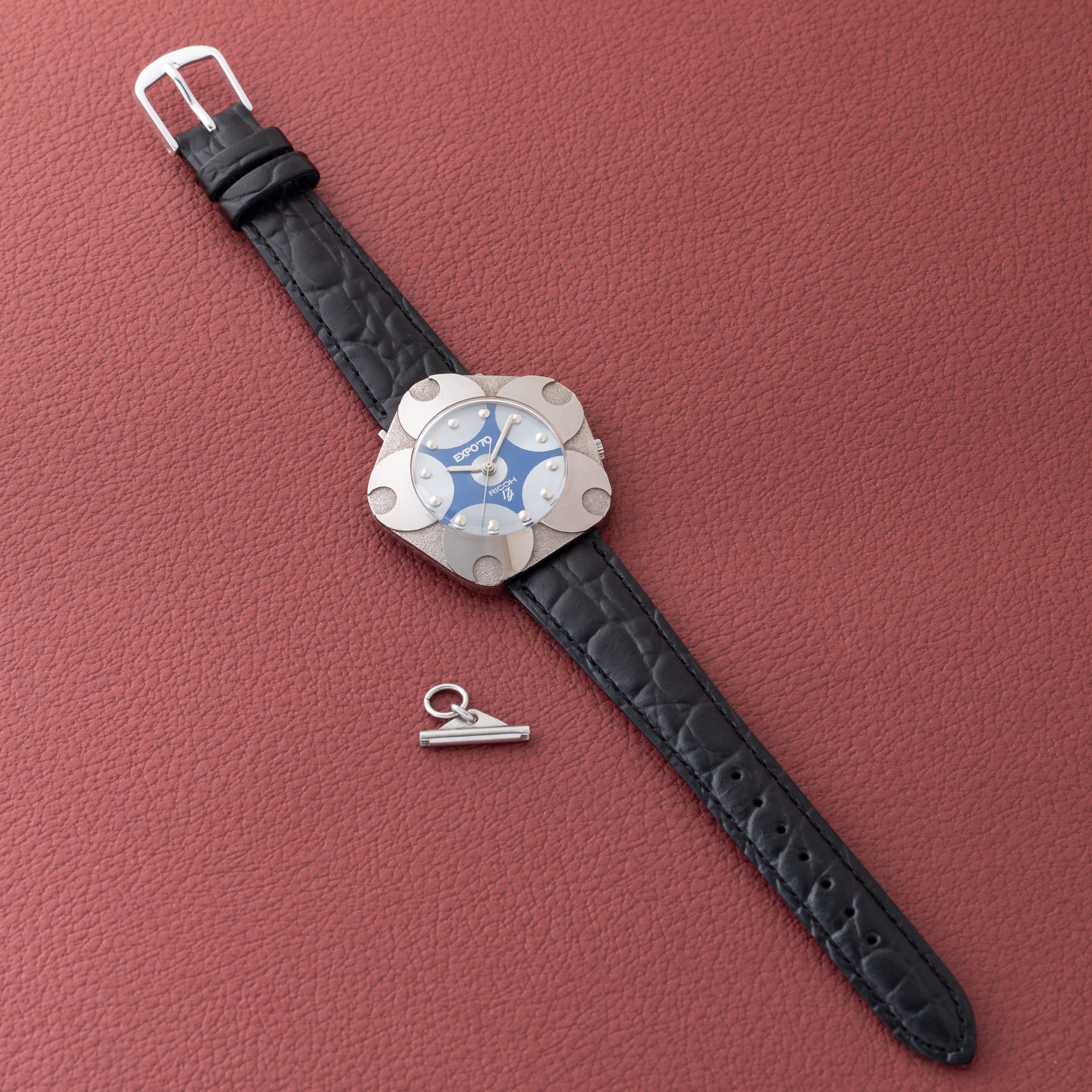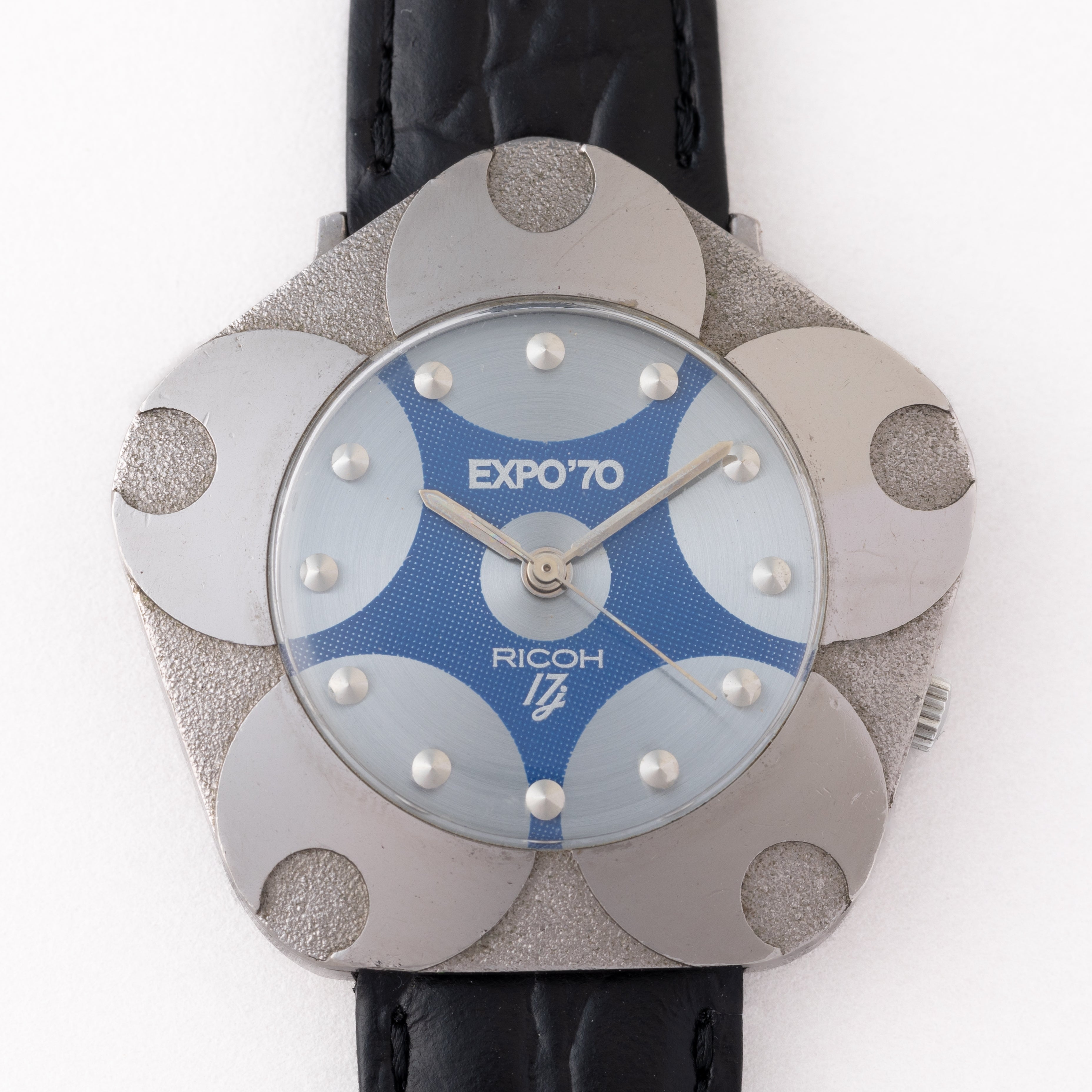 リコー 大阪万博記念モデル 1970年製 ロジウムメッキ ブルー文字盤 ペンダント用金具付き