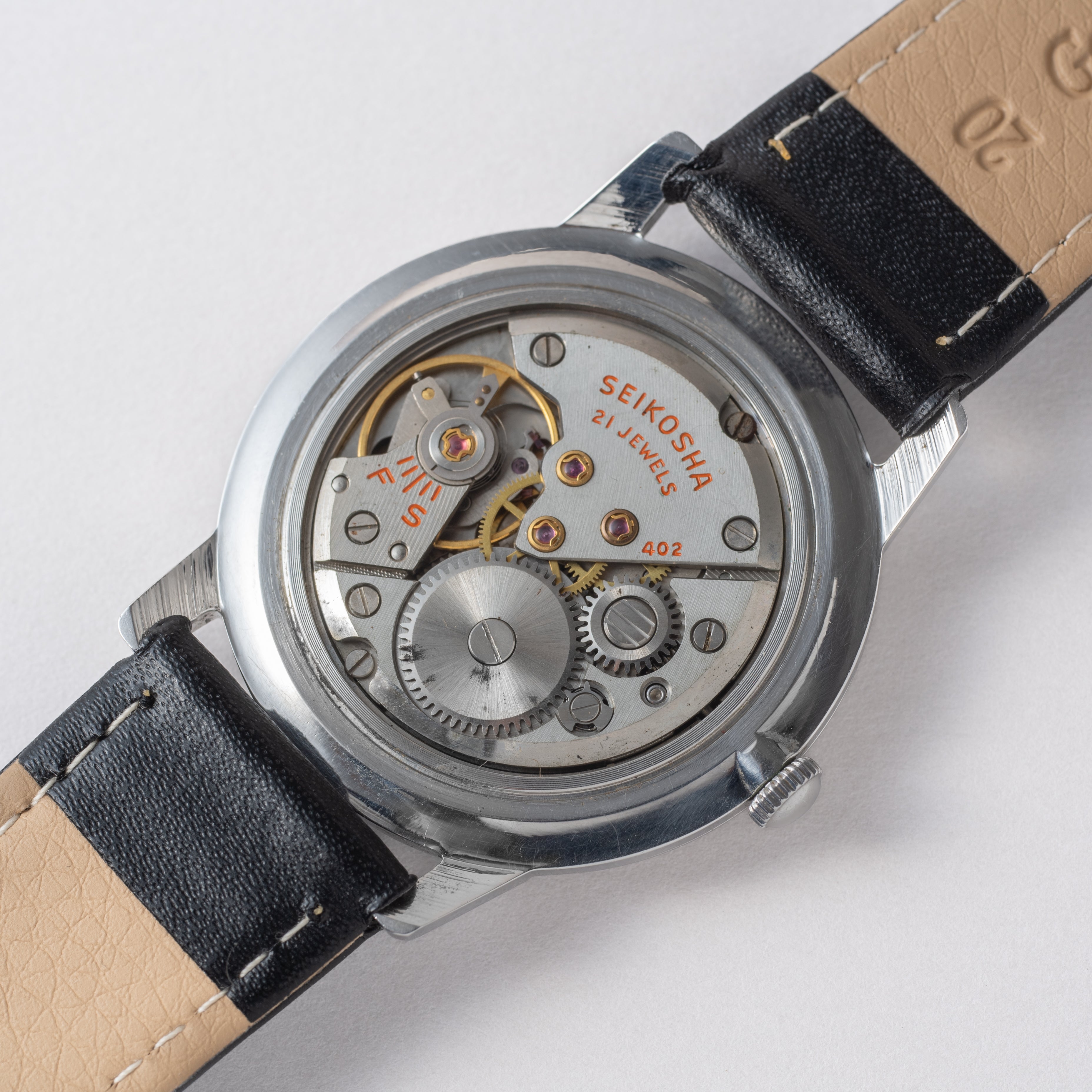 - ヴィンテージ時計の特性上、風防・パッキン・リューズ・バネ棒などの消耗部品は後年メンテナンス過程で交換されている場合がございます。オリジナル性を重視しておりますが、必要に応じて適切な部品にて調整されていますので、よりコレクション性重視のお求めのお客様は事前にご確認ください。