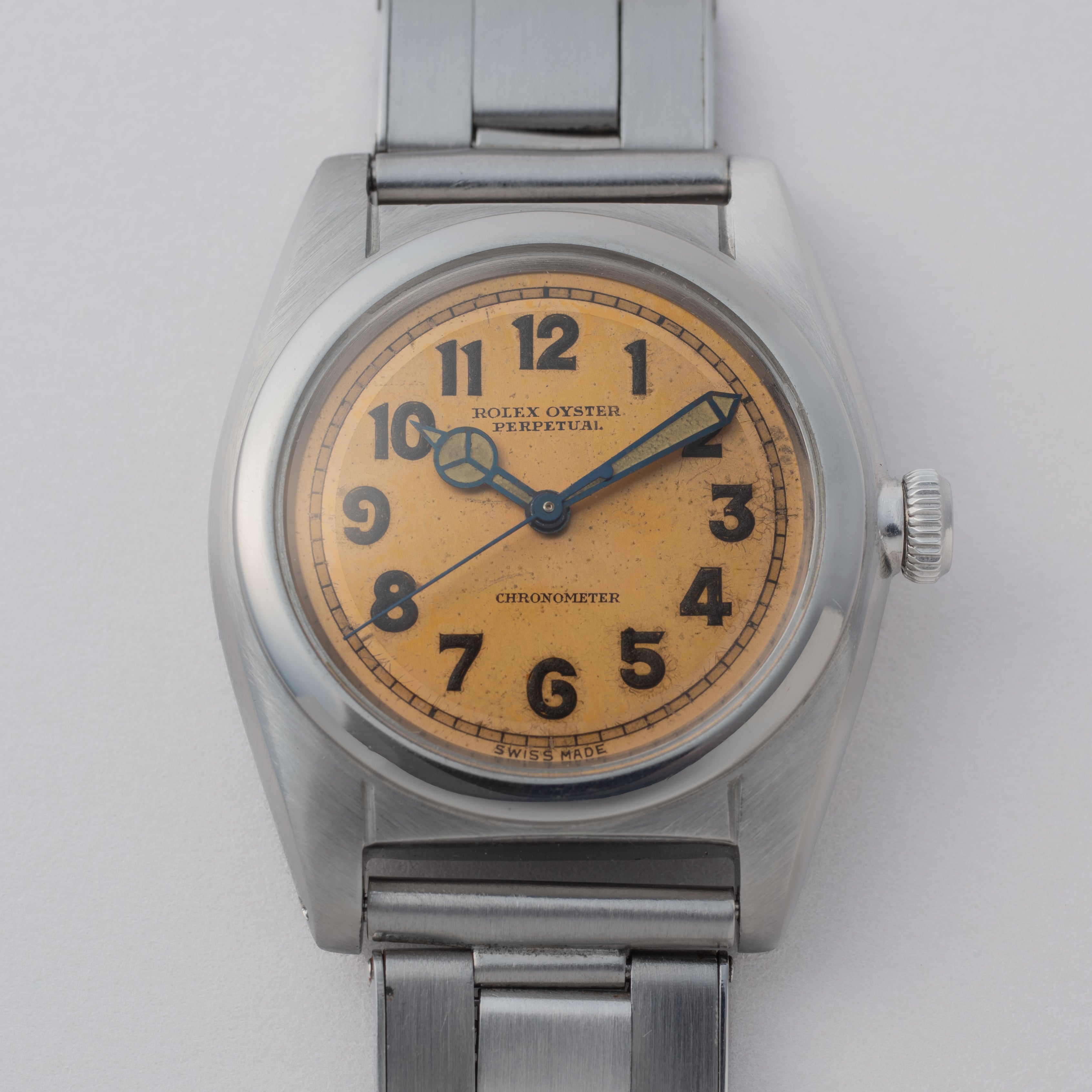 ロレックス バブルバック 1940年代製 センターセコンド 全アラビア数字 ベンツ針 エクステンションリベットブレス付き Ref.2940