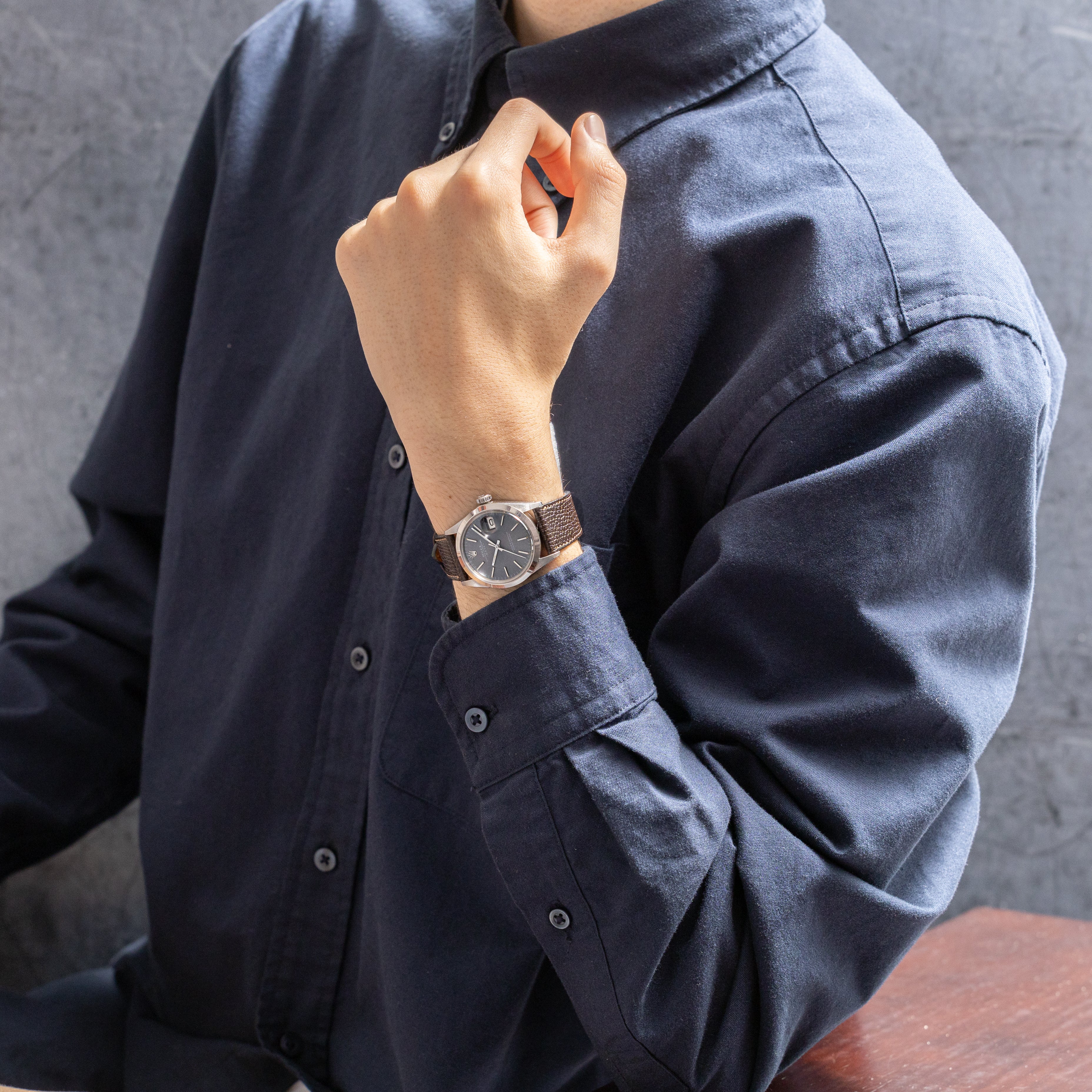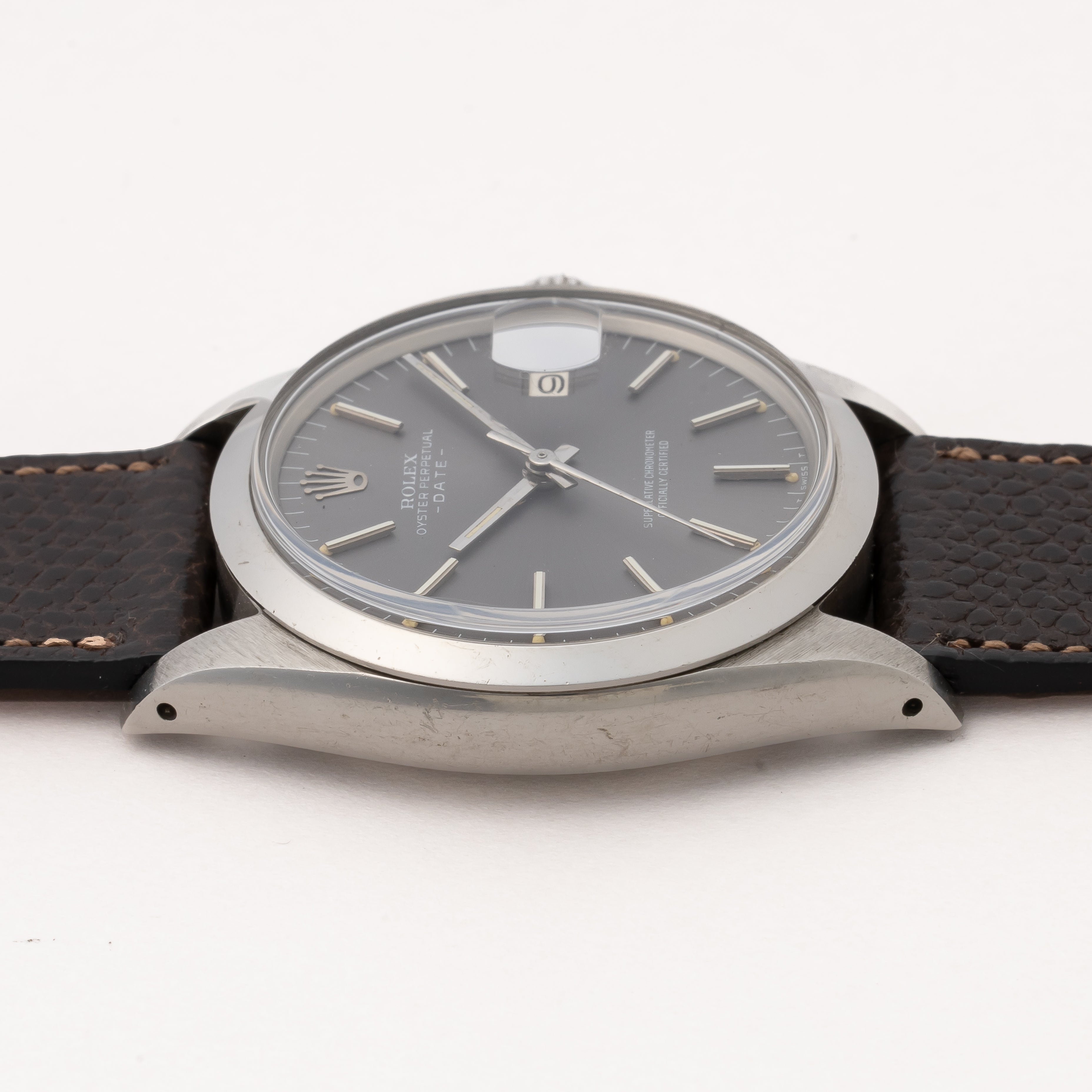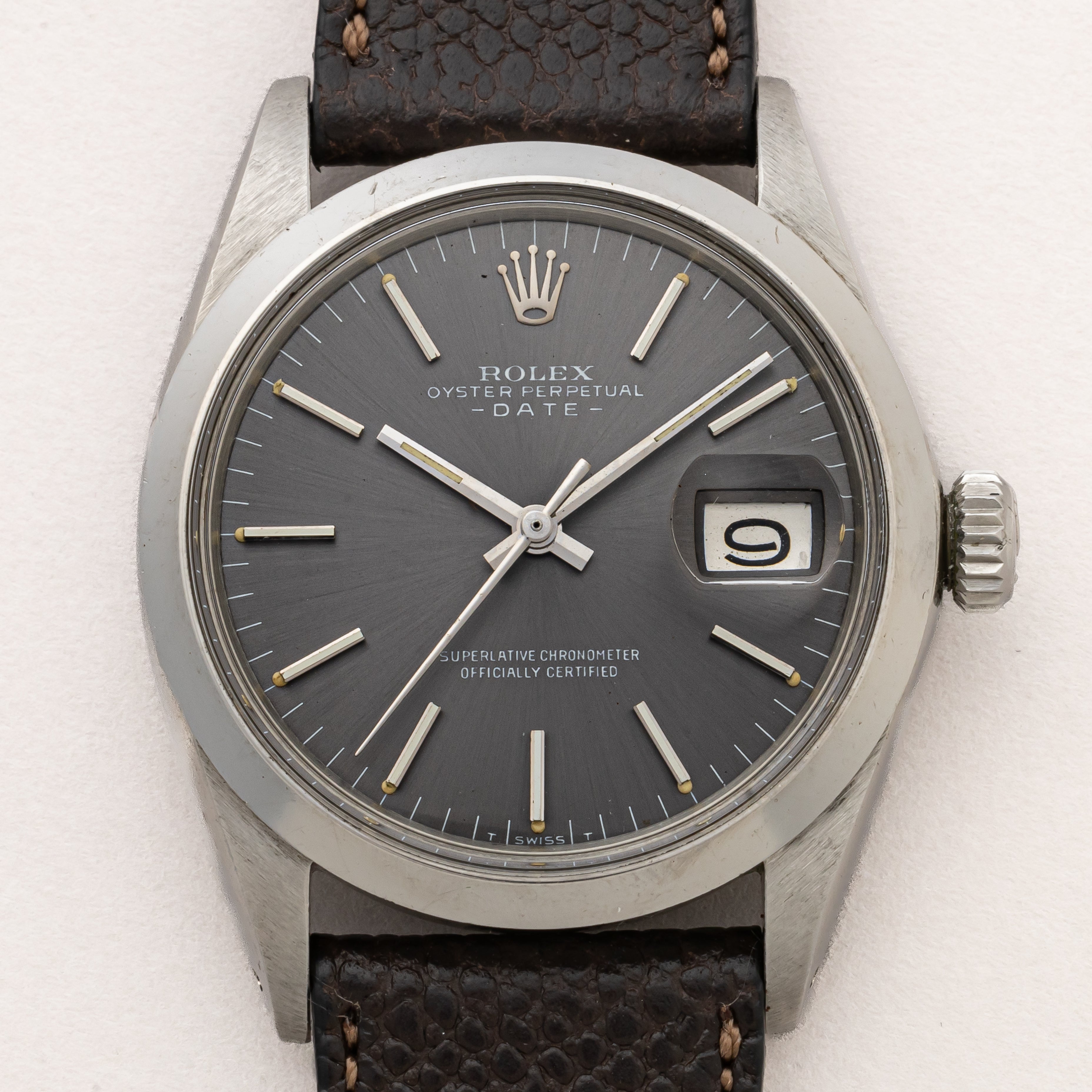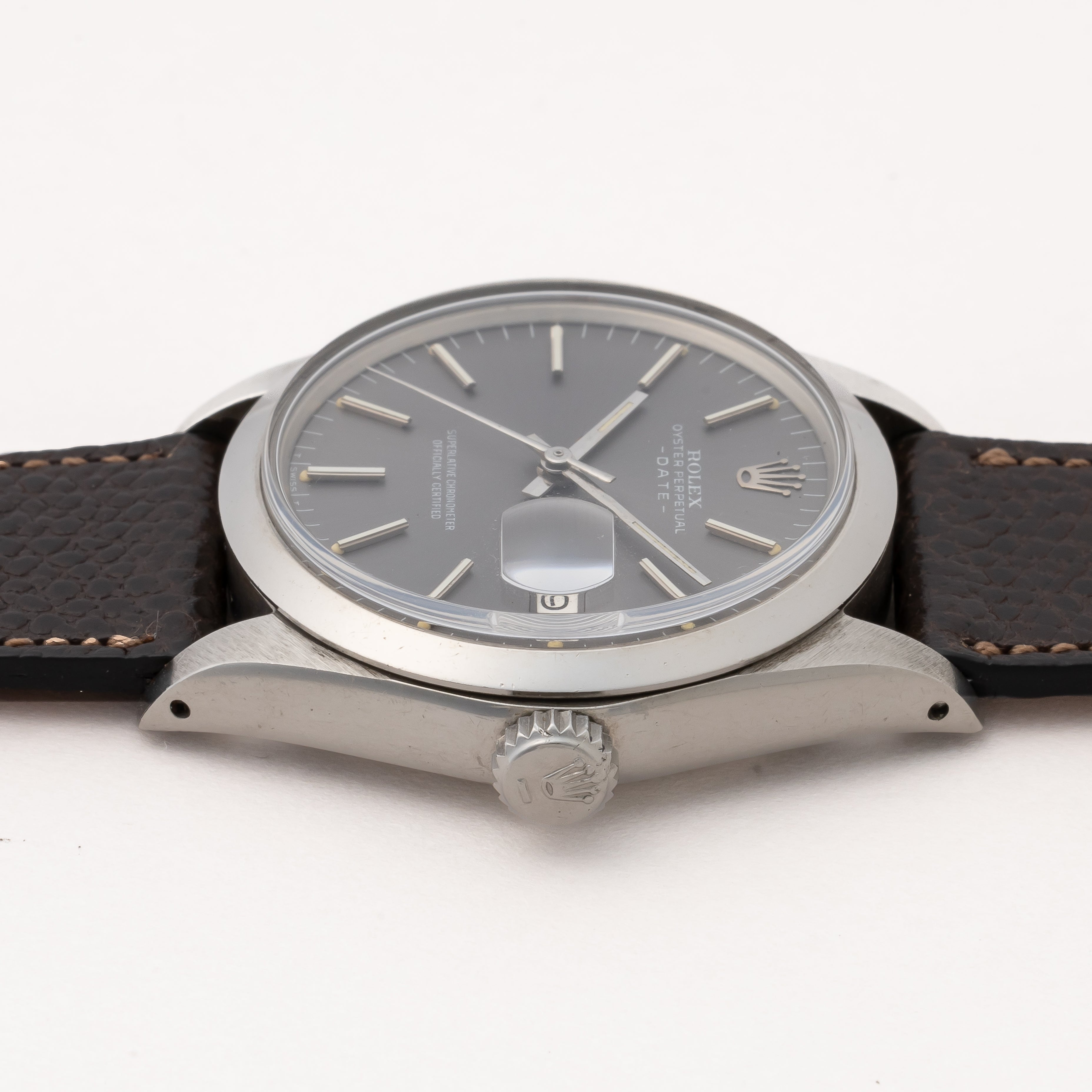 ロレックス 1970年製/昭和45年製 オイスターパーペチュアルデイト Ref.1500 グレーダイヤル 純正革ベルト付き