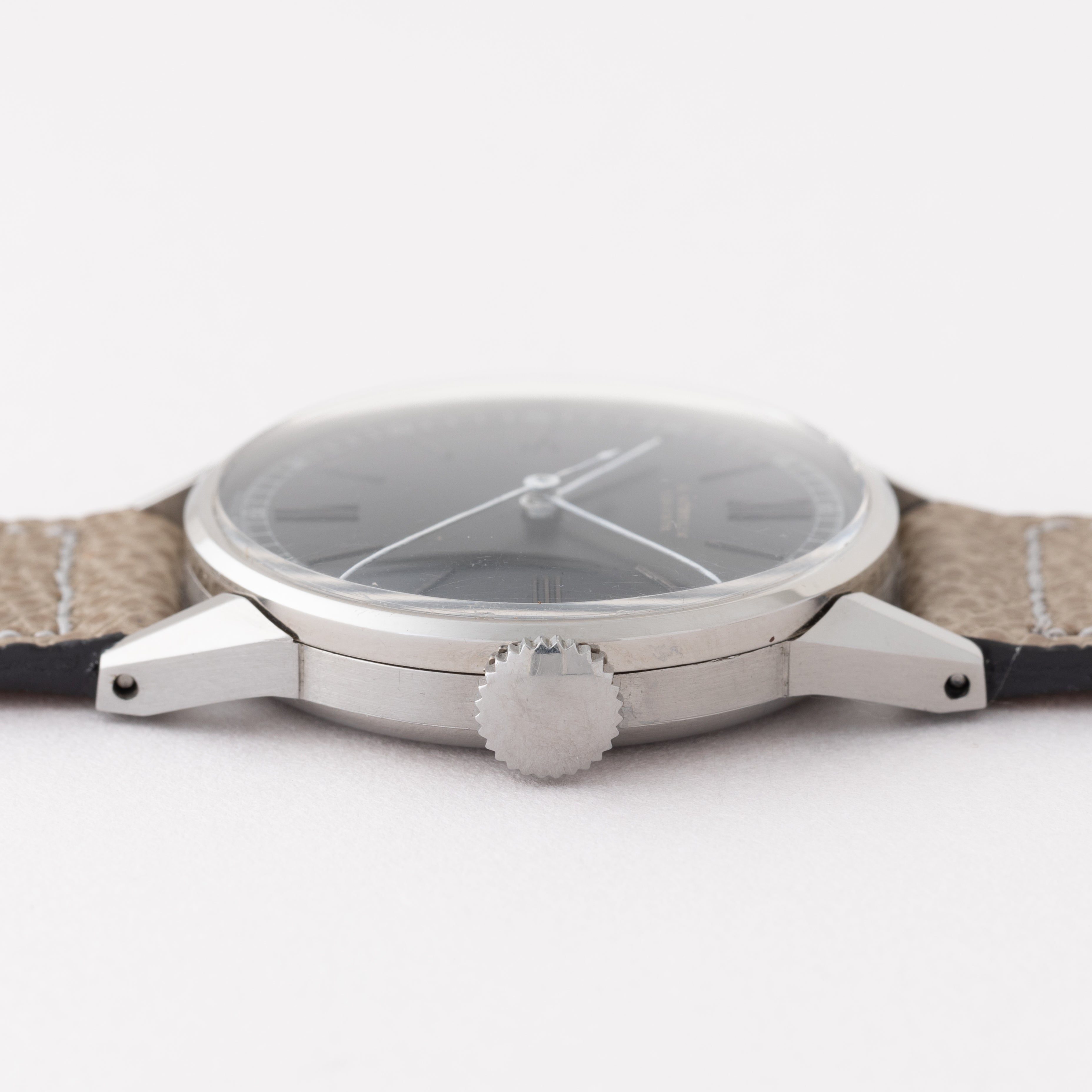 - ヴィンテージ時計の特性上、風防・パッキン・リューズ・バネ棒などの消耗部品は後年メンテナンス過程で交換されている場合がございます。オリジナル性を重視しておりますが、必要に応じて適切な部品にて調整されていますので、よりコレクション性重視のお求めのお客様は事前にご確認ください。