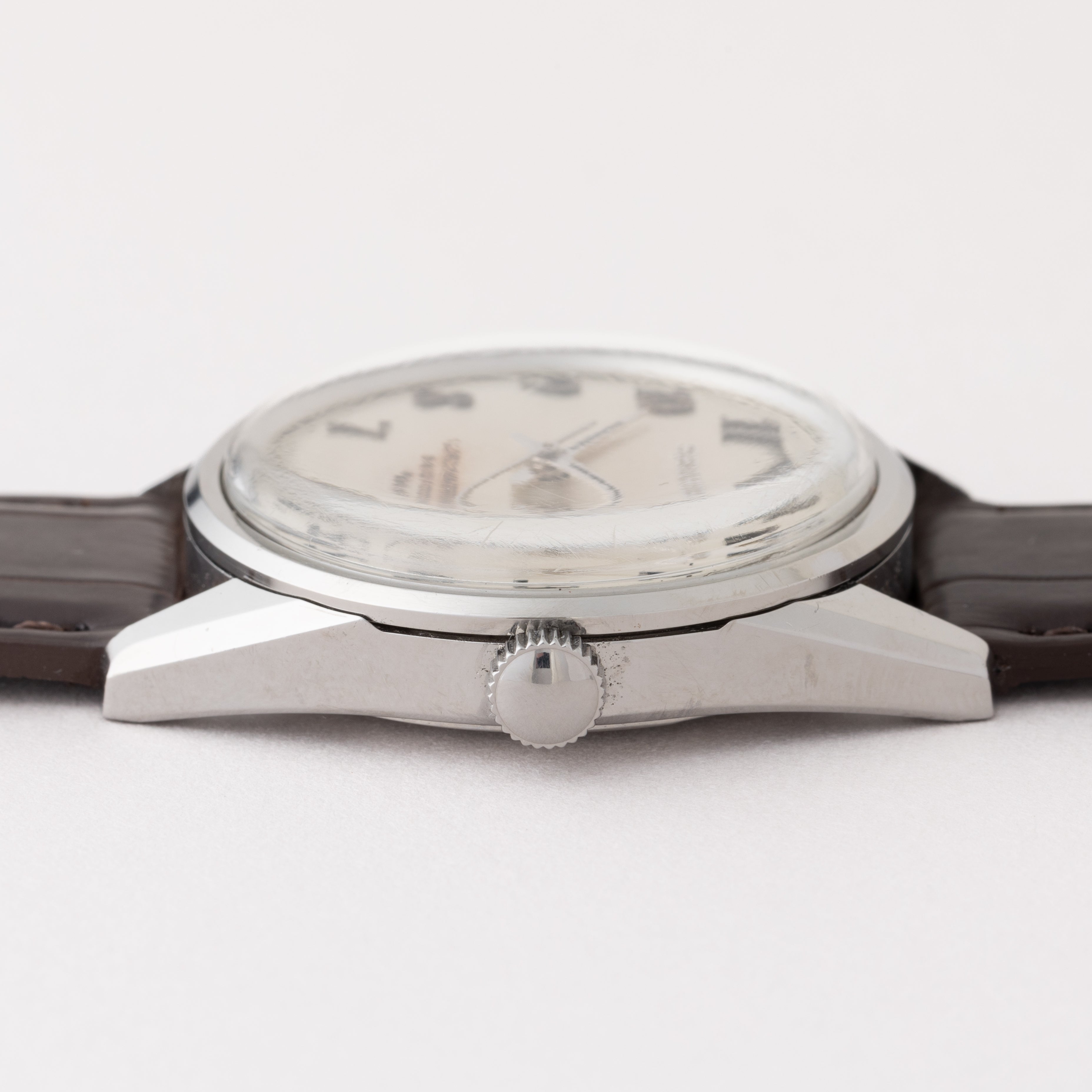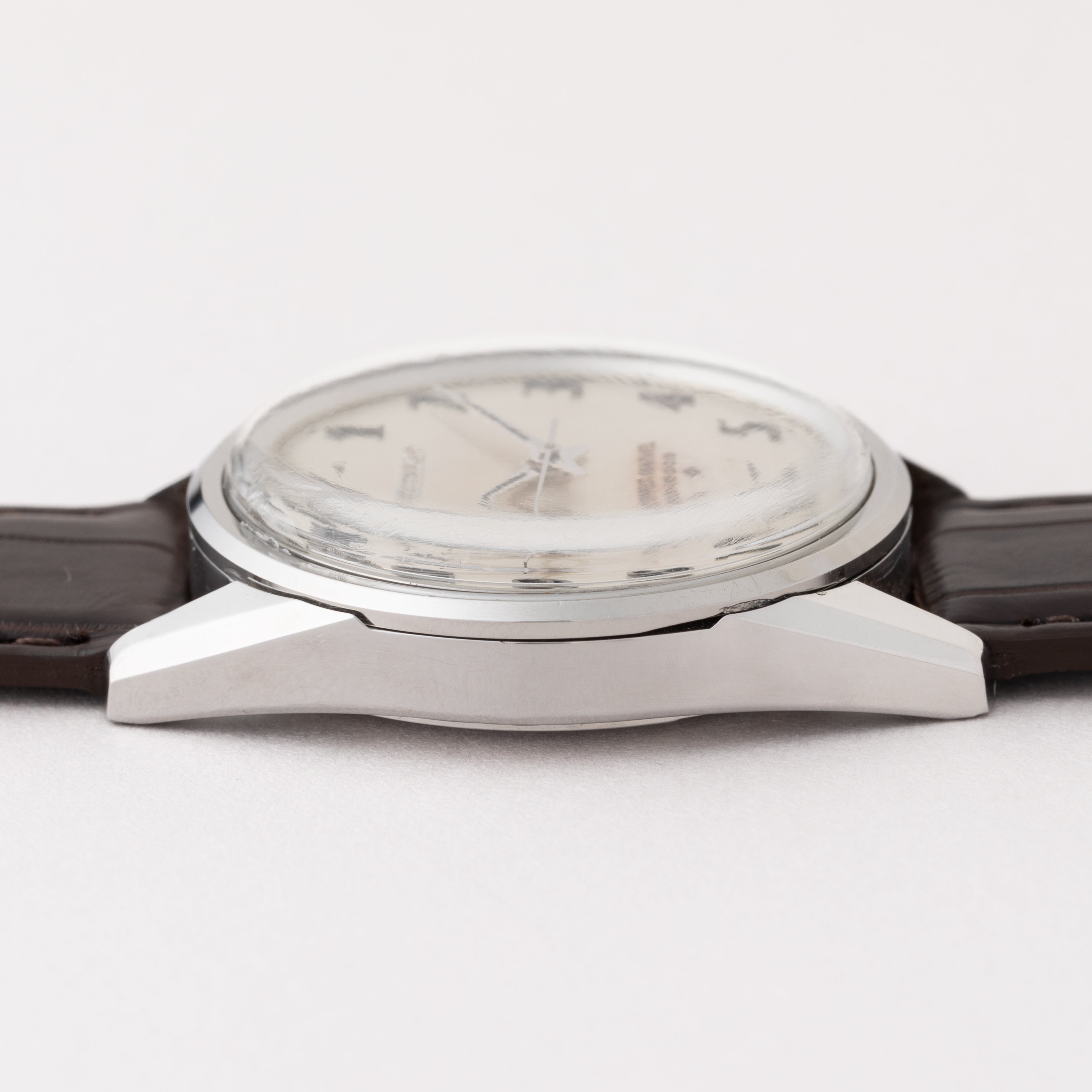 - ヴィンテージ時計の特性上、風防・パッキン・リューズ・バネ棒などの消耗部品は後年メンテナンス過程で交換されている場合がございます。オリジナル性を重視しておりますが、必要に応じて適切な部品にて調整されていますので、よりコレクション性重視のお求めのお客様は事前にご確認ください。