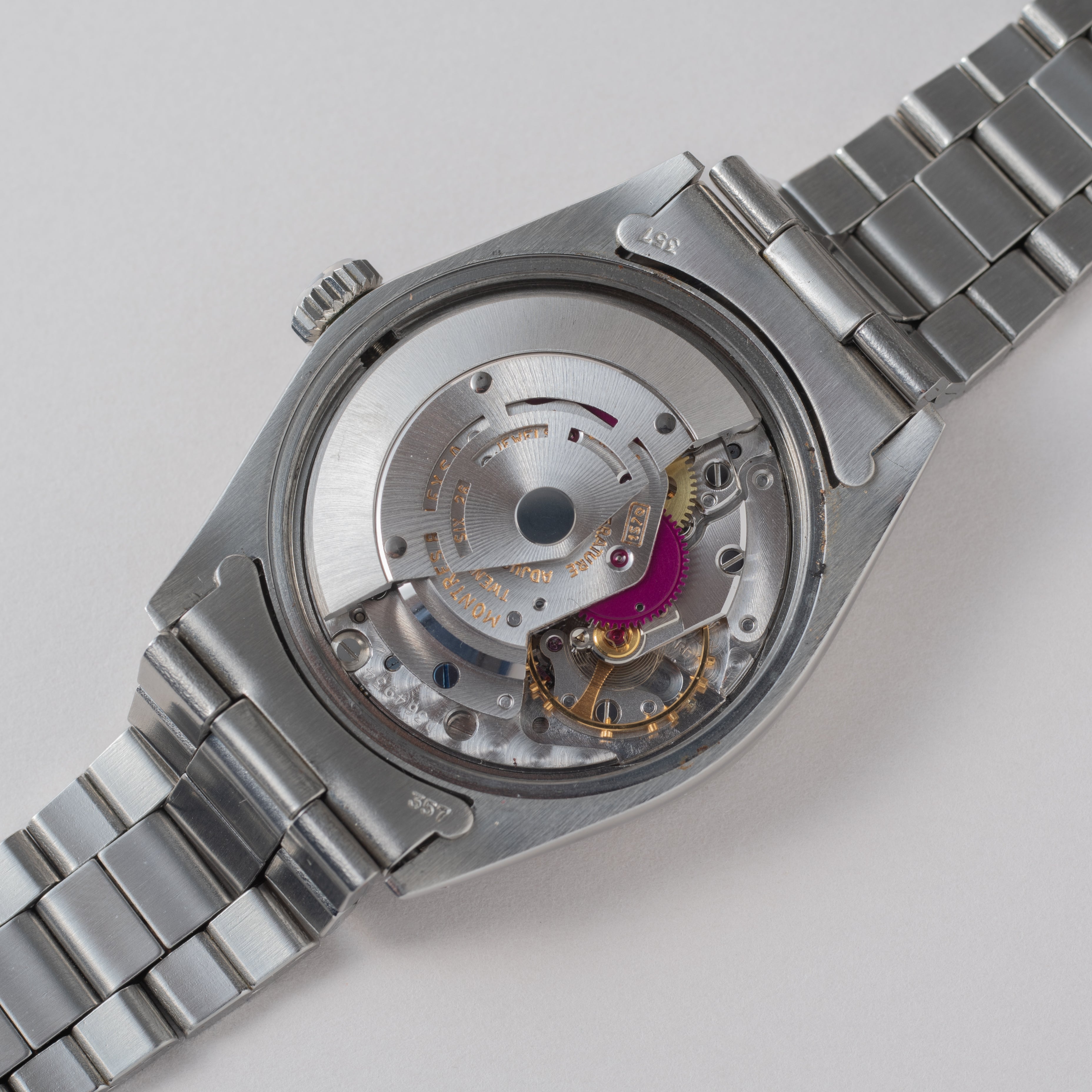 - ヴィンテージ時計の特性上、風防・パッキン・リューズ・バネ棒などの消耗部品は後年メンテナンス過程で交換されている場合がございます。オリジナル性を重視しておりますが、必要に応じて適切な部品にて調整されていますので、よりコレクション性重視のお求めのお客様は事前にご確認ください。