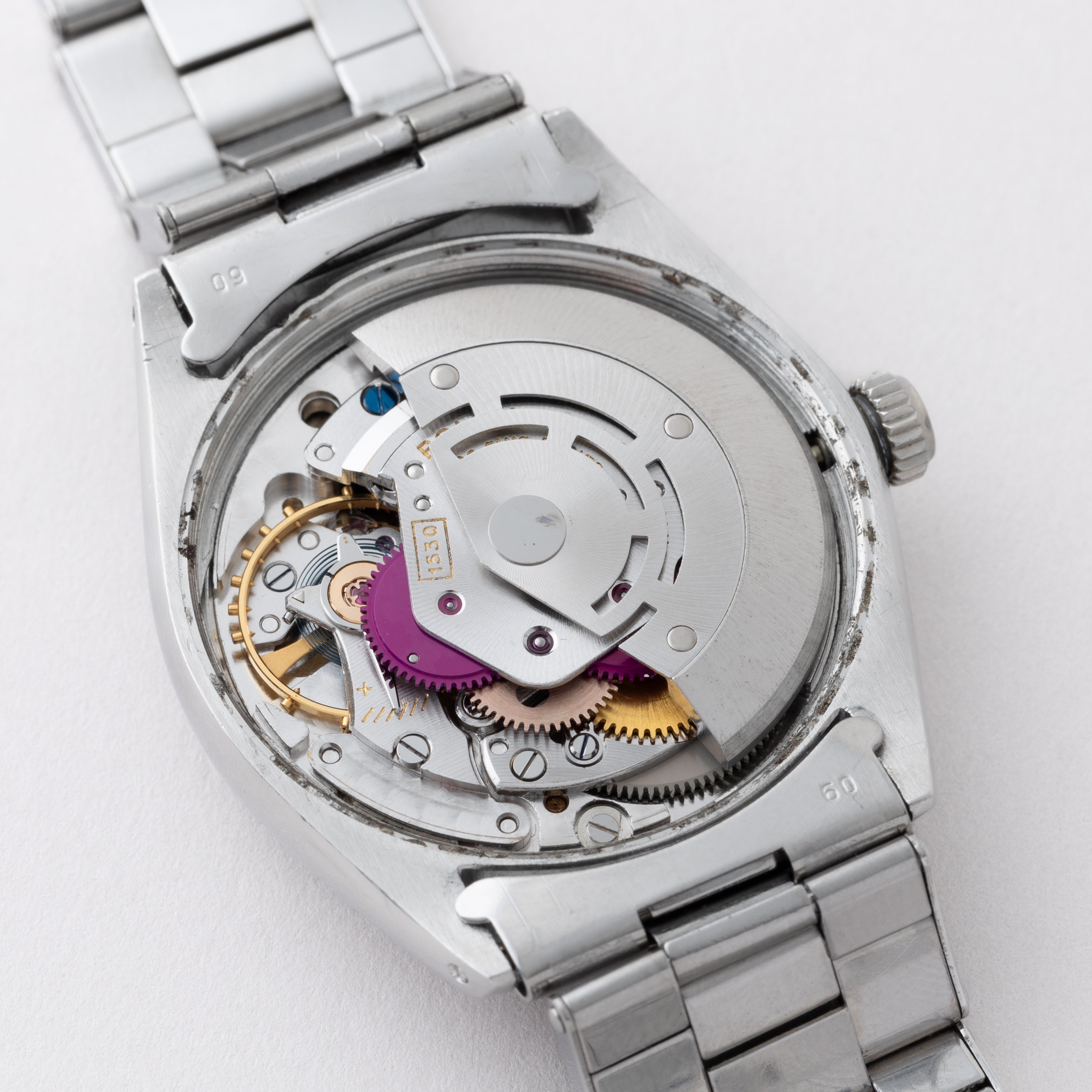 - ヴィンテージ時計の特性上、風防・パッキン・リューズ・バネ棒などの消耗部品は後年メンテナンス過程で交換されている場合がございます。オリジナル性を重視しておりますが、必要に応じて適切な部品にて調整されていますので、よりコレクション性重視のお求めのお客様は事前にご確認ください。