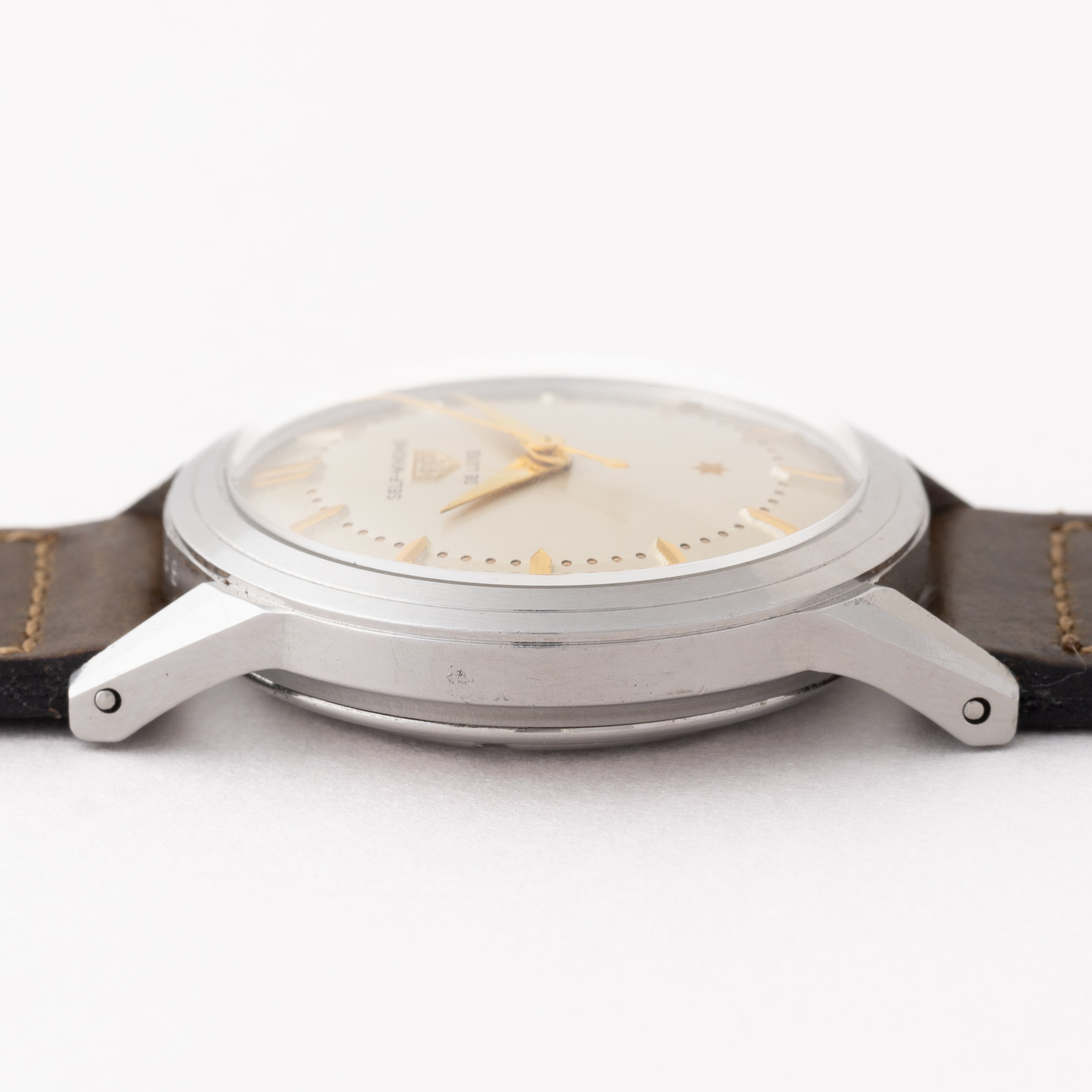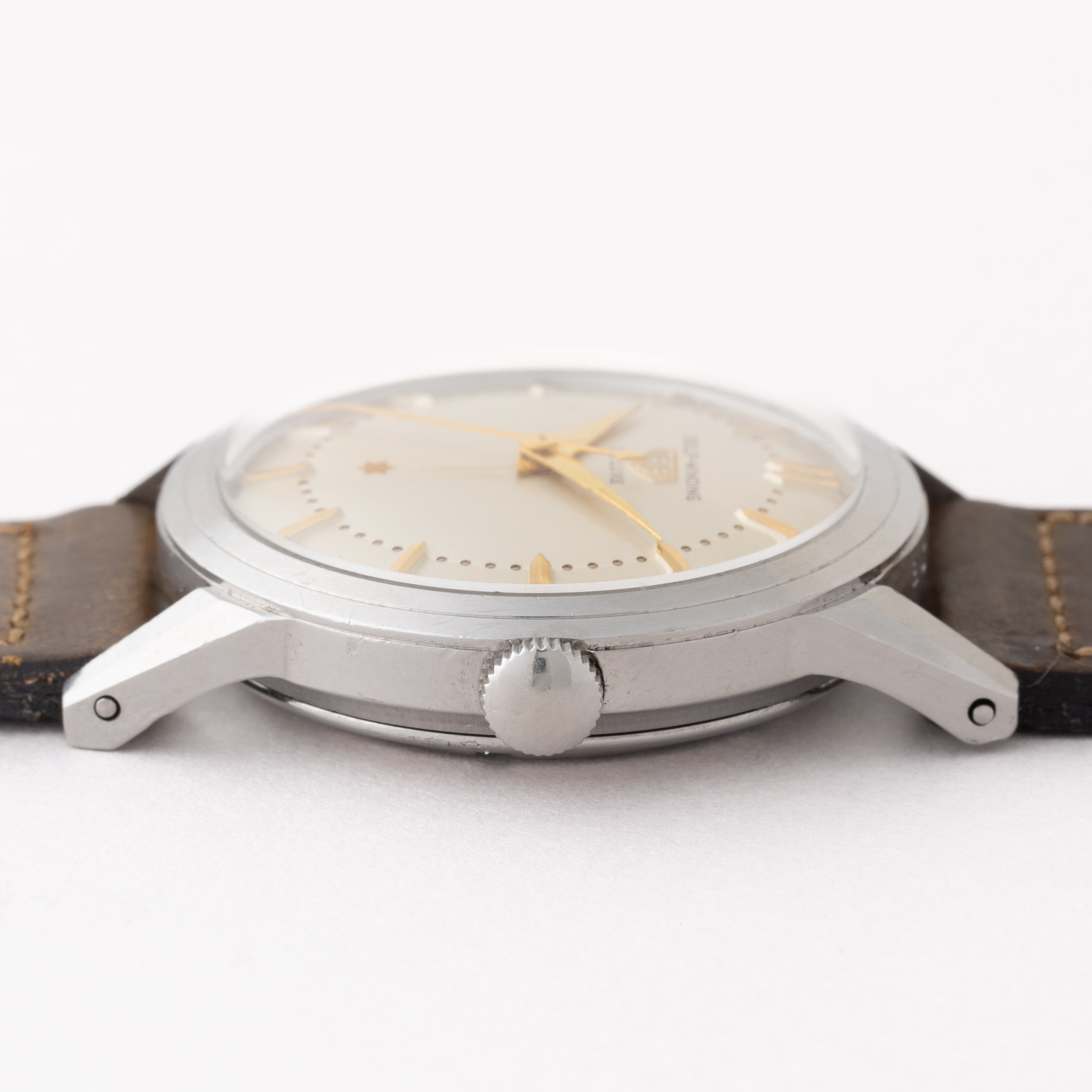 - ヴィンテージ時計の特性上、風防・パッキン・リューズ・バネ棒などの消耗部品は後年メンテナンス過程で交換されている場合がございます。オリジナル性を重視しておりますが、必要に応じて適切な部品にて調整されていますので、よりコレクション性重視のお求めのお客様は事前にご確認ください。