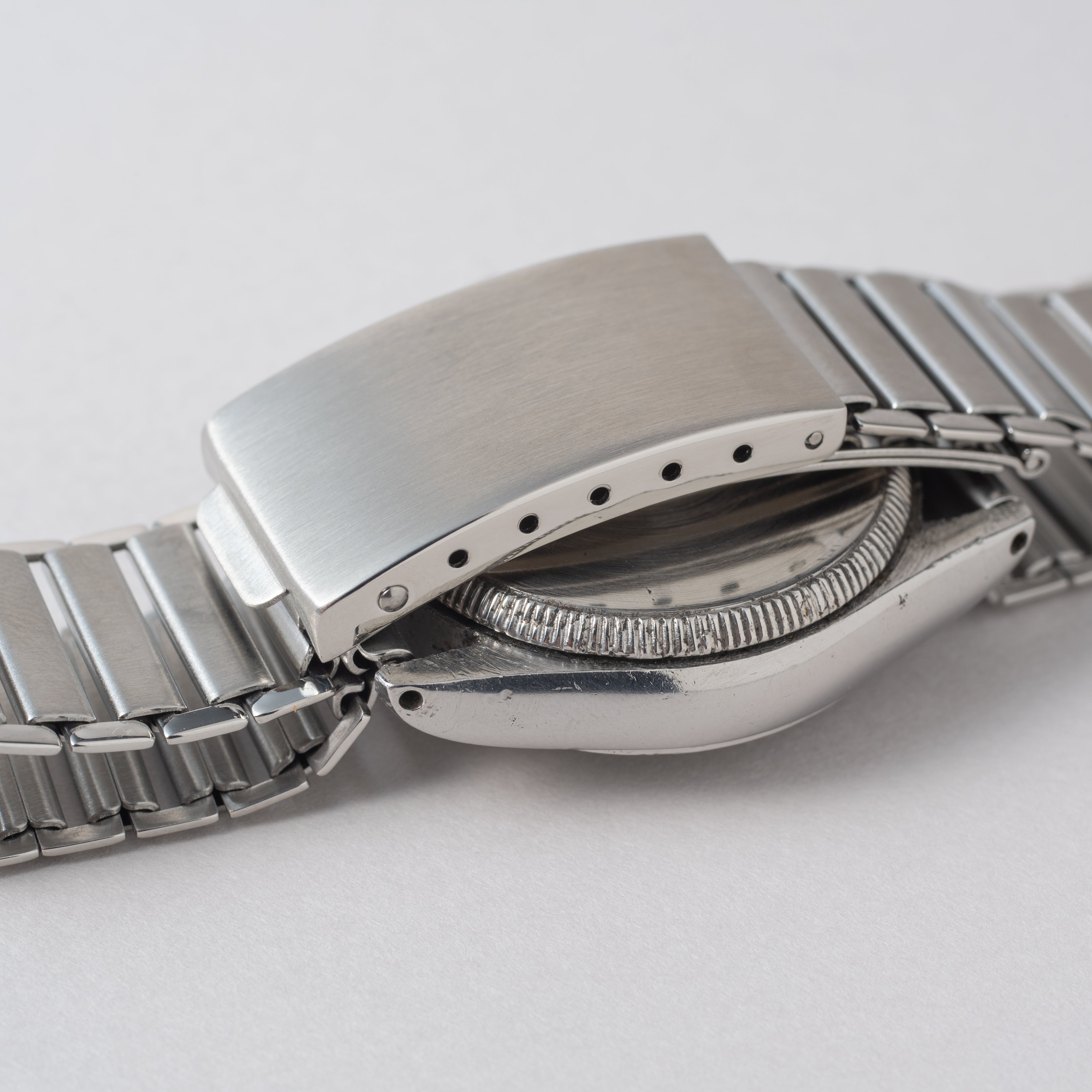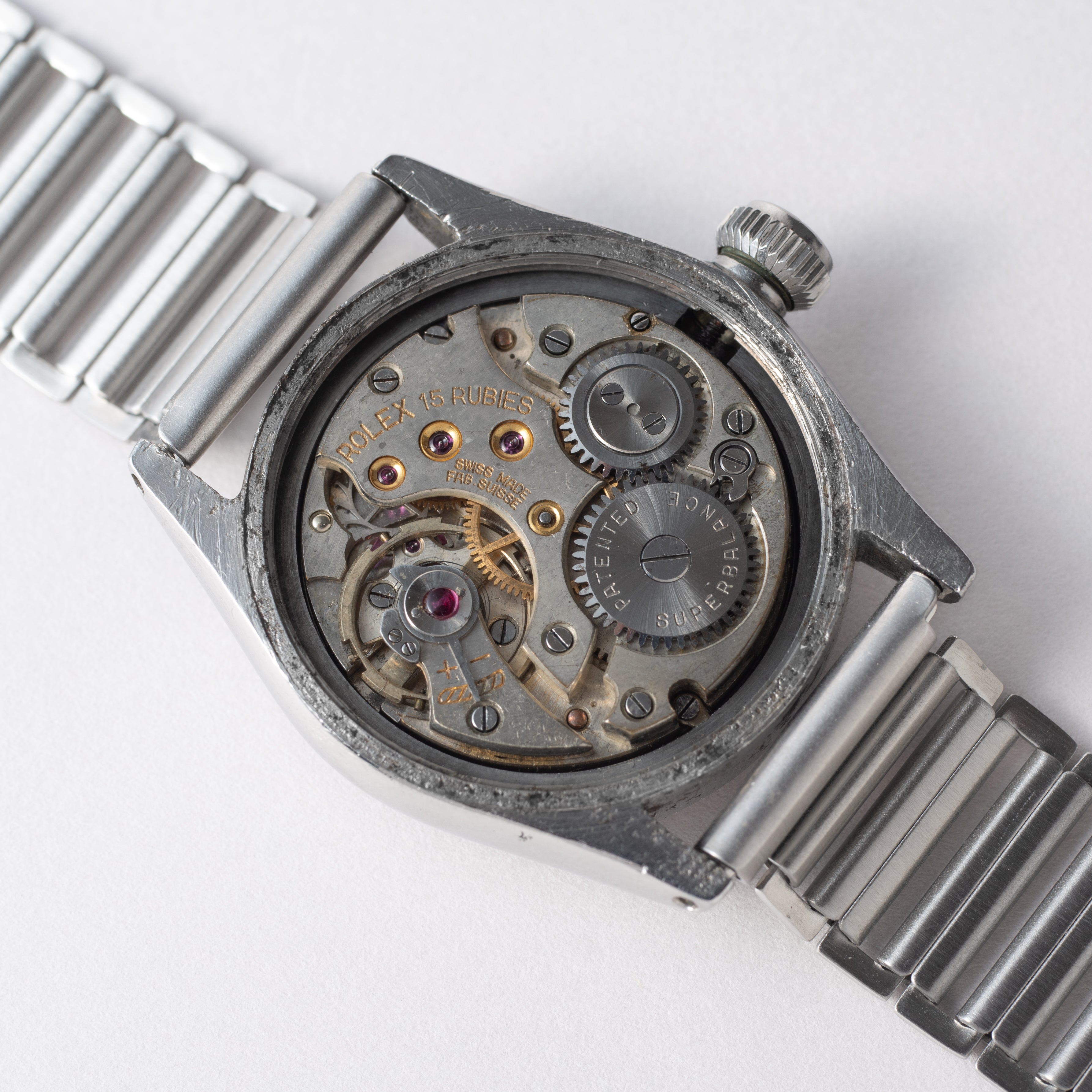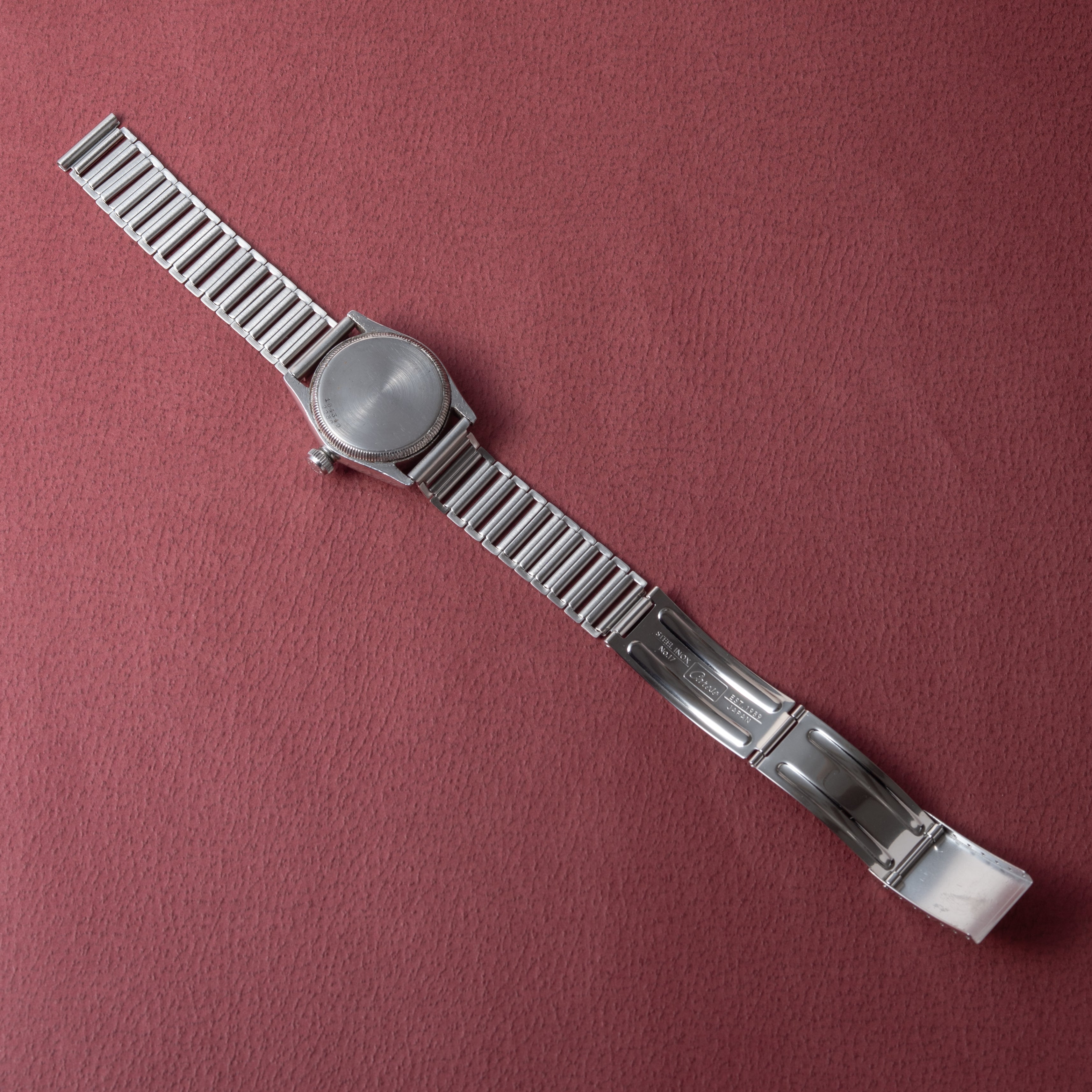 - ヴィンテージ時計の特性上、風防・パッキン・リューズ・バネ棒などの消耗部品は後年メンテナンス過程で交換されている場合がございます。オリジナル性を重視しておりますが、必要に応じて適切な部品にて調整されていますので、よりコレクション性重視のお求めのお客様は事前にご確認ください。