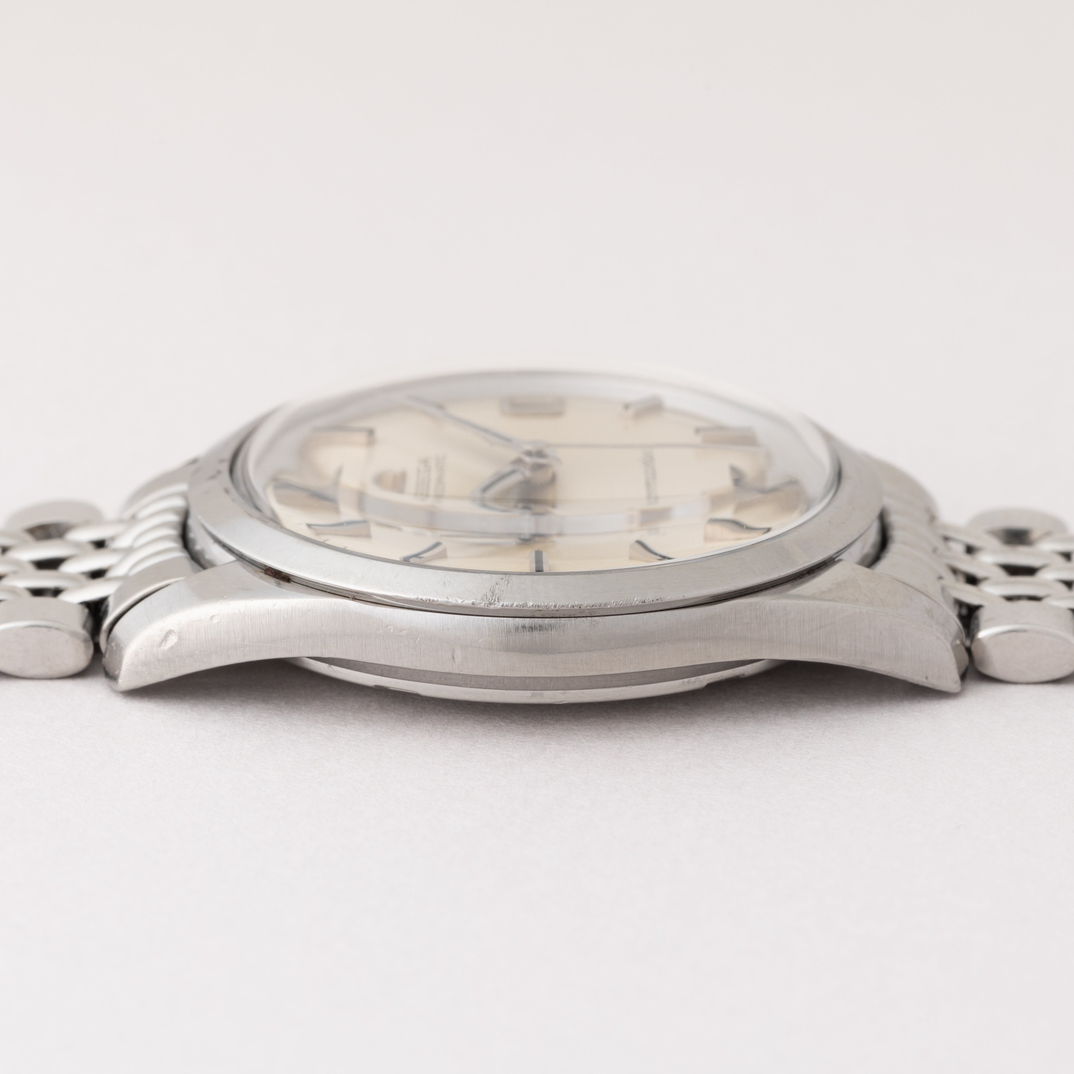 - ヴィンテージ時計の特性上、風防・パッキン・リューズ・バネ棒などの消耗部品は後年メンテナンス過程で交換されている場合がございます。オリジナル性を重視しておりますが、必要に応じて適切な部品にて調整されていますので、よりコレクション性重視のお求めのお客様は事前にご確認ください。