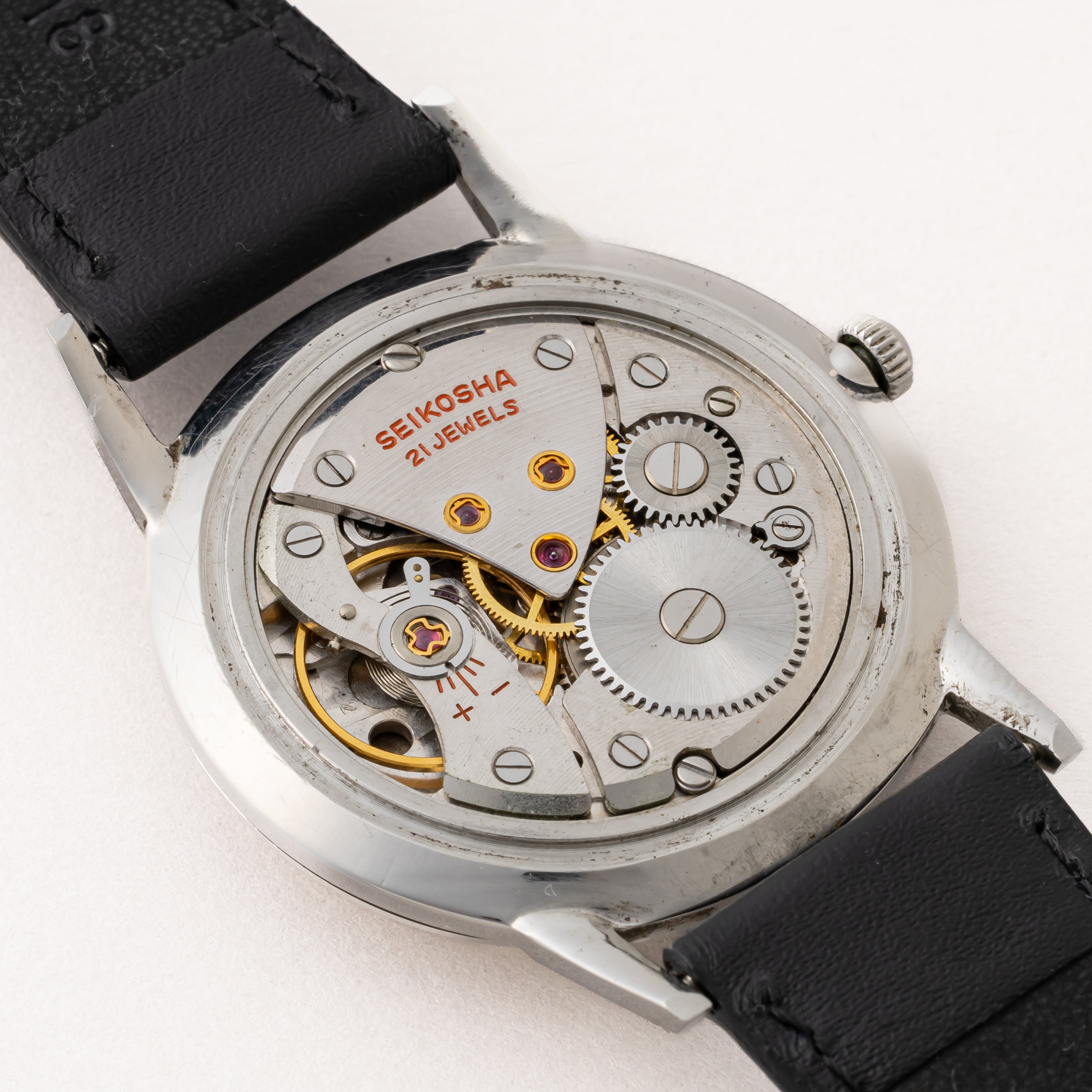 - ヴィンテージ時計の特性上、風防・パッキン・リューズ・バネ棒などの消耗部品は後年メンテナンス過程で交換されている場合がございます。オリジナル性を重視しておりますが、必要に応じて適切な部品にて調整されていますので、よりコレクション性重視のお求めのお客様は事前にご確認ください。