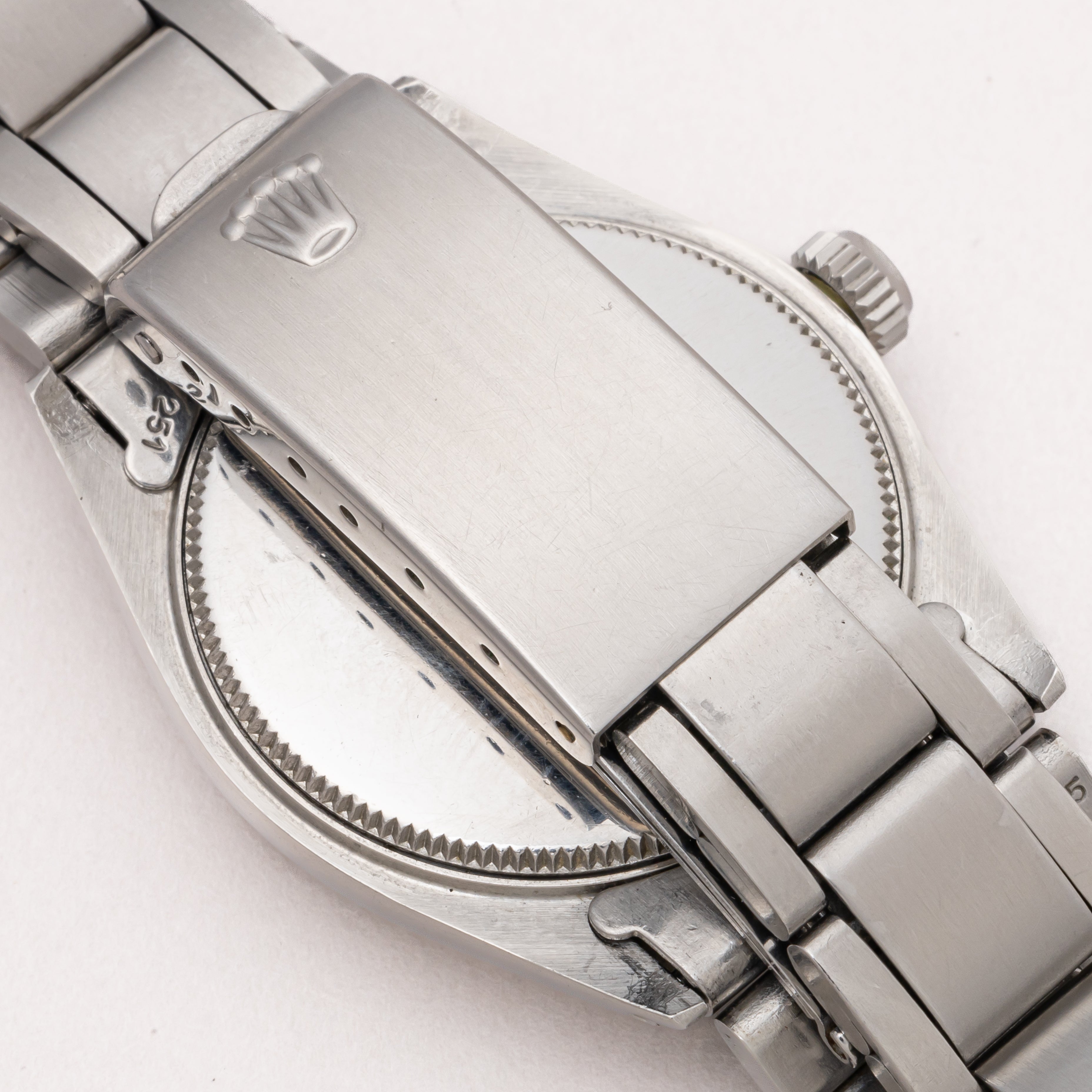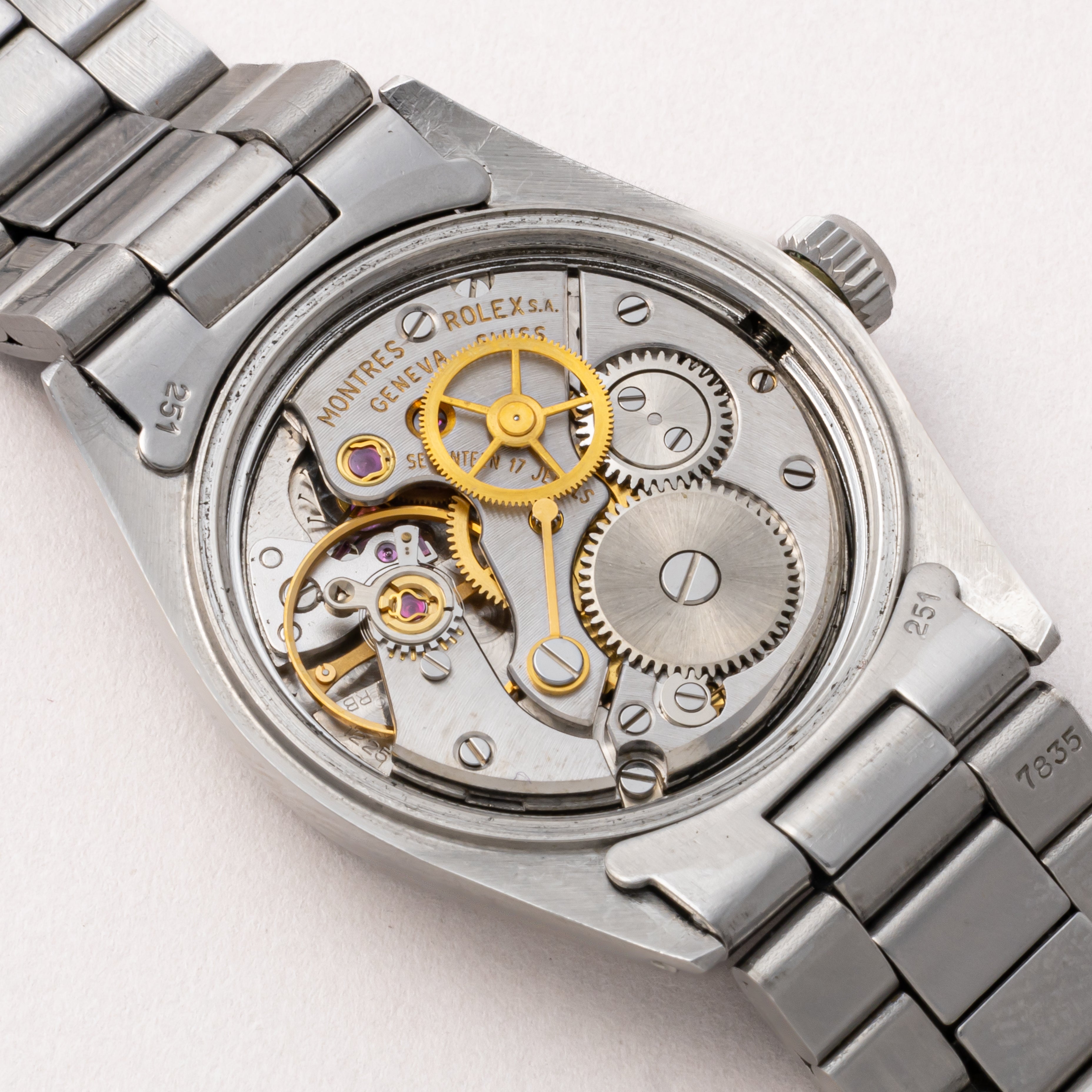 - ヴィンテージ時計の特性上、風防・パッキン・リューズ・バネ棒などの消耗部品は後年メンテナンス過程で交換されている場合がございます。オリジナル性を重視しておりますが、必要に応じて適切な部品にて調整されていますので、よりコレクション性重視のお求めのお客様は事前にご確認ください。