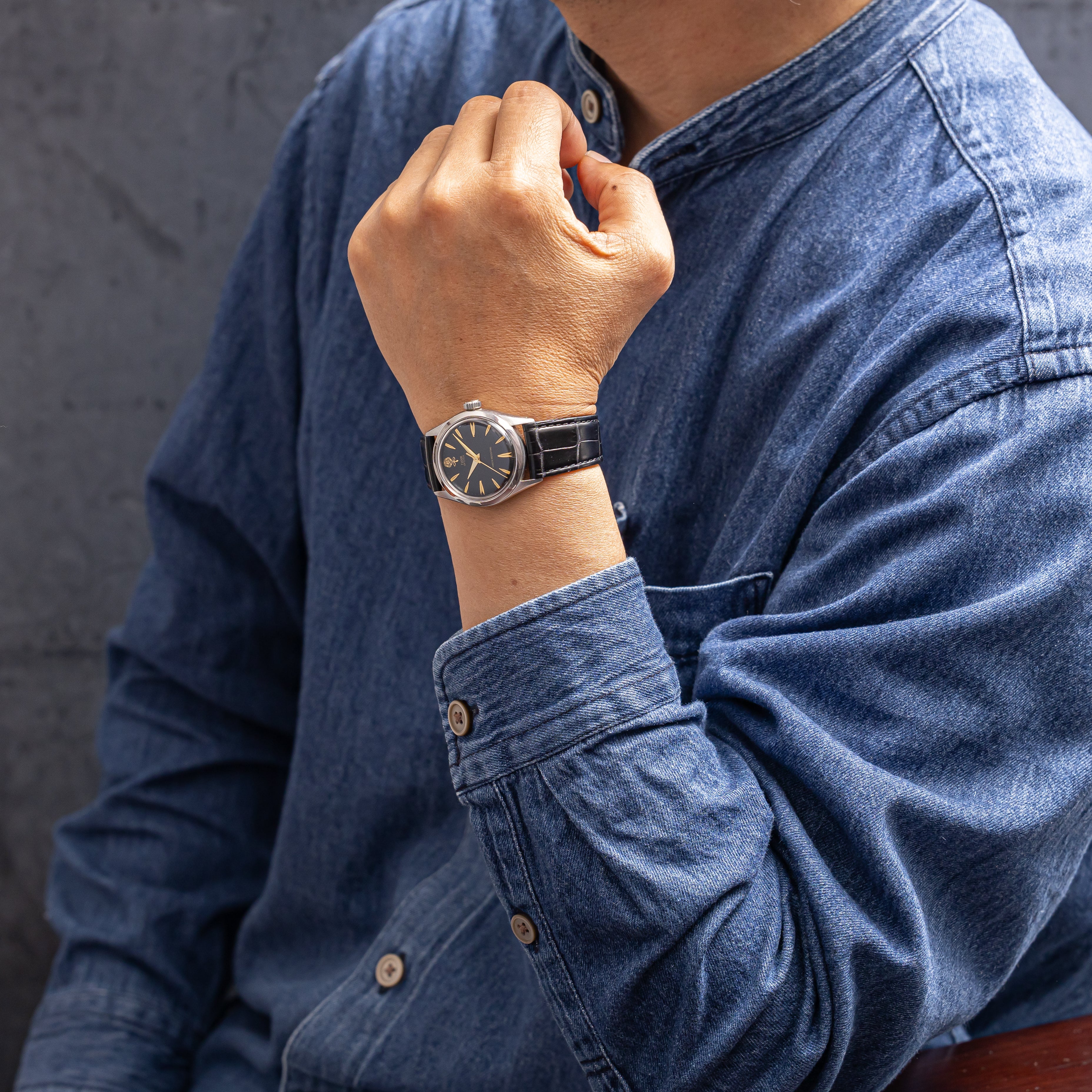 - ヴィンテージ時計の特性上、風防・パッキン・リューズ・バネ棒などの消耗部品は後年メンテナンス過程で交換されている場合がございます。オリジナル性を重視しておりますが、必要に応じて適切な部品にて調整されていますので、よりコレクション性重視のお求めのお客様は事前にご確認ください。