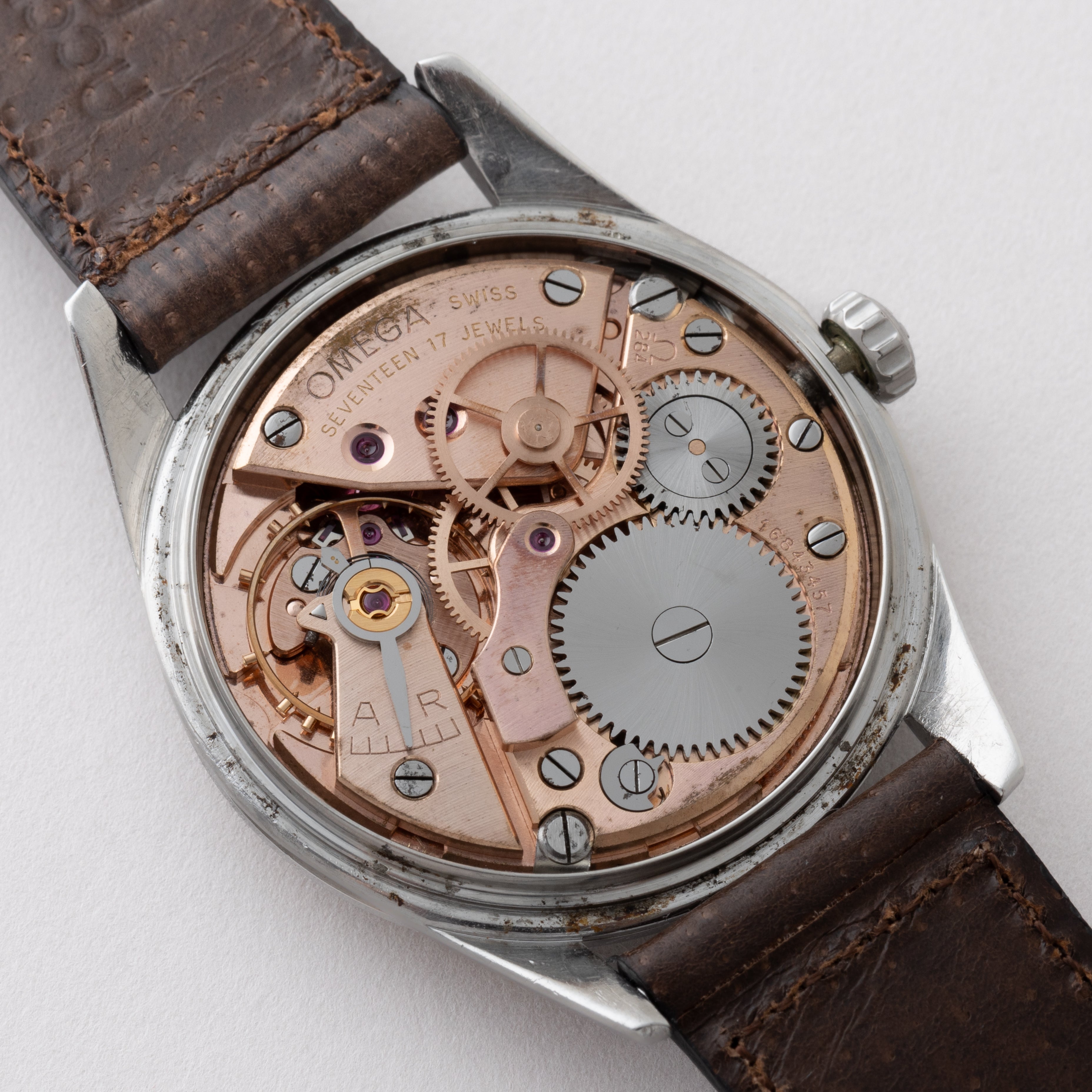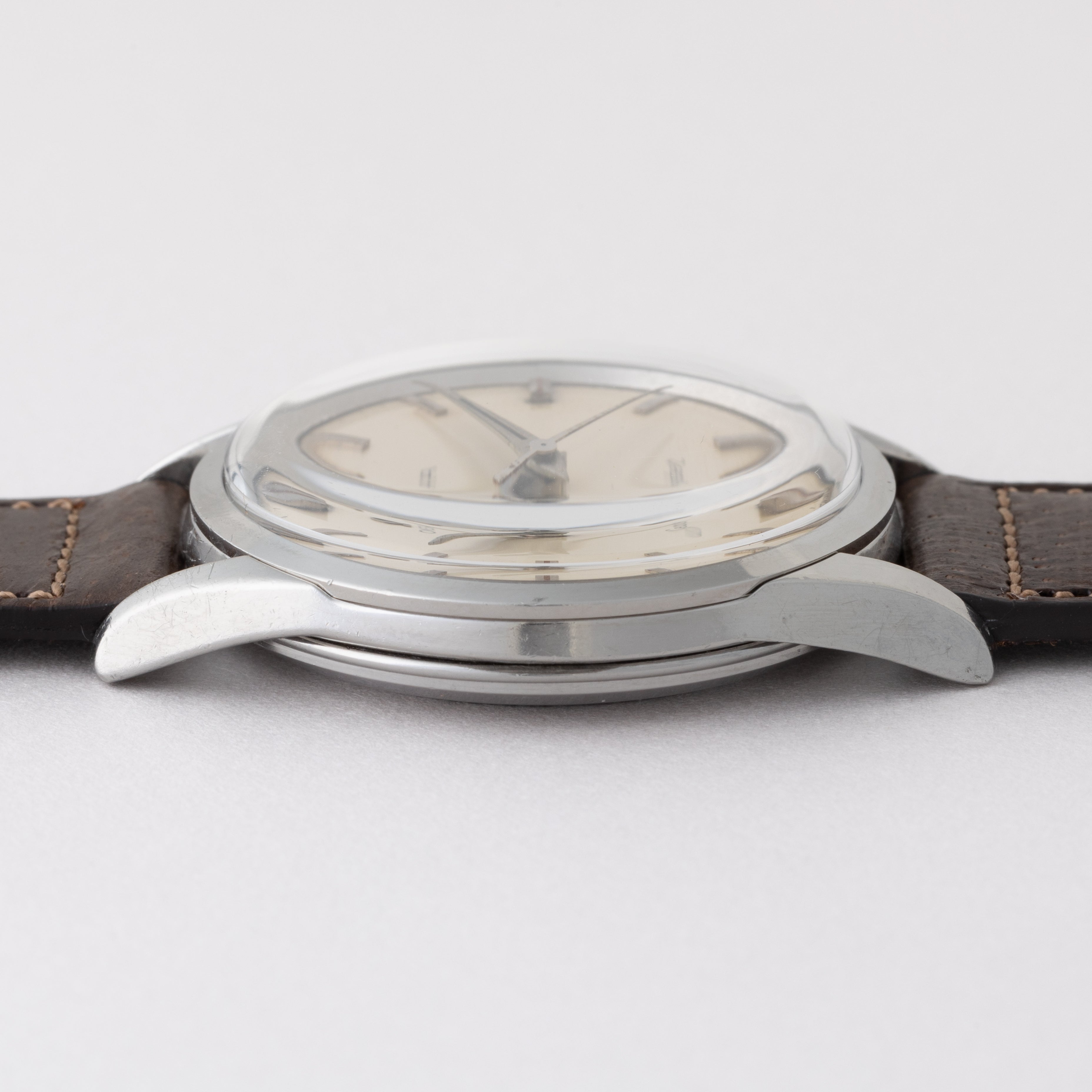 - ヴィンテージ時計の特性上、風防・パッキン・リューズ・バネ棒などの消耗部品は後年メンテナンス過程で交換されている場合がございます。オリジナル性を重視しておりますが、必要に応じて適切な部品にて調整されていますので、よりコレクション性重視のお求めのお客様は事前にご確認ください。