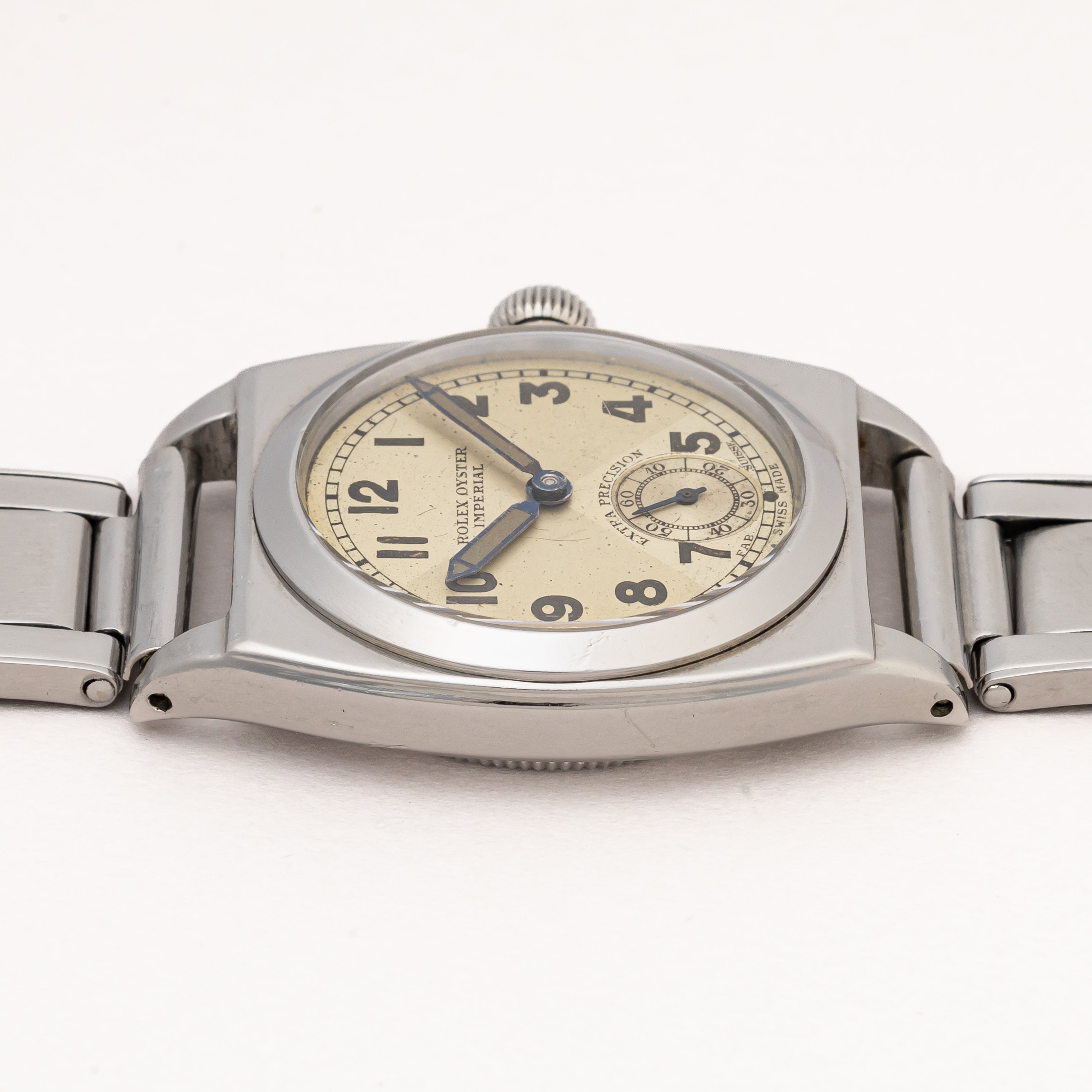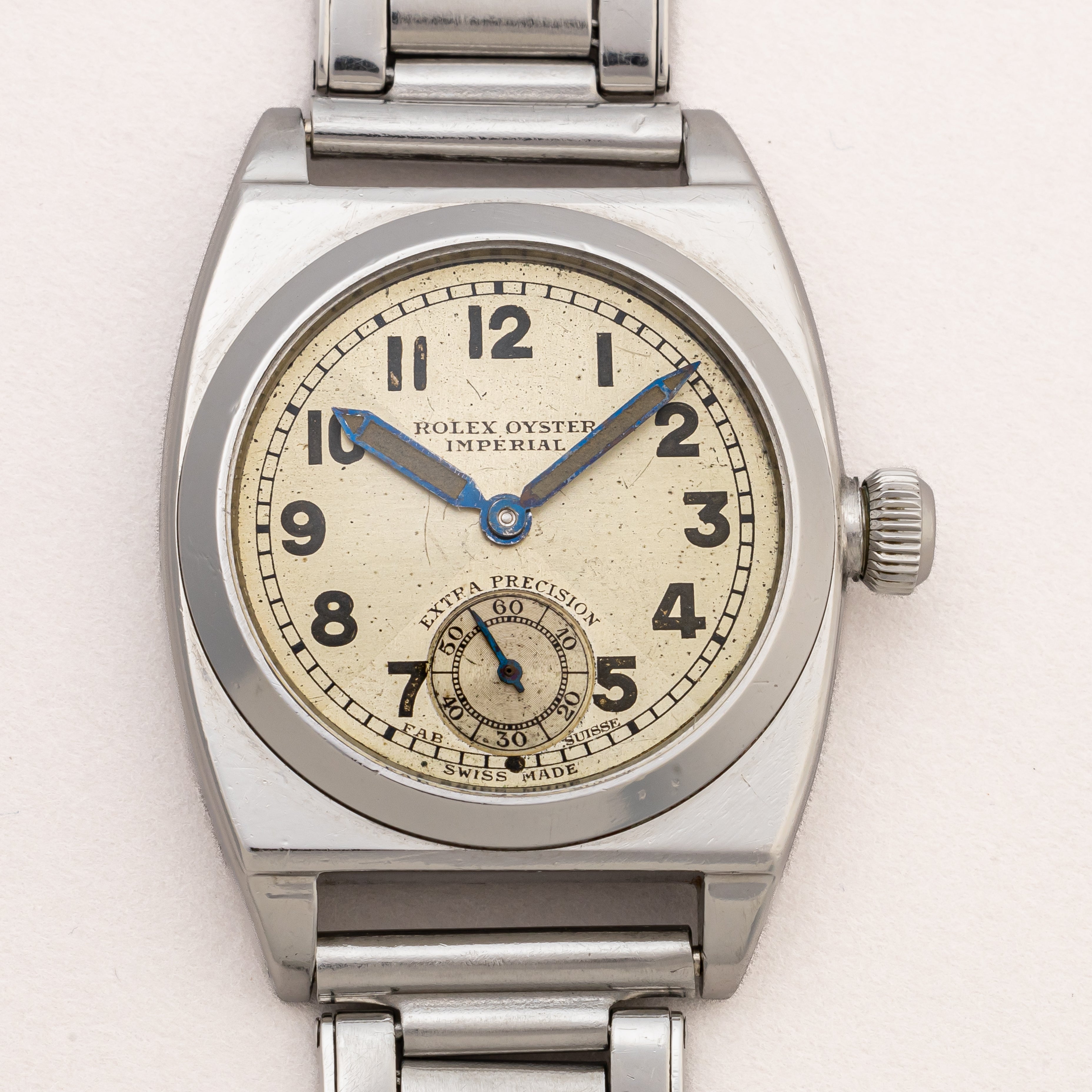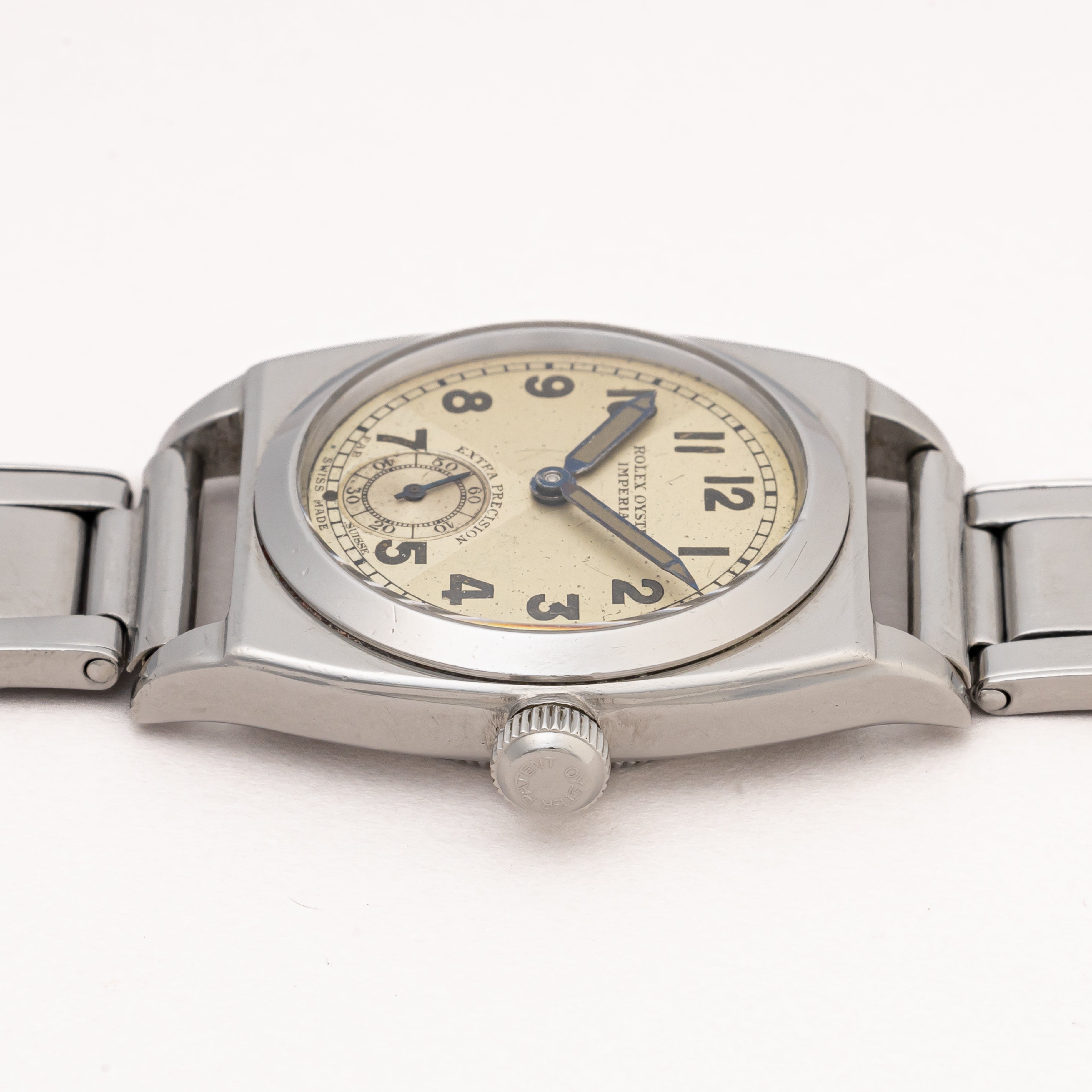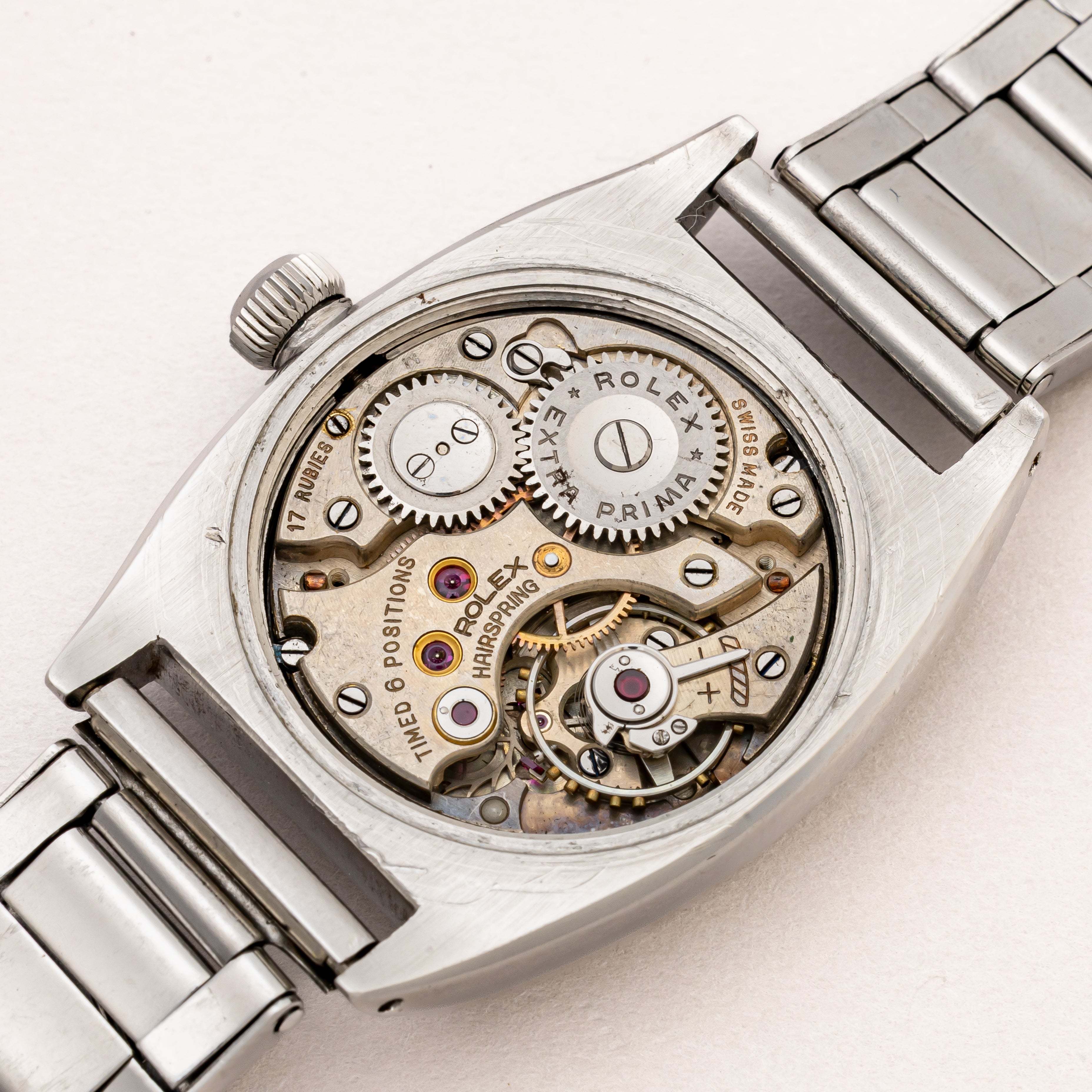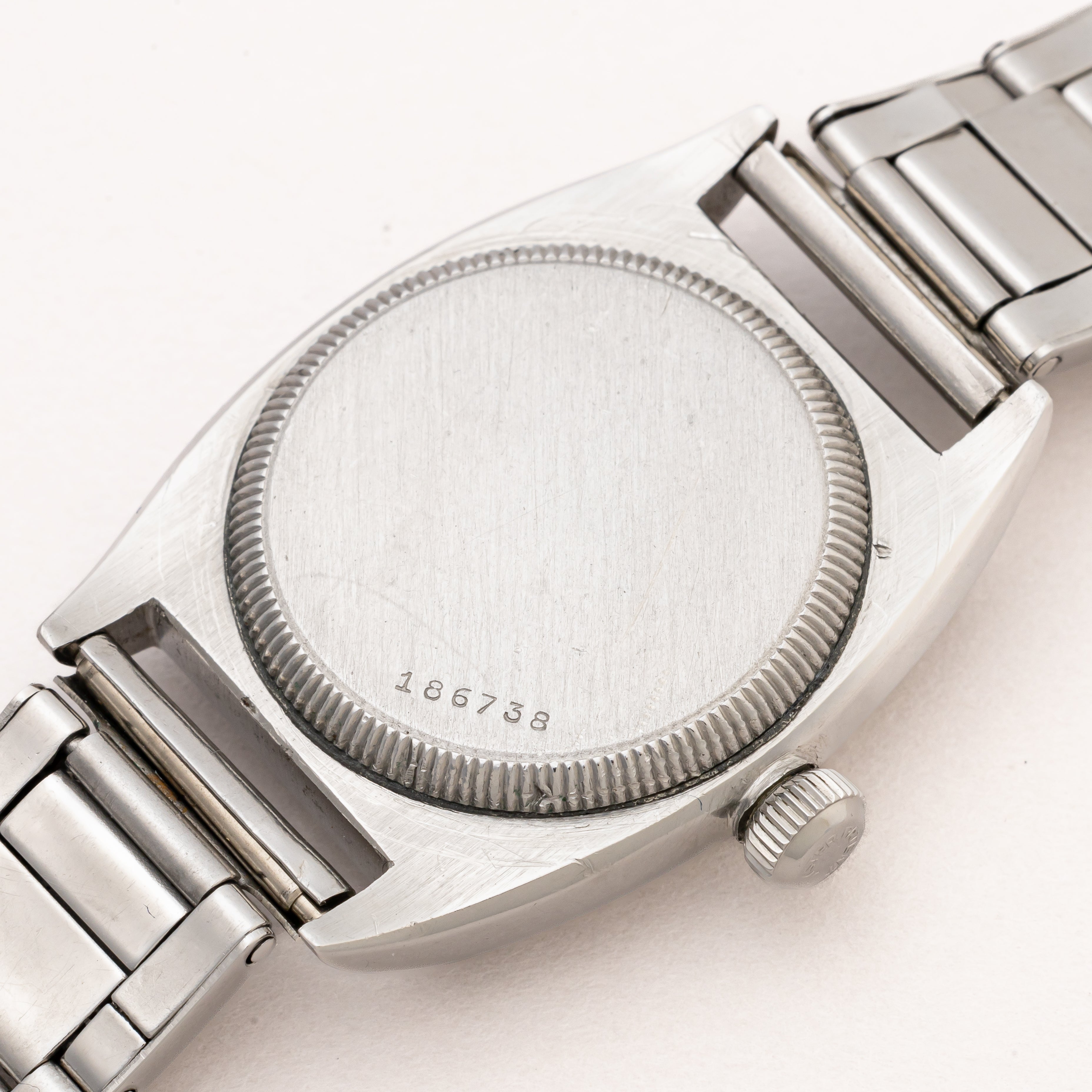 - ヴィンテージ時計の特性上、風防・パッキン・リューズ・バネ棒などの消耗部品は後年メンテナンス過程で交換されている場合がございます。オリジナル性を重視しておりますが、必要に応じて適切な部品にて調整されていますので、よりコレクション性重視のお求めのお客様は事前にご確認ください。