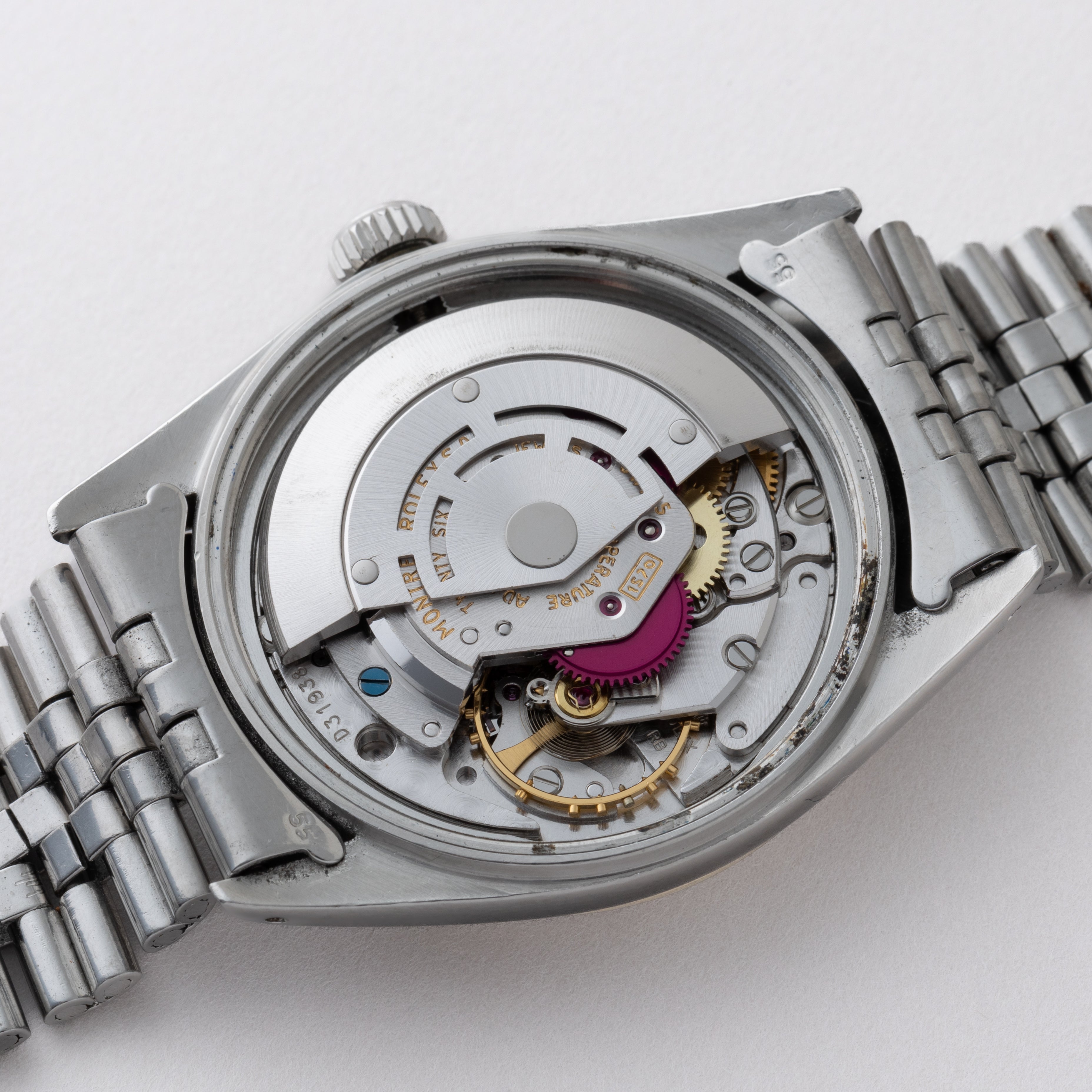- ヴィンテージ時計の特性上、風防・パッキン・リューズ・バネ棒などの消耗部品は後年メンテナンス過程で交換されている場合がございます。オリジナル性を重視しておりますが、必要に応じて適切な部品にて調整されていますので、よりコレクション性重視のお求めのお客様は事前にご確認ください。