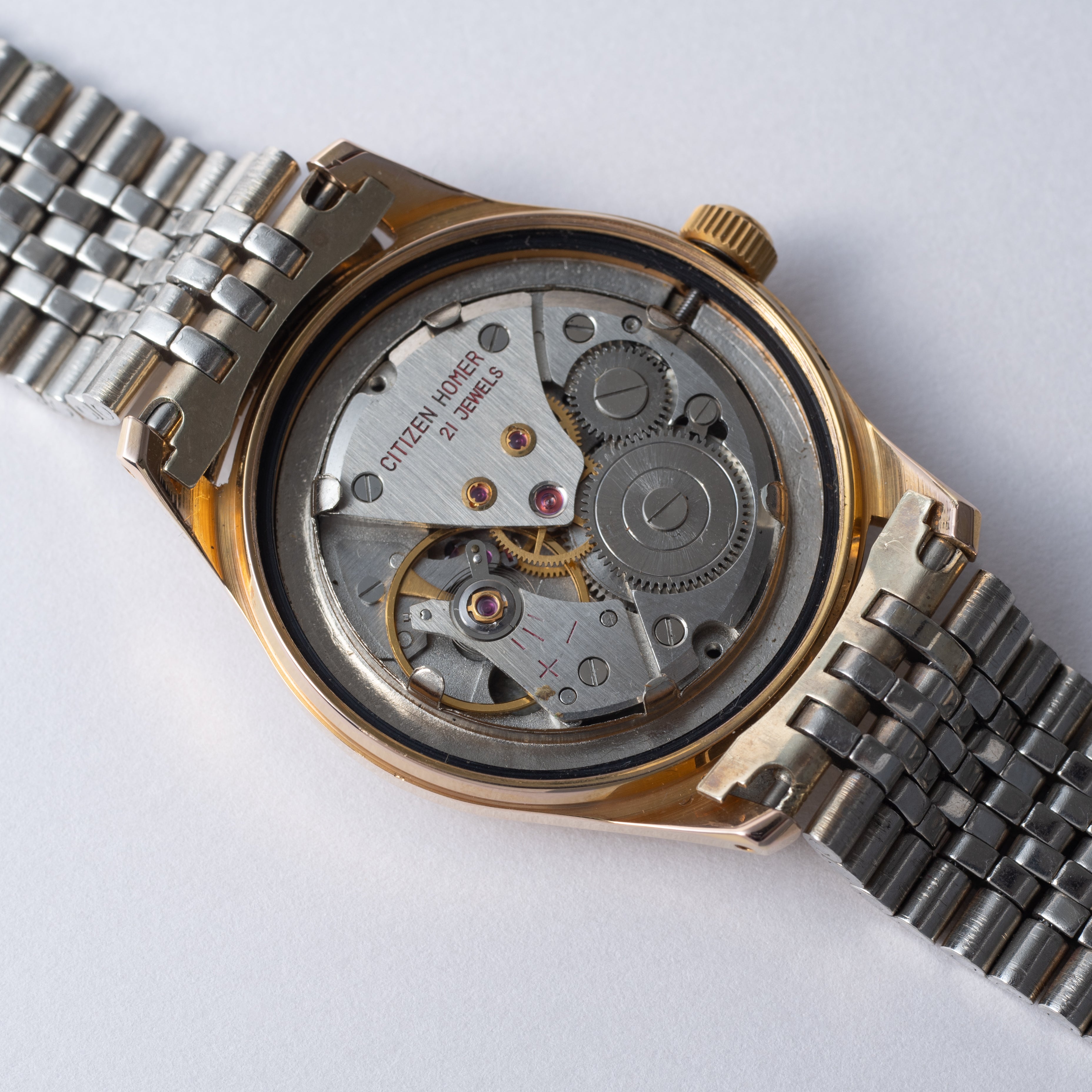- ヴィンテージ時計の特性上、風防・パッキン・リューズ・バネ棒などの消耗部品は後年メンテナンス過程で交換されている場合がございます。オリジナル性を重視しておりますが、必要に応じて適切な部品にて調整されていますので、よりコレクション性重視のお求めのお客様は事前にご確認ください。
