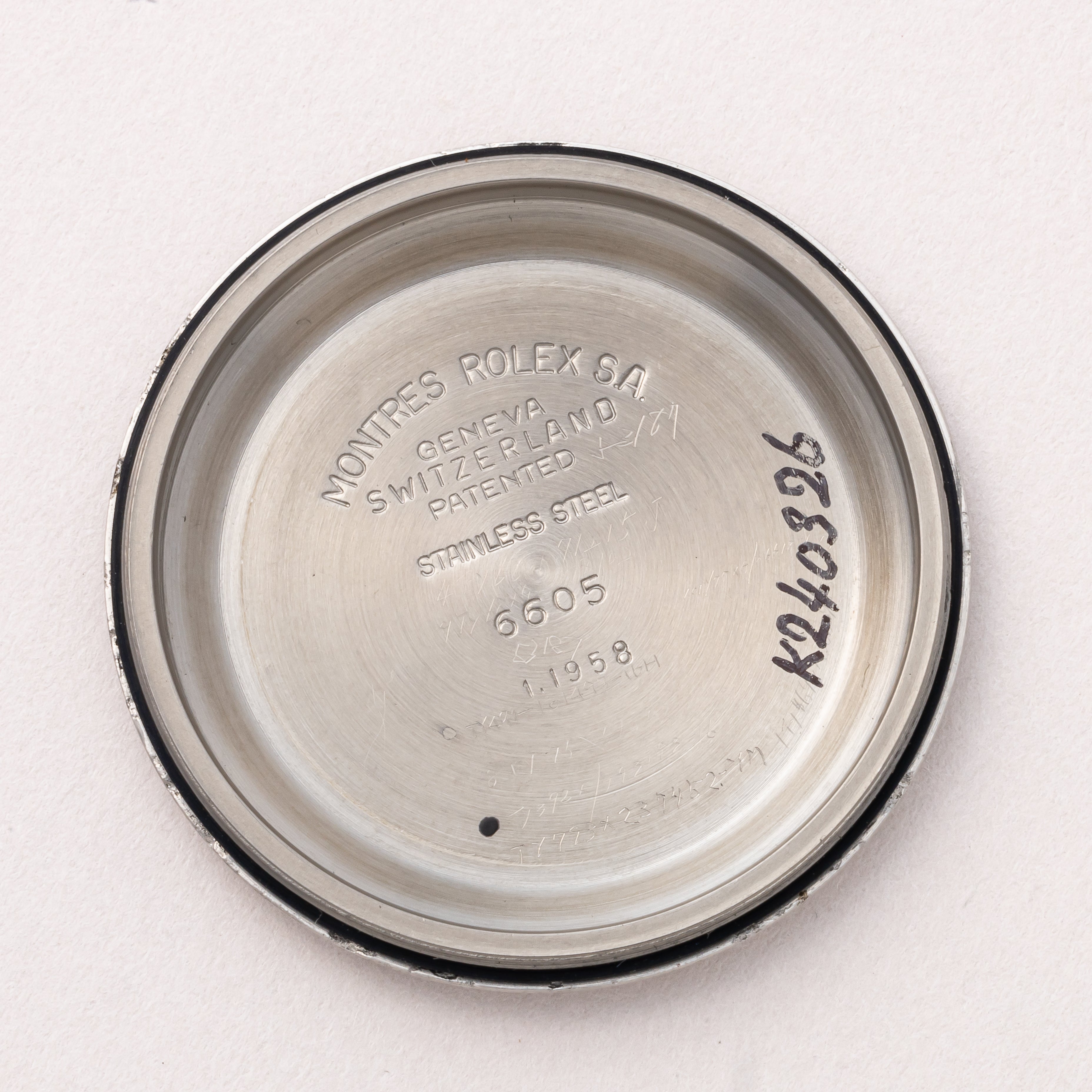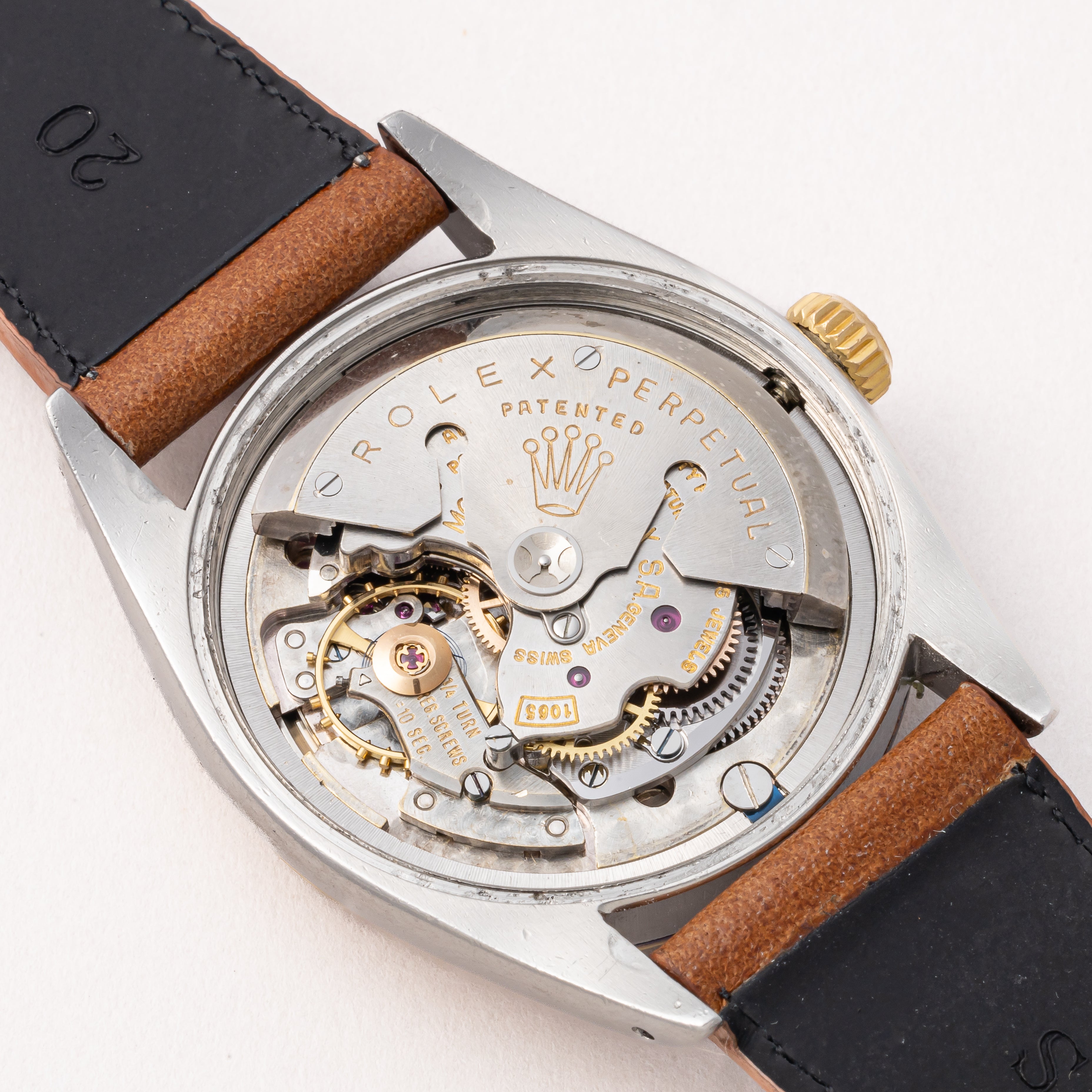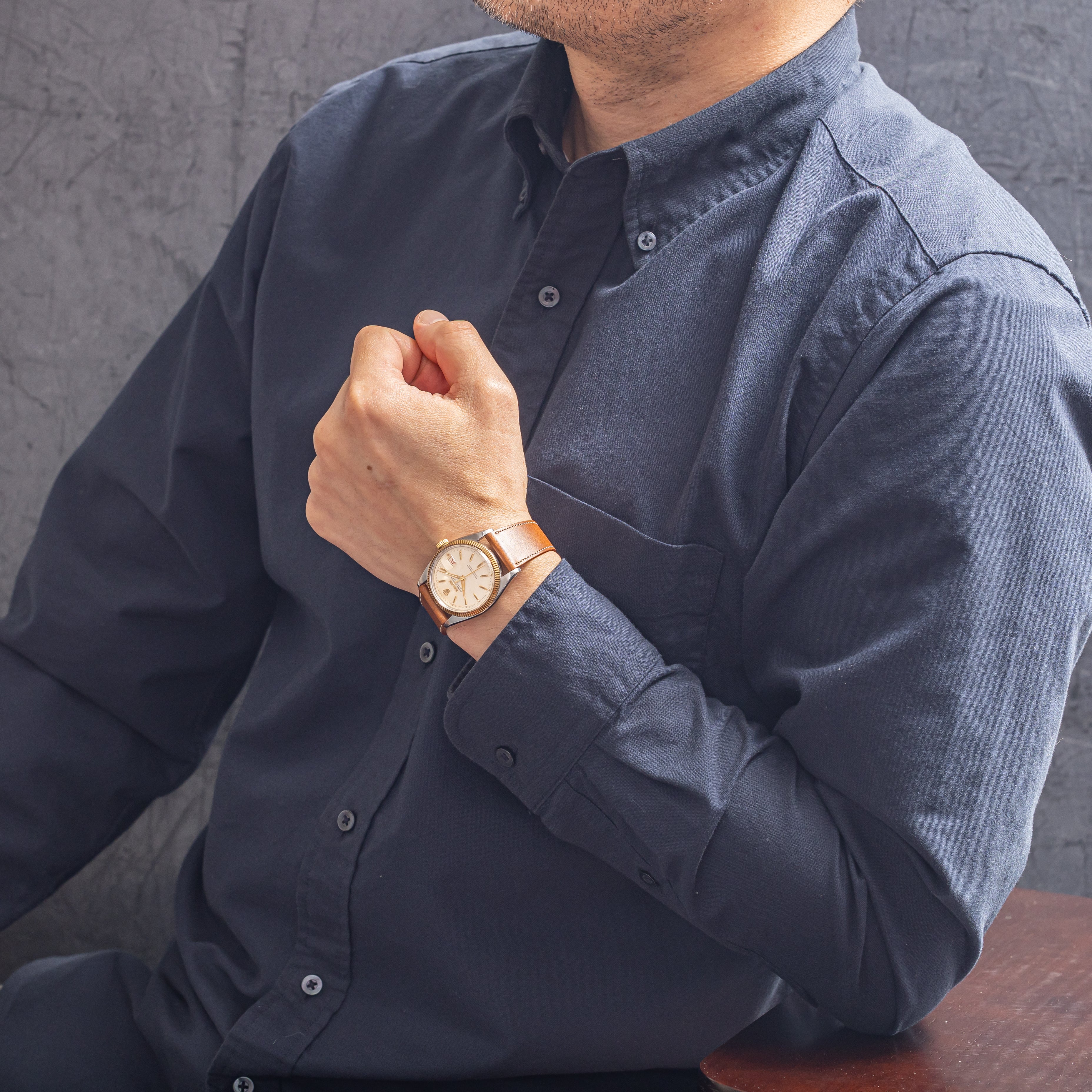 - ヴィンテージ時計の特性上、風防・パッキン・リューズ・バネ棒などの消耗部品は後年メンテナンス過程で交換されている場合がございます。オリジナル性を重視しておりますが、必要に応じて適切な部品にて調整されていますので、よりコレクション性重視のお求めのお客様は事前にご確認ください。