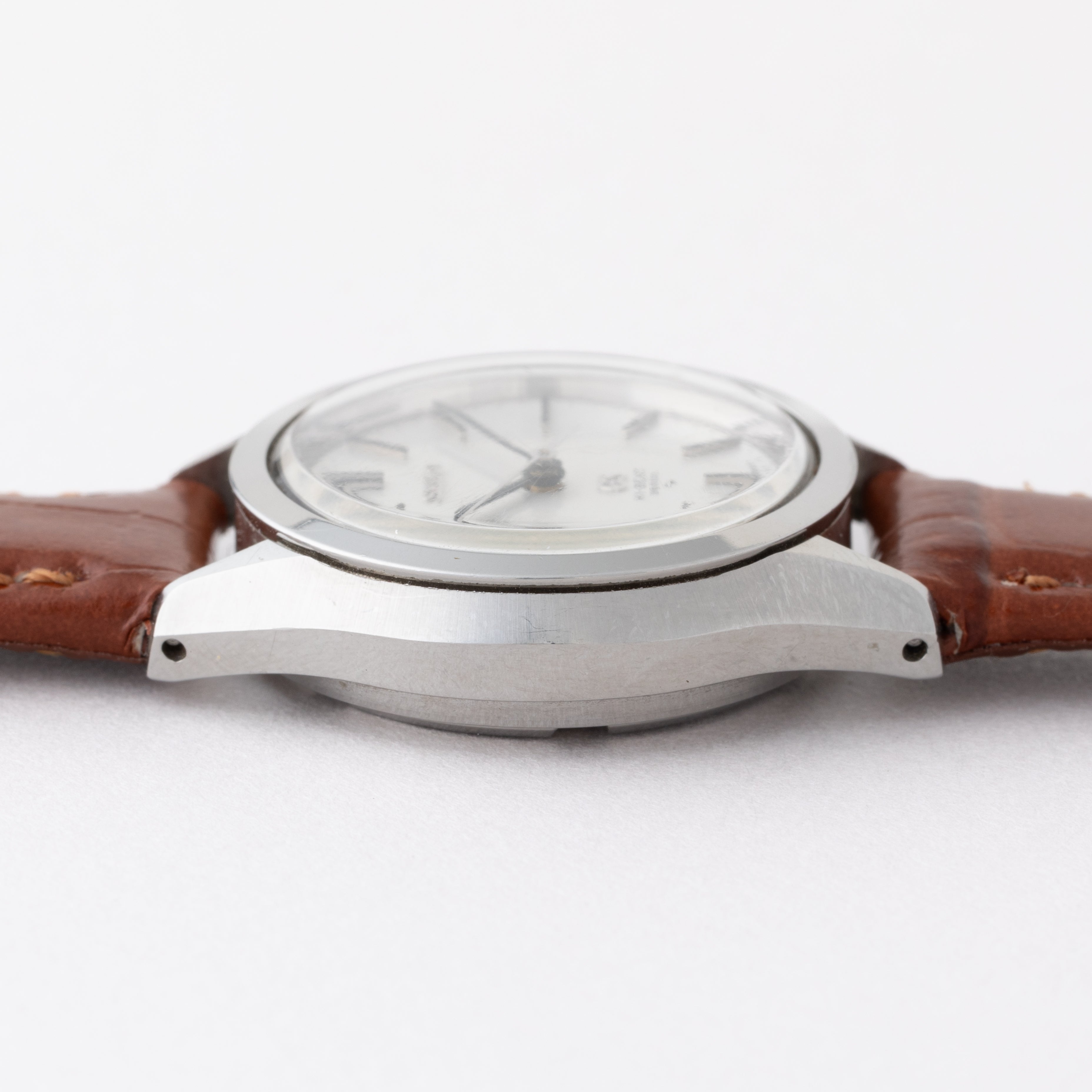 - ヴィンテージ時計の特性上、風防・パッキン・リューズ・バネ棒などの消耗部品は後年メンテナンス過程で交換されている場合がございます。オリジナル性を重視しておりますが、必要に応じて適切な部品にて調整されていますので、よりコレクション性重視のお求めのお客様は事前にご確認ください。