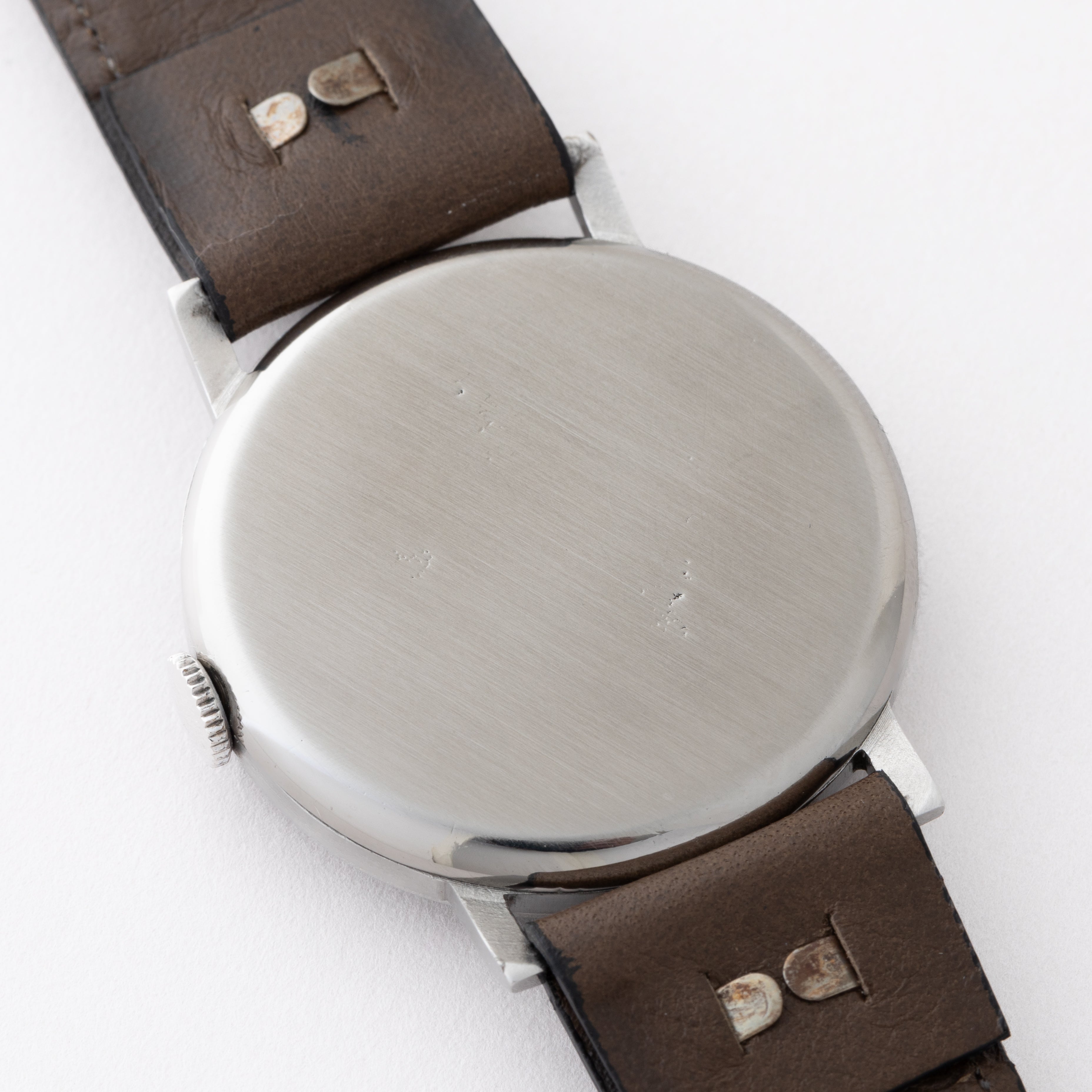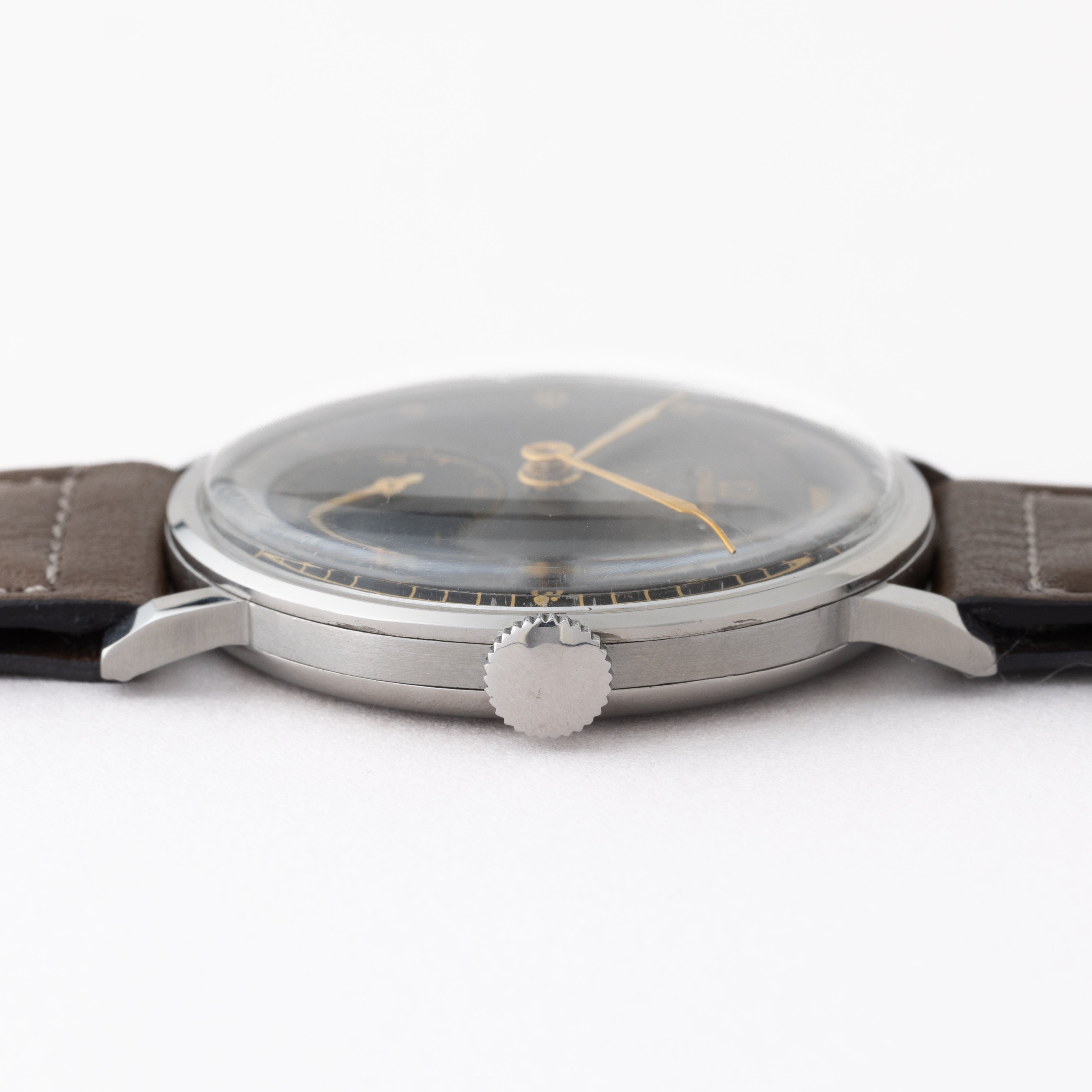 - ヴィンテージ時計の特性上、風防・パッキン・リューズ・バネ棒などの消耗部品は後年メンテナンス過程で交換されている場合がございます。オリジナル性を重視しておりますが、必要に応じて適切な部品にて調整されていますので、よりコレクション性重視のお求めのお客様は事前にご確認ください。