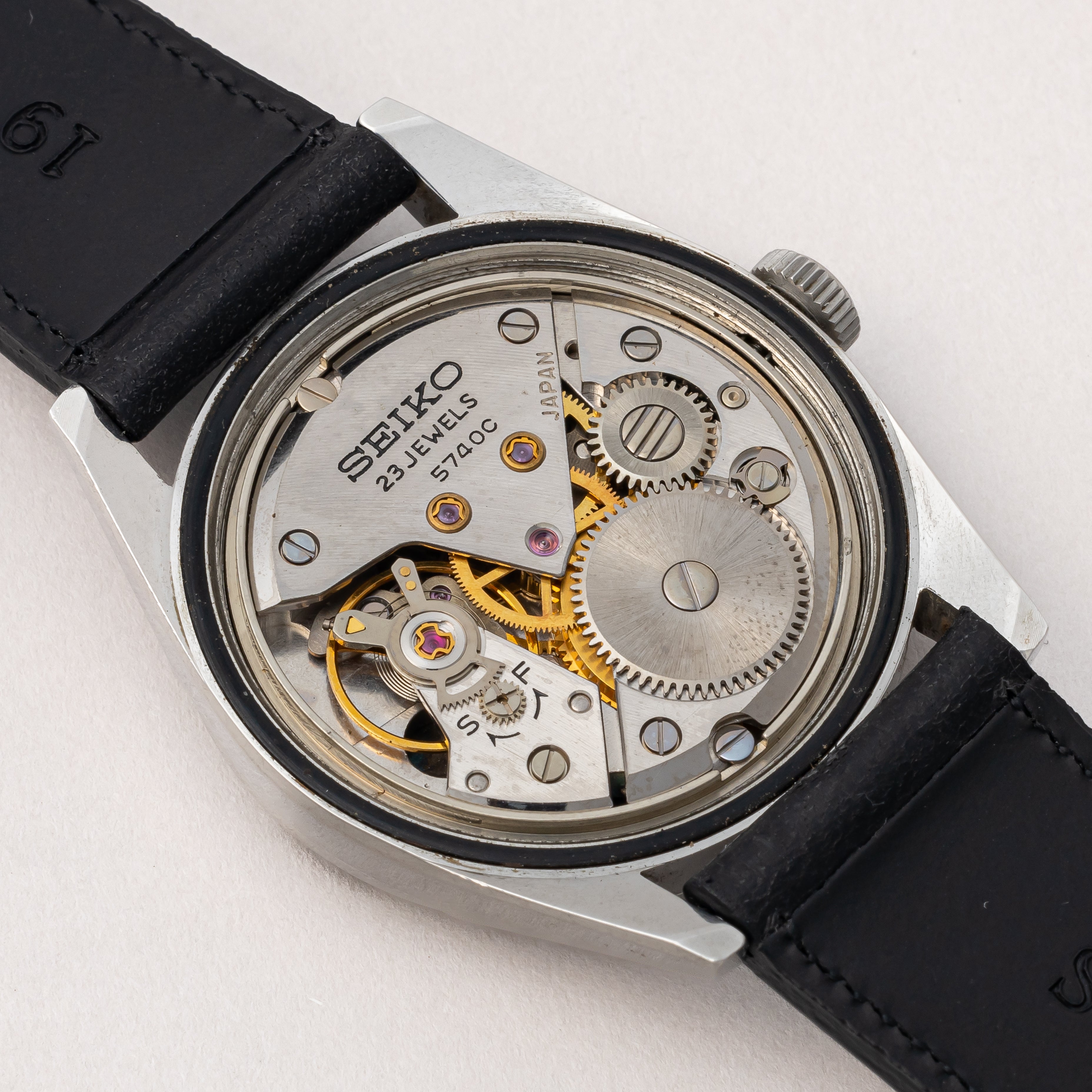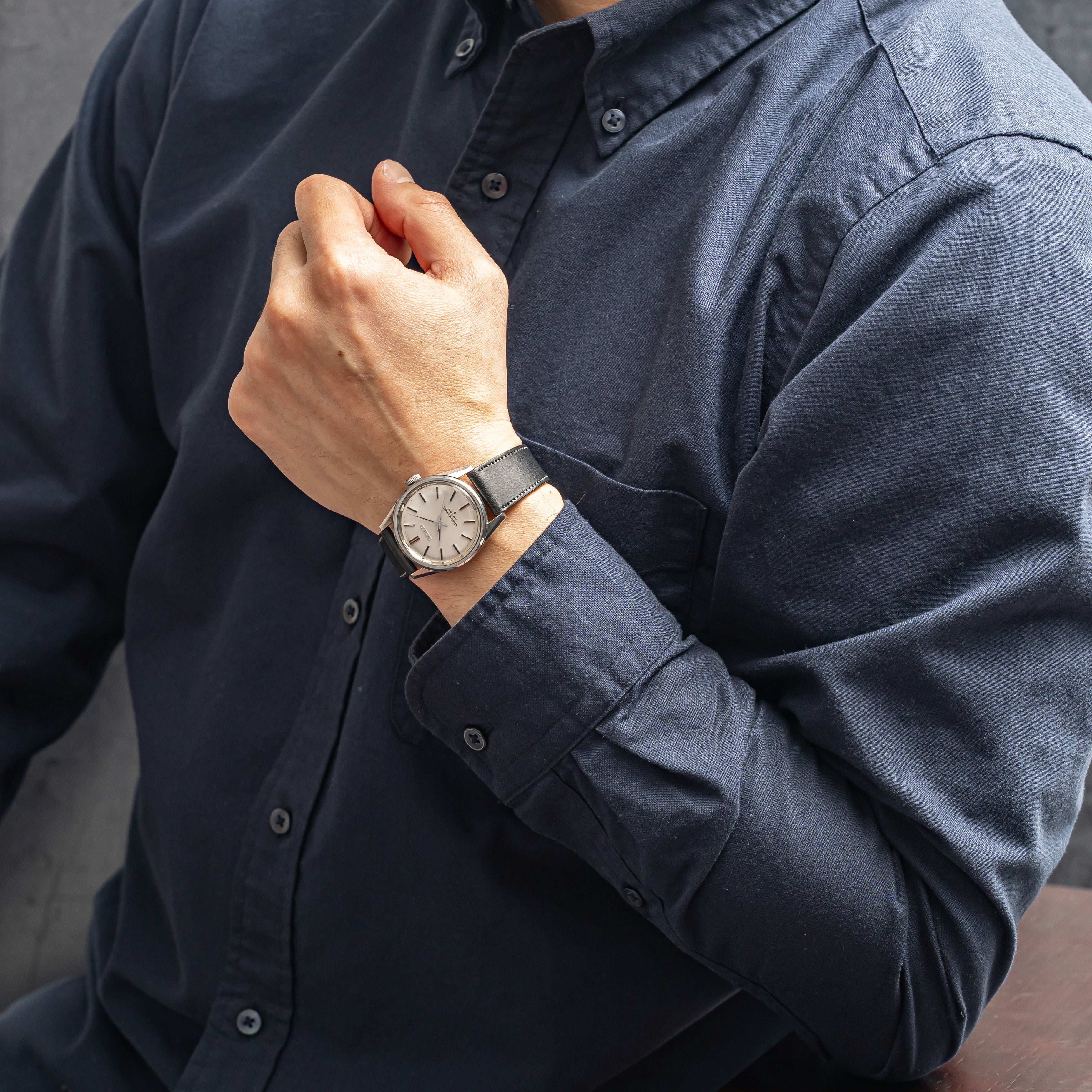 - ヴィンテージ時計の特性上、風防・パッキン・リューズ・バネ棒などの消耗部品は後年メンテナンス過程で交換されている場合がございます。オリジナル性を重視しておりますが、必要に応じて適切な部品にて調整されていますので、よりコレクション性重視のお求めのお客様は事前にご確認ください。