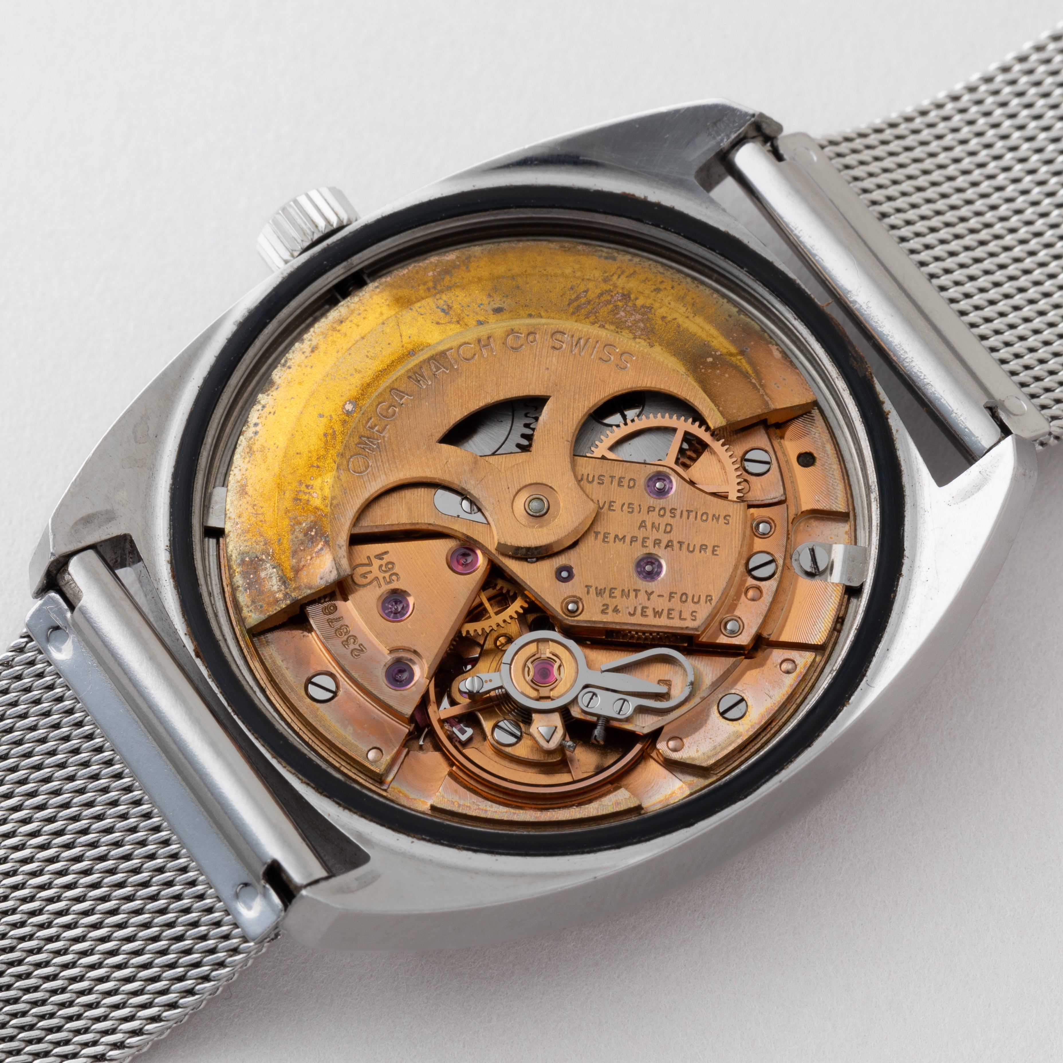 - ヴィンテージ時計の特性上、風防・パッキン・リューズ・バネ棒などの消耗部品は後年メンテナンス過程で交換されている場合がございます。オリジナル性を重視しておりますが、必要に応じて適切な部品にて調整されていますので、よりコレクション性重視のお求めのお客様は事前にご確認ください。