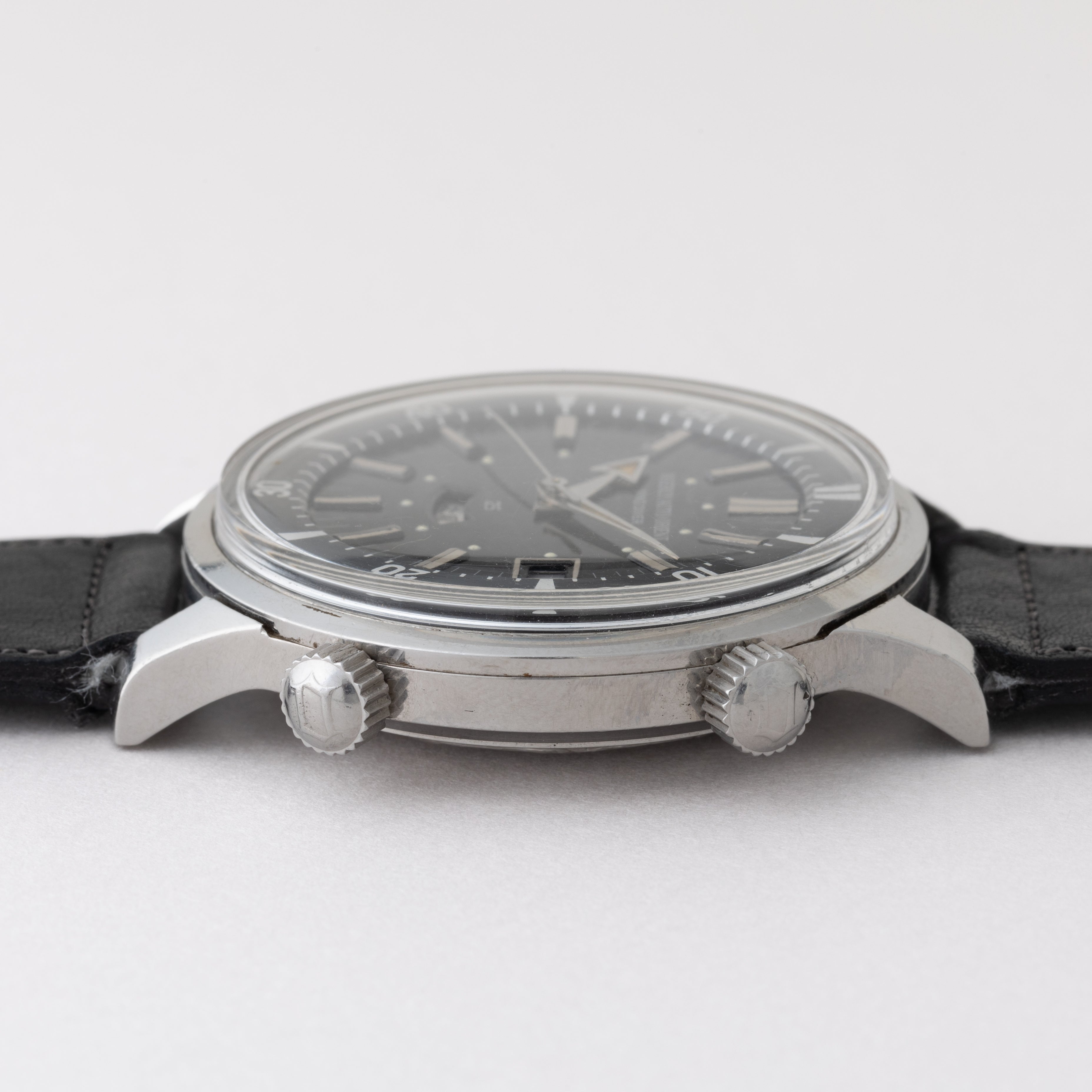 - ヴィンテージ時計の特性上、風防・パッキン・リューズ・バネ棒などの消耗部品は後年メンテナンス過程で交換されている場合がございます。オリジナル性を重視しておりますが、必要に応じて適切な部品にて調整されていますので、よりコレクション性重視のお求めのお客様は事前にご確認ください。