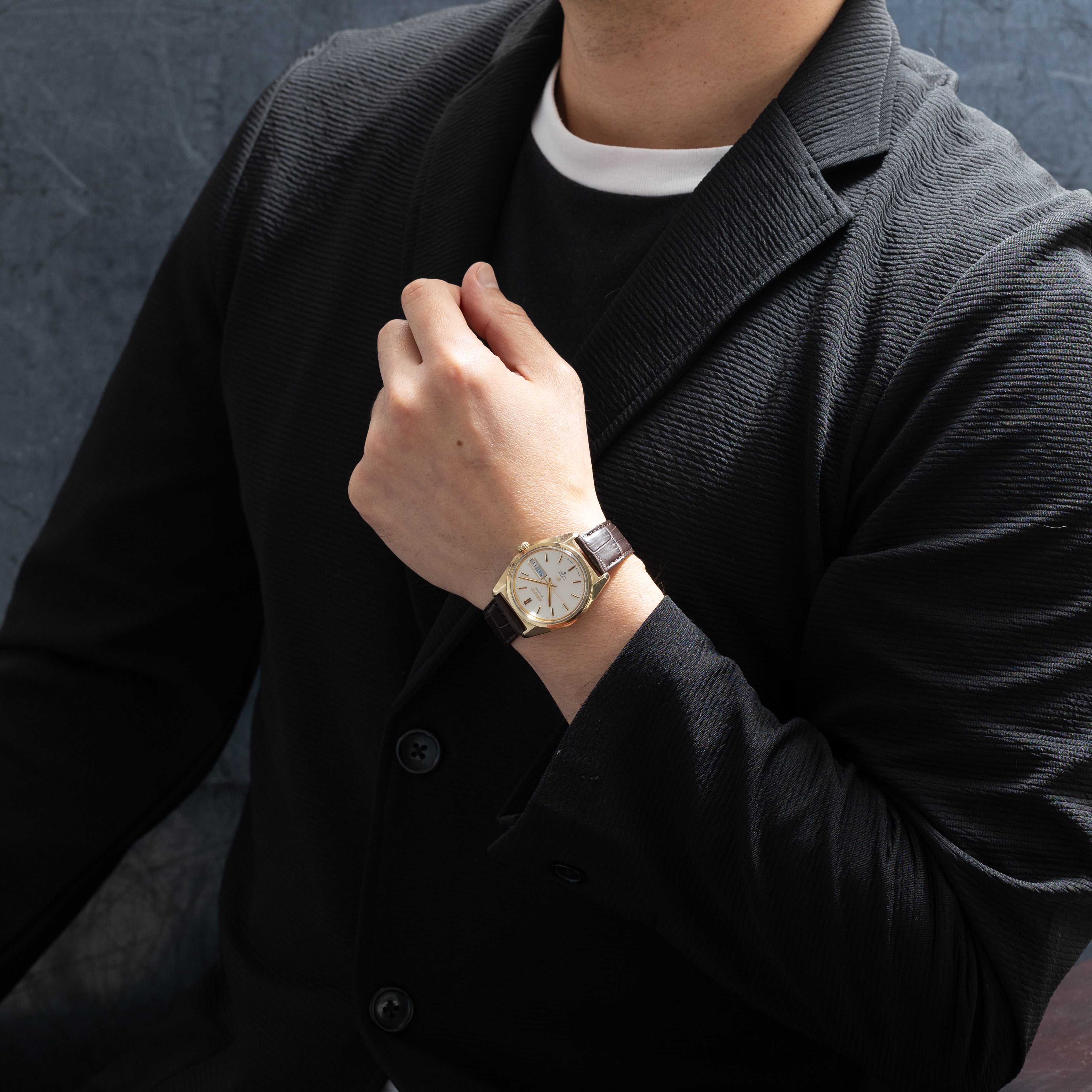 - ヴィンテージ時計の特性上、風防・パッキン・リューズ・バネ棒などの消耗部品は後年メンテナンス過程で交換されている場合がございます。オリジナル性を重視しておりますが、必要に応じて適切な部品にて調整されていますので、よりコレクション性重視のお求めのお客様は事前にご確認ください。