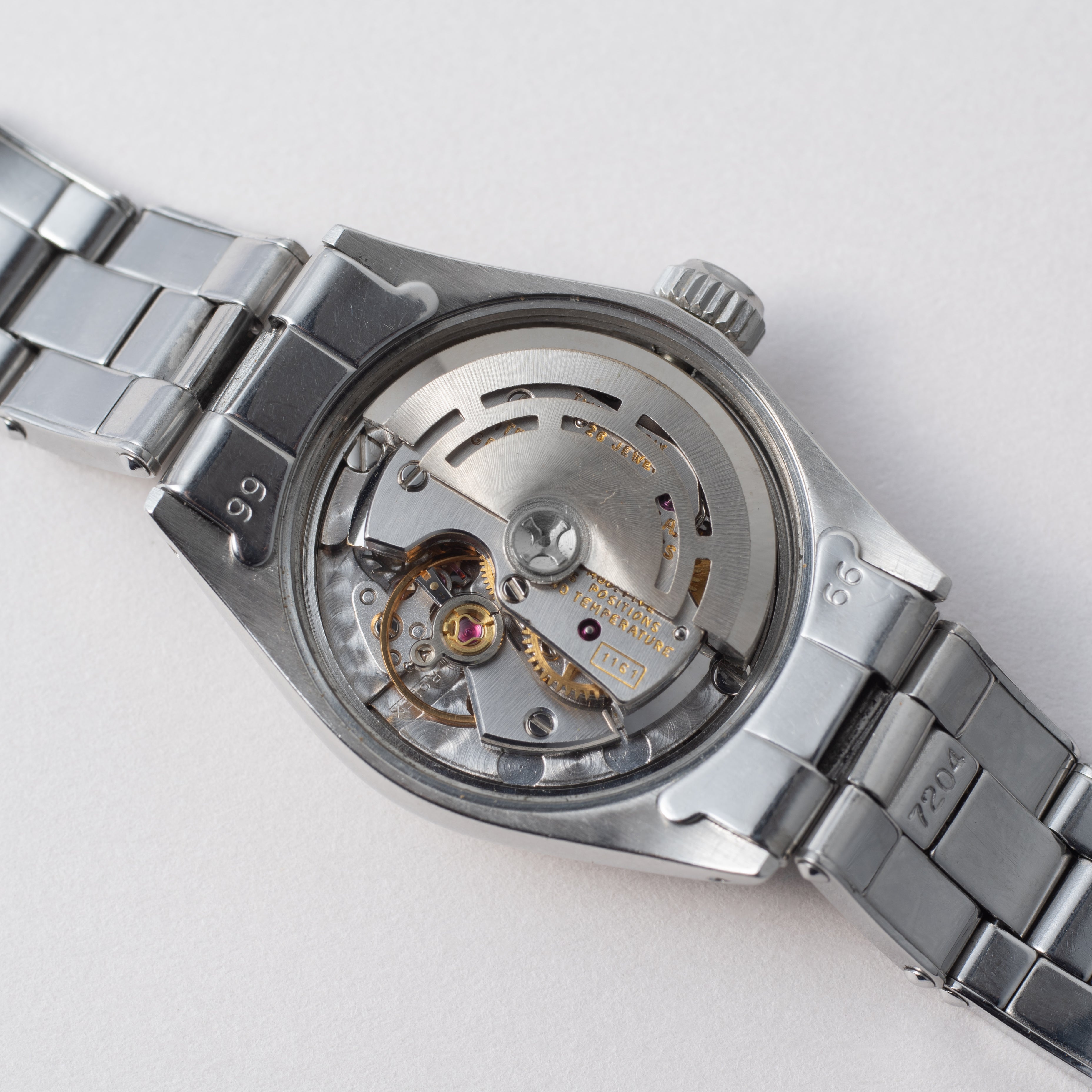 - ヴィンテージ時計の特性上、風防・パッキン・リューズ・バネ棒などの消耗部品は後年メンテナンス過程で交換されている場合がございます。オリジナル性を重視しておりますが、必要に応じて適切な部品にて調整されていますので、よりコレクション性重視のお求めのお客様は事前にご確認ください。