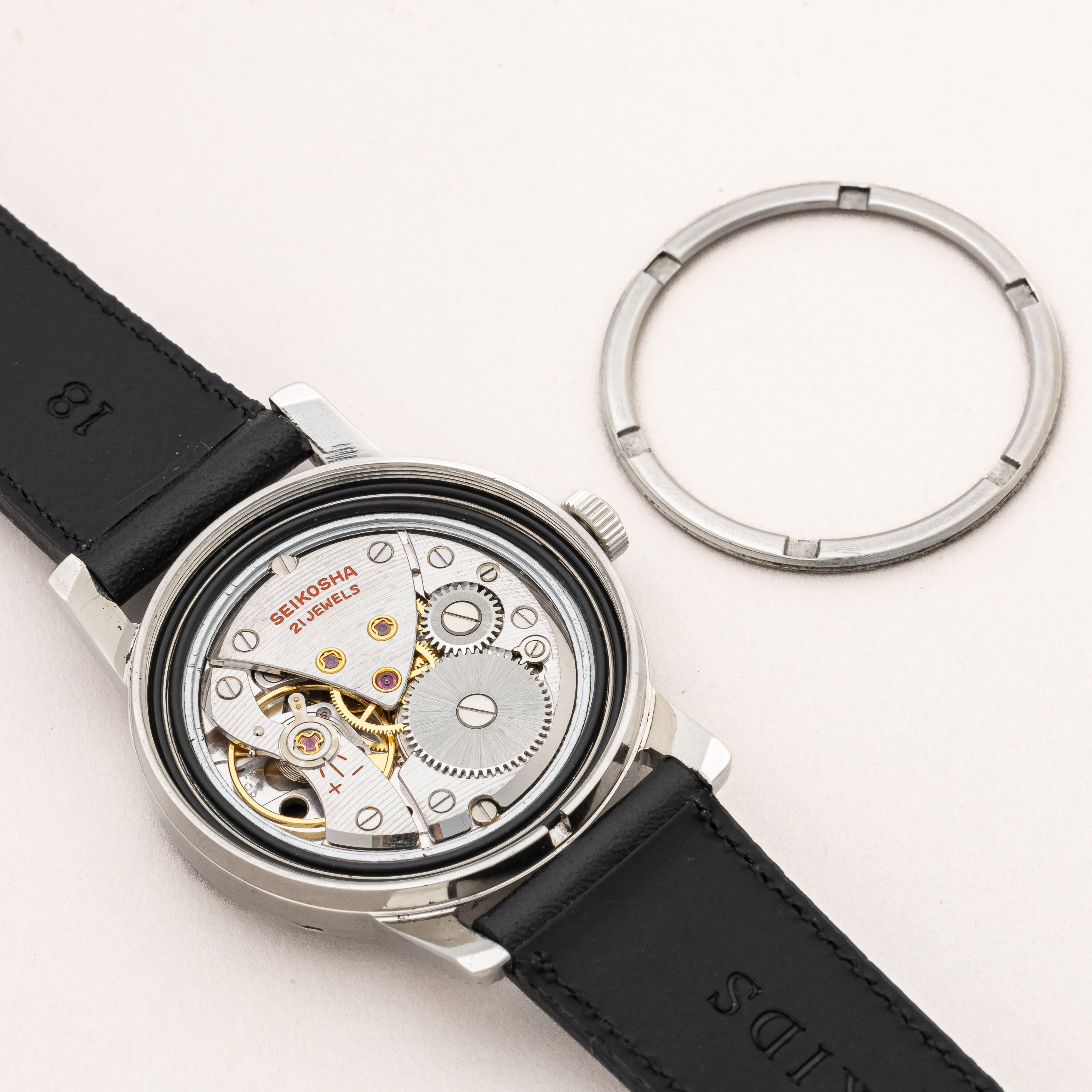 - ヴィンテージ時計の特性上、風防・パッキン・リューズ・バネ棒などの消耗部品は後年メンテナンス過程で交換されている場合がございます。オリジナル性を重視しておりますが、必要に応じて適切な部品にて調整されていますので、よりコレクション性重視のお求めのお客様は事前にご確認ください。