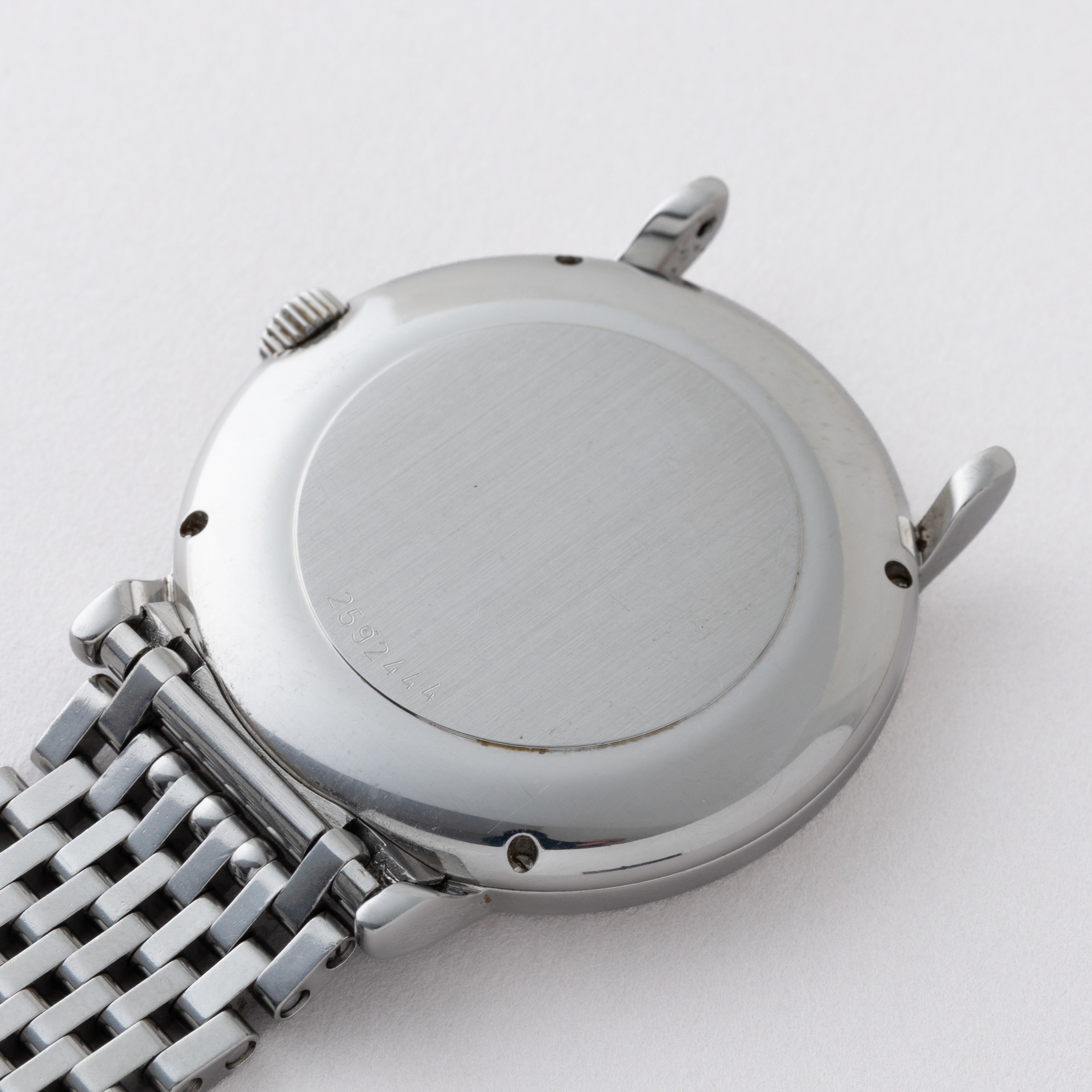 - ヴィンテージ時計の特性上、風防・パッキン・リューズ・バネ棒などの消耗部品は後年メンテナンス過程で交換されている場合がございます。オリジナル性を重視しておりますが、必要に応じて適切な部品にて調整されていますので、よりコレクション性重視のお求めのお客様は事前にご確認ください。