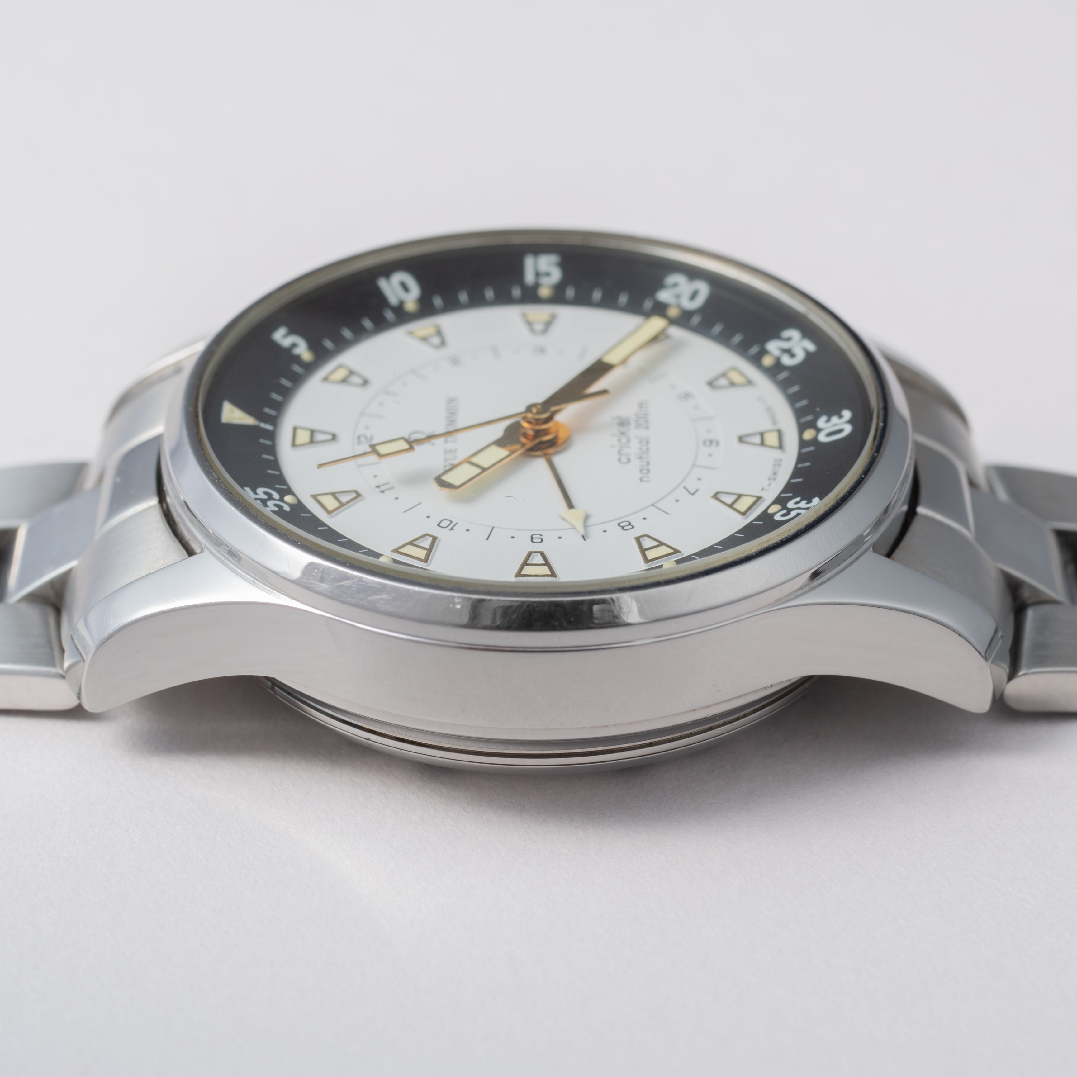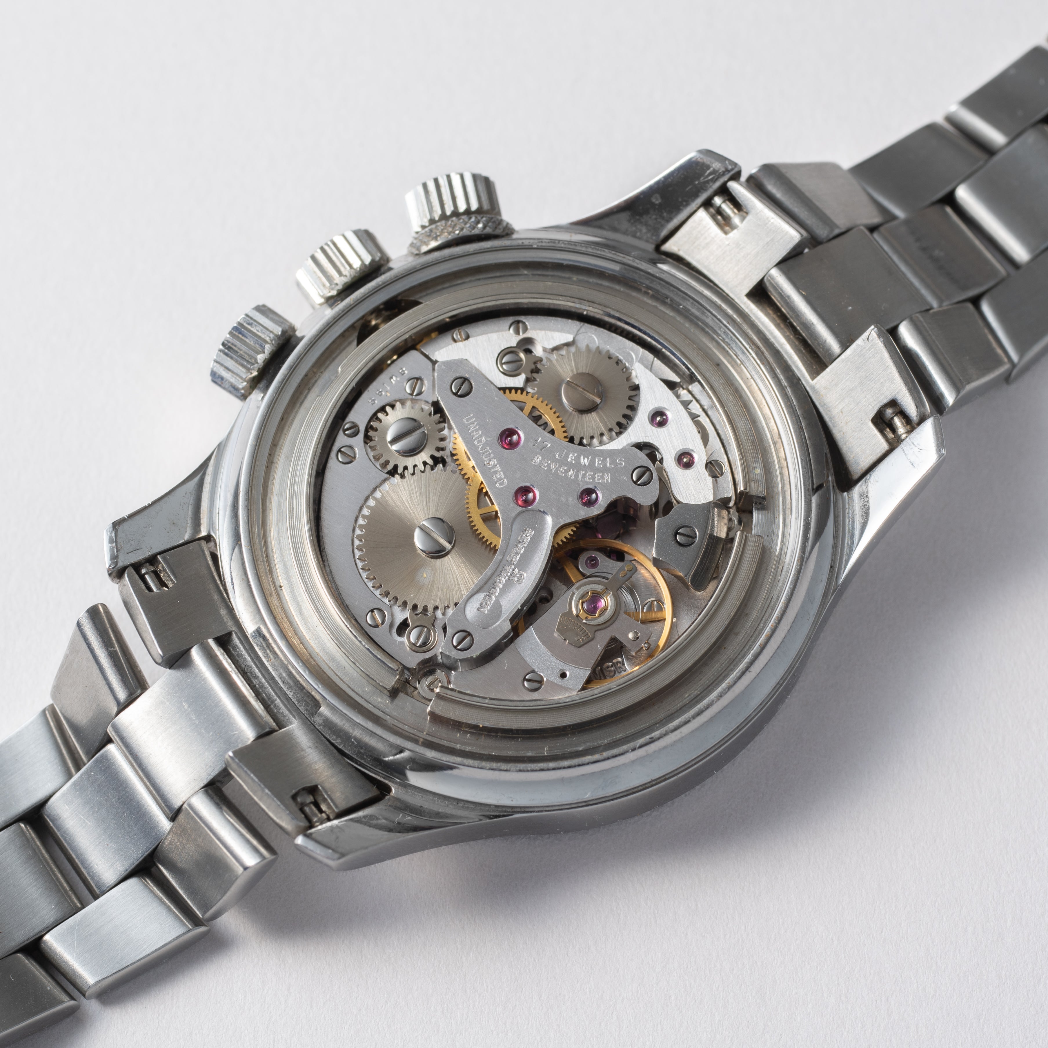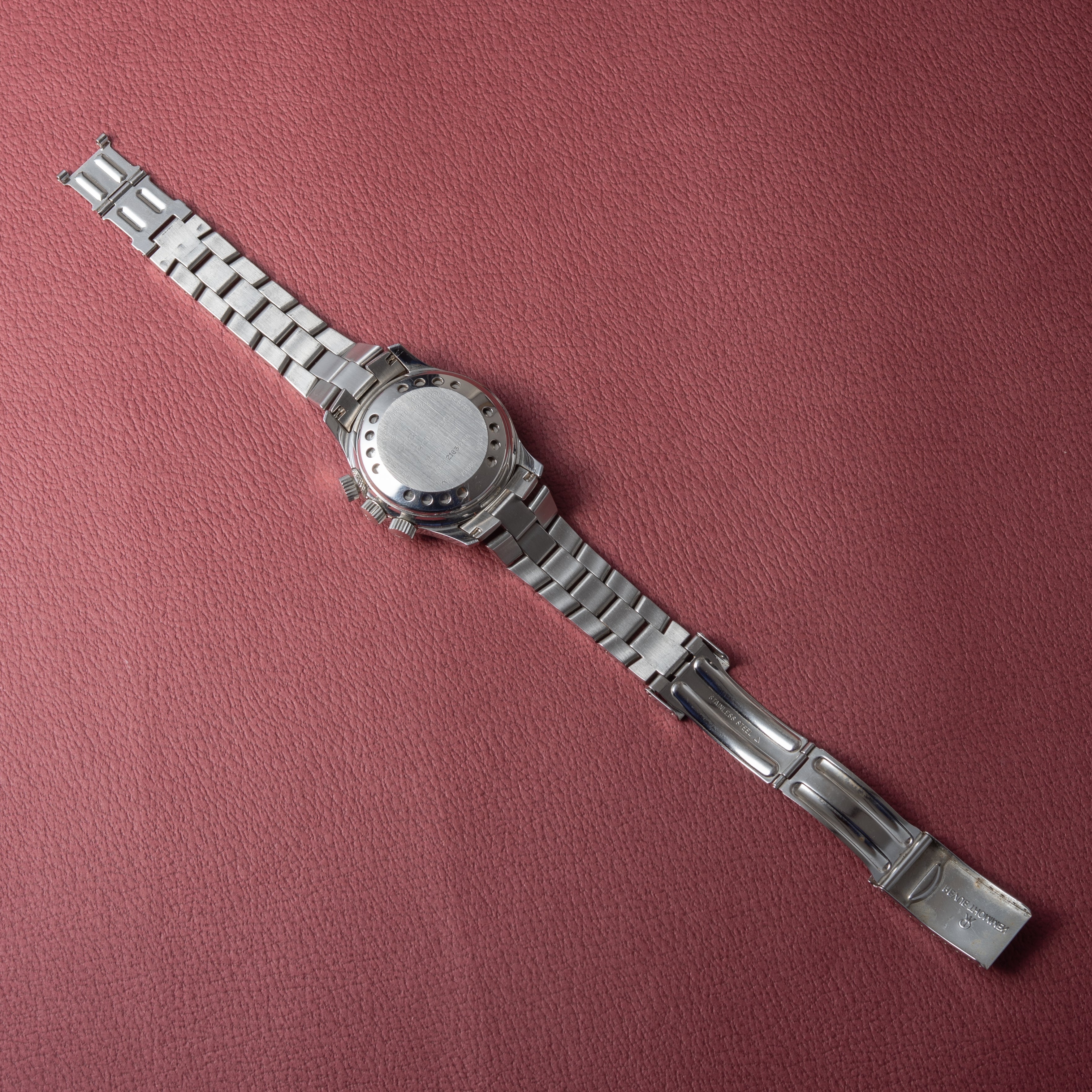 - ヴィンテージ時計の特性上、風防・パッキン・リューズ・バネ棒などの消耗部品は後年メンテナンス過程で交換されている場合がございます。オリジナル性を重視しておりますが、必要に応じて適切な部品にて調整されていますので、よりコレクション性重視のお求めのお客様は事前にご確認ください。