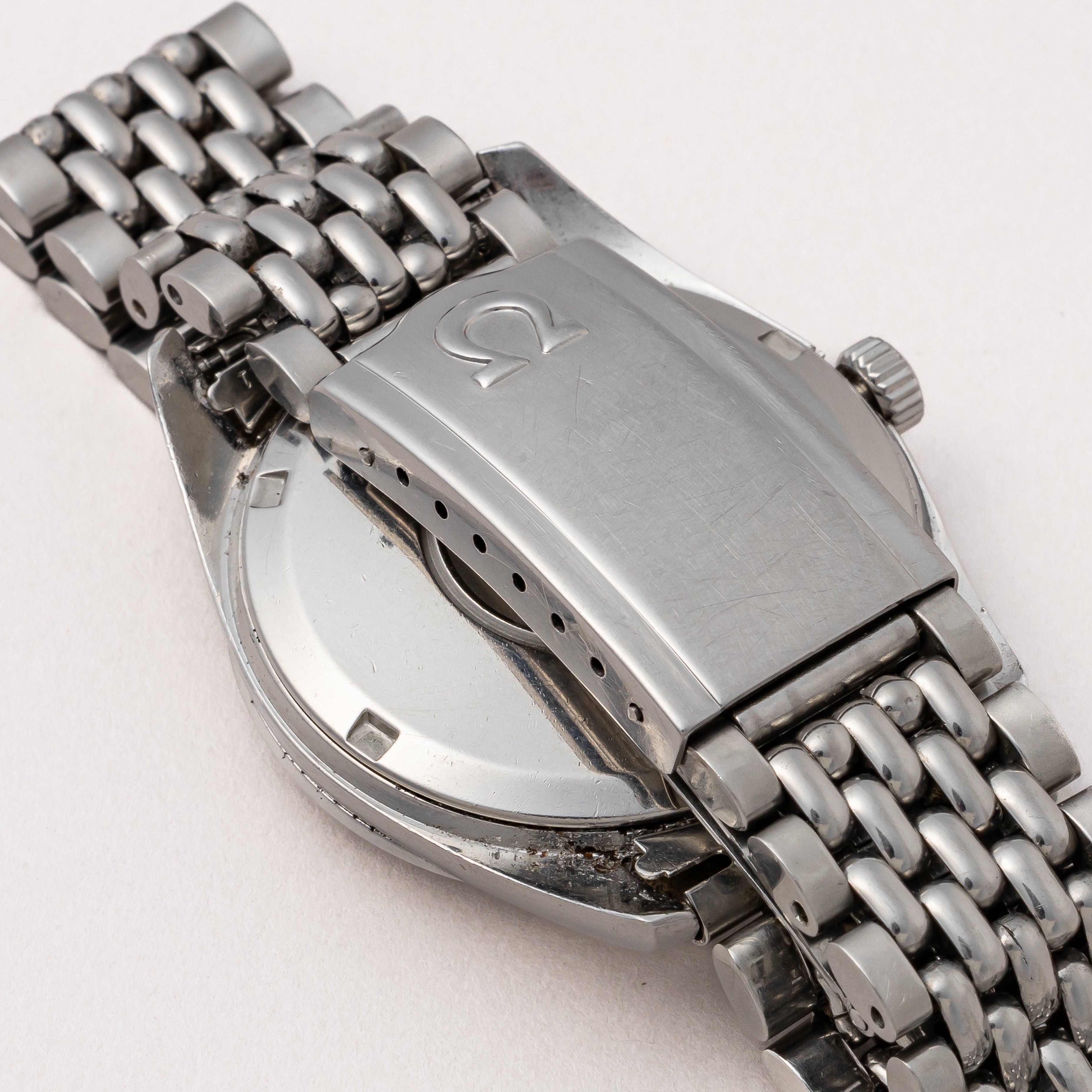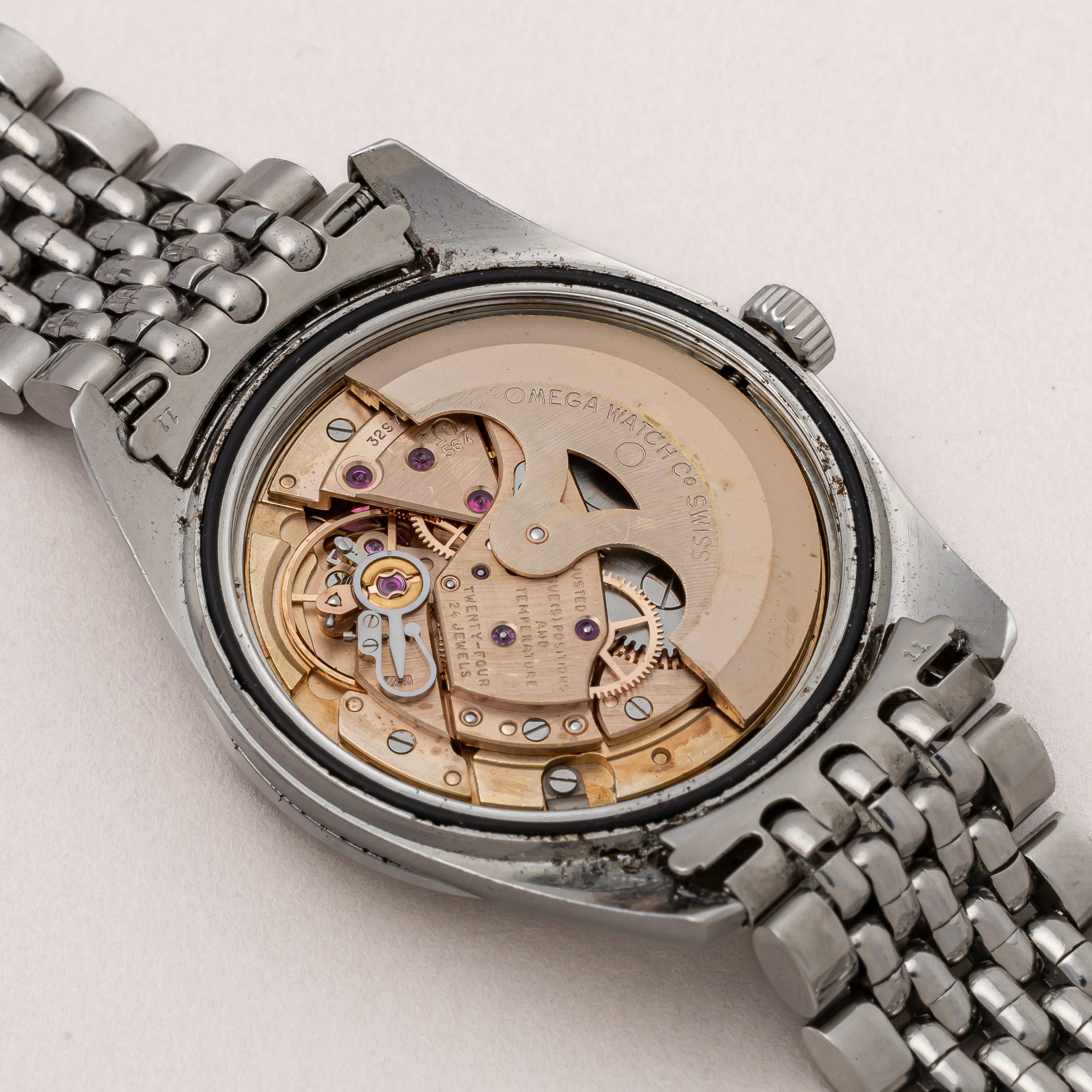 - ヴィンテージ時計の特性上、風防・パッキン・リューズ・バネ棒などの消耗部品は後年メンテナンス過程で交換されている場合がございます。オリジナル性を重視しておりますが、必要に応じて適切な部品にて調整されていますので、よりコレクション性重視のお求めのお客様は事前にご確認ください。