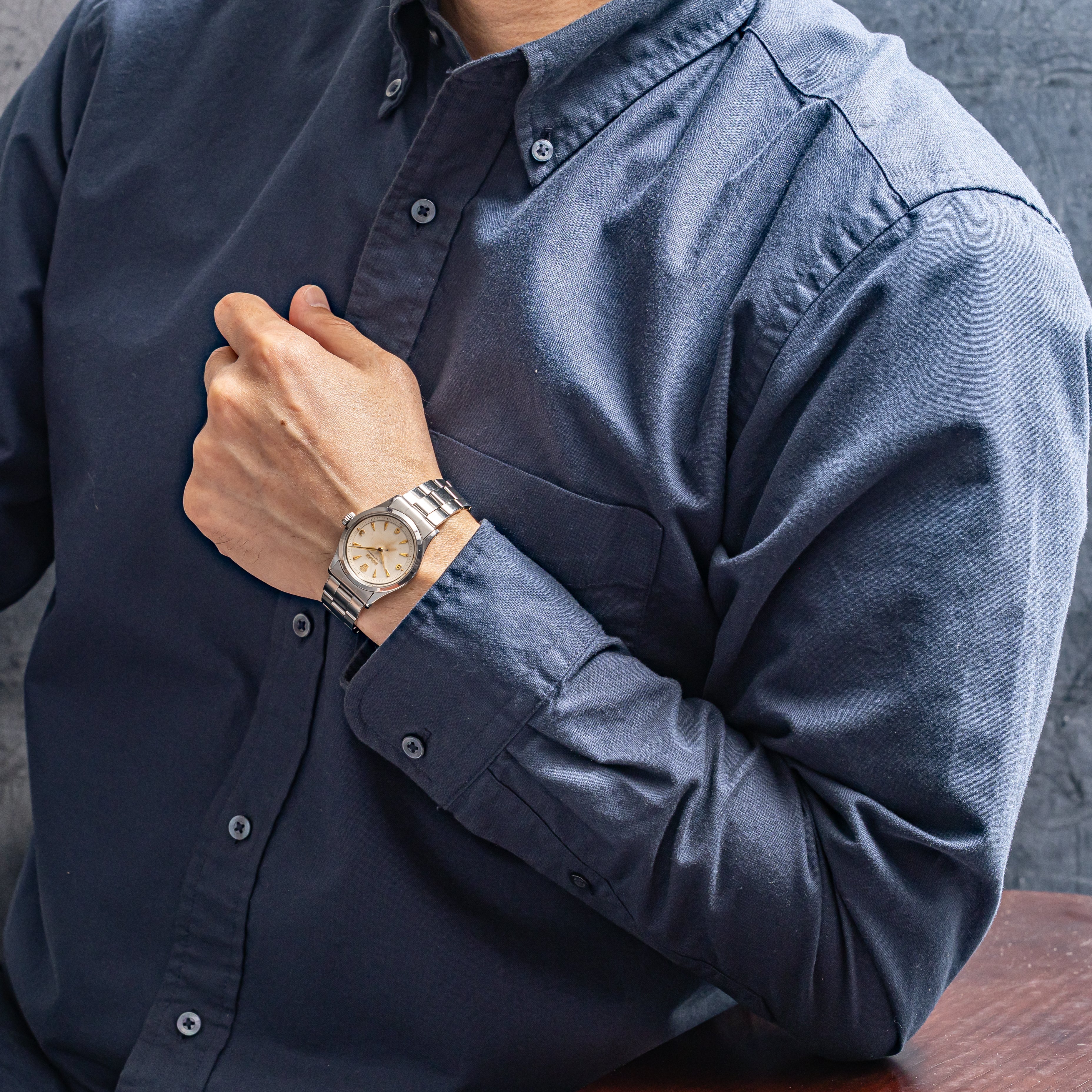 - ヴィンテージ時計の特性上、風防・パッキン・リューズ・バネ棒などの消耗部品は後年メンテナンス過程で交換されている場合がございます。オリジナル性を重視しておりますが、必要に応じて適切な部品にて調整されていますので、よりコレクション性重視のお求めのお客様は事前にご確認ください。