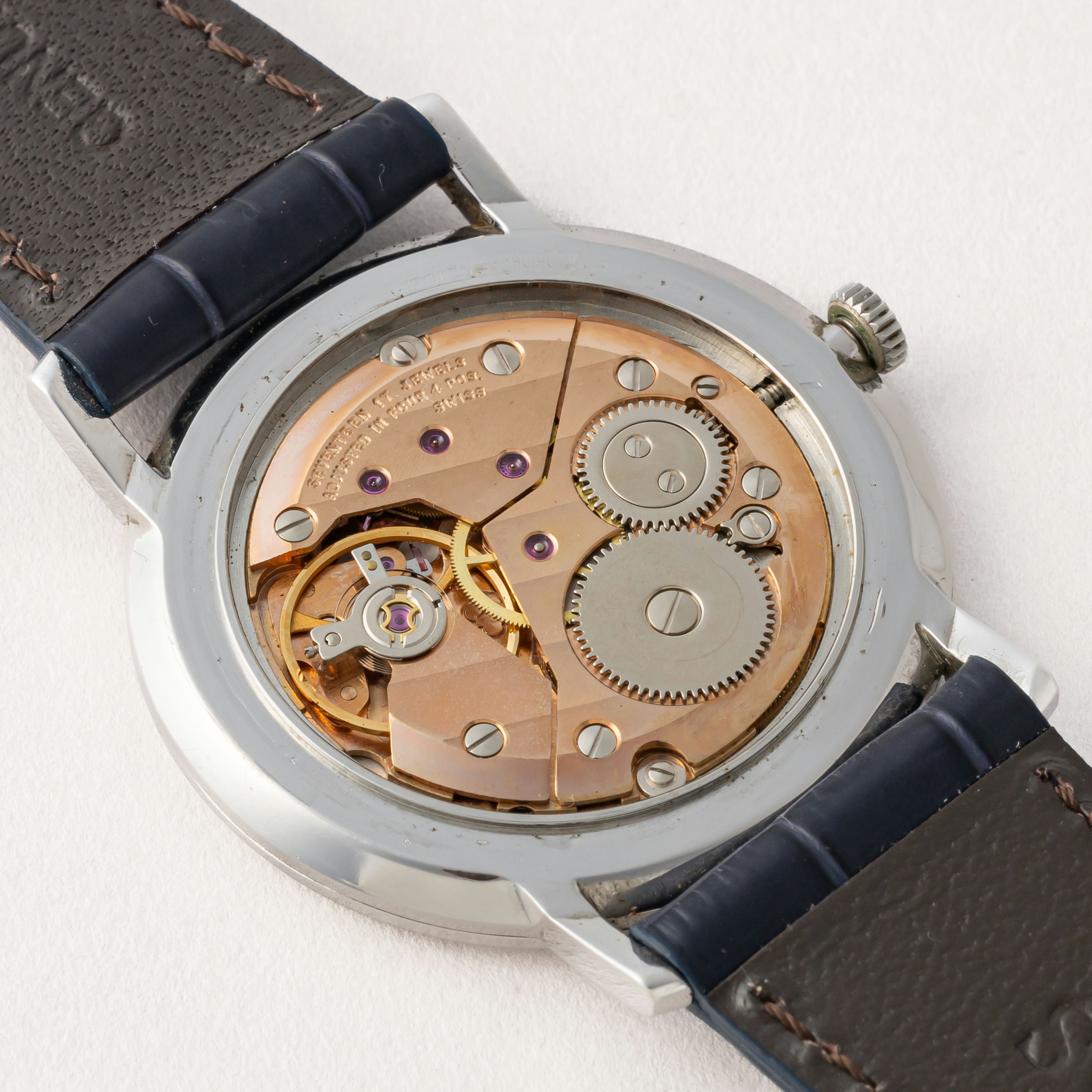 - ヴィンテージ時計の特性上、風防・パッキン・リューズ・バネ棒などの消耗部品は後年メンテナンス過程で交換されている場合がございます。オリジナル性を重視しておりますが、必要に応じて適切な部品にて調整されていますので、よりコレクション性重視のお求めのお客様は事前にご確認ください。