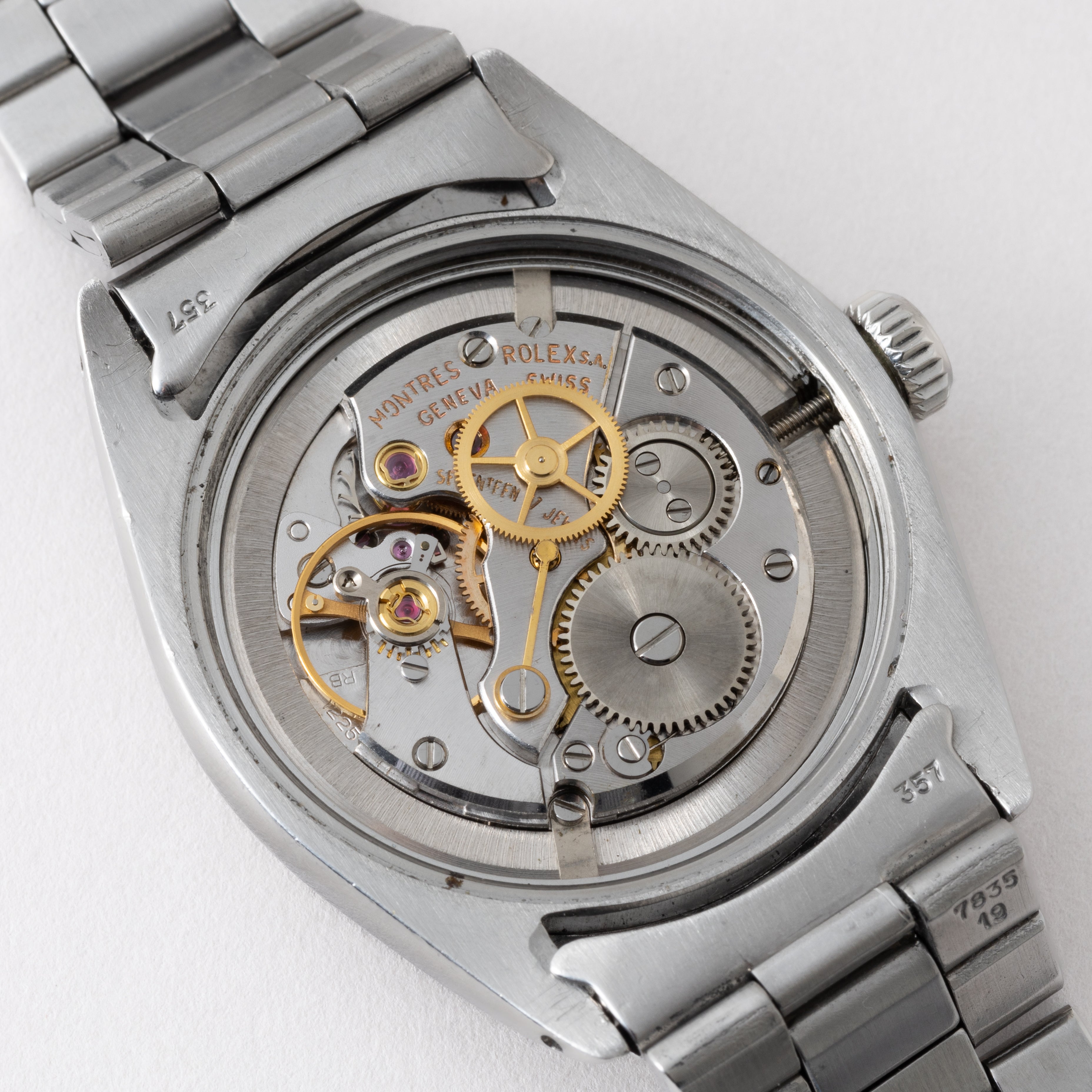 - ヴィンテージ時計の特性上、風防・パッキン・リューズ・バネ棒などの消耗部品は後年メンテナンス過程で交換されている場合がございます。オリジナル性を重視しておりますが、必要に応じて適切な部品にて調整されていますので、よりコレクション性重視のお求めのお客様は事前にご確認ください。