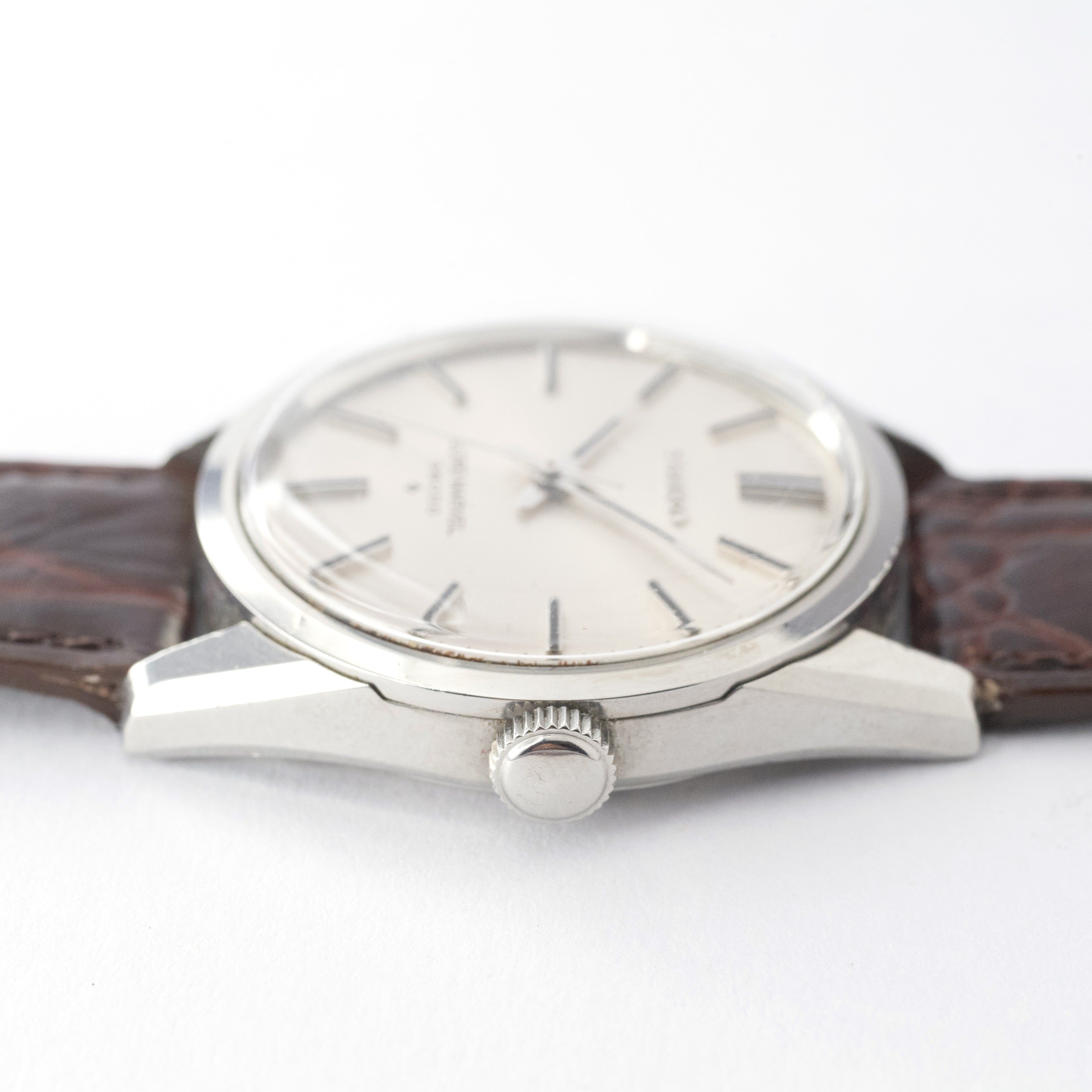 - ヴィンテージ時計の特性上、風防・パッキン・リューズ・バネ棒などの消耗部品は後年メンテナンス過程で交換されている場合がございます。オリジナル性を重視しておりますが、必要に応じて適切な部品にて調整されていますので、よりコレクション性重視のお求めのお客様は事前にご確認ください。