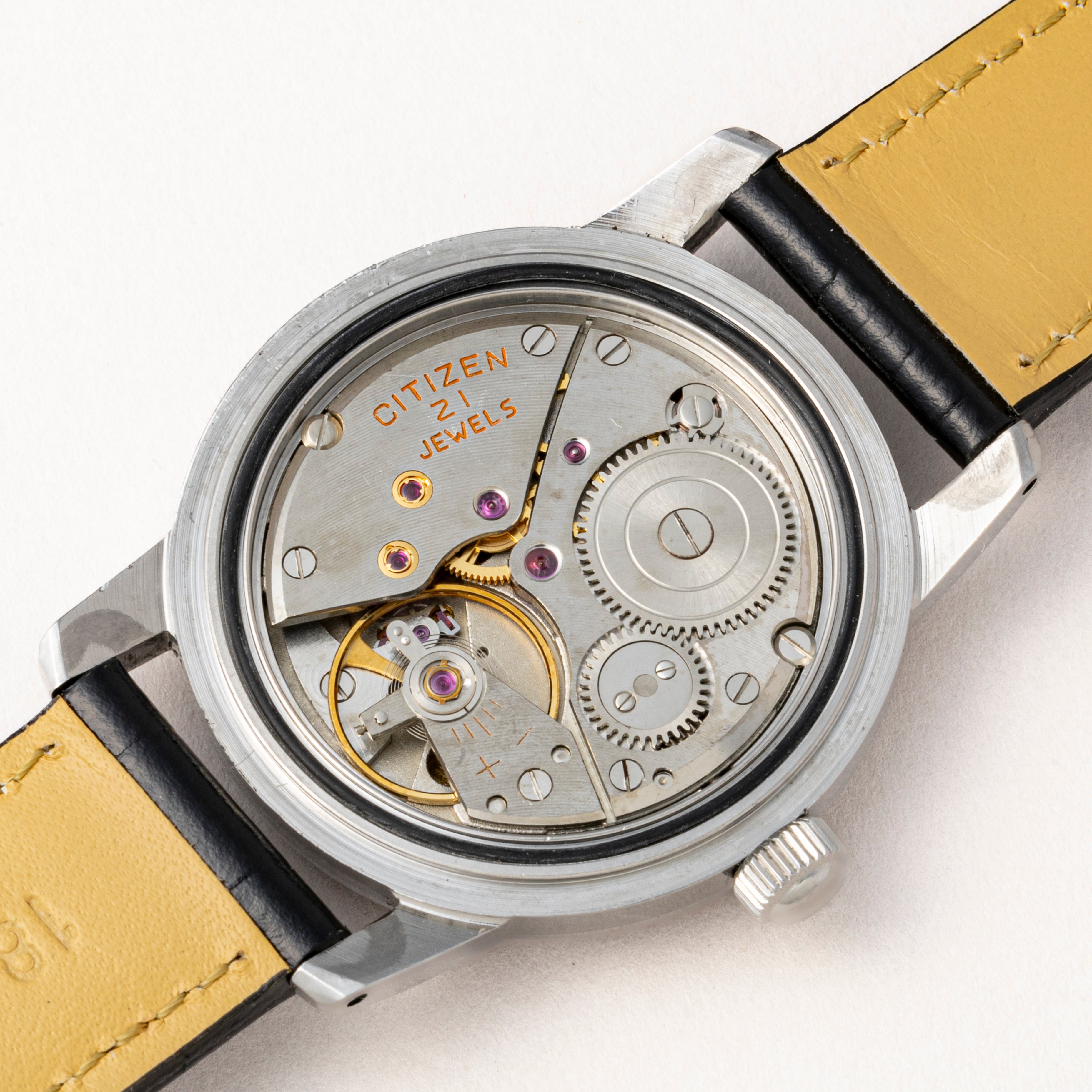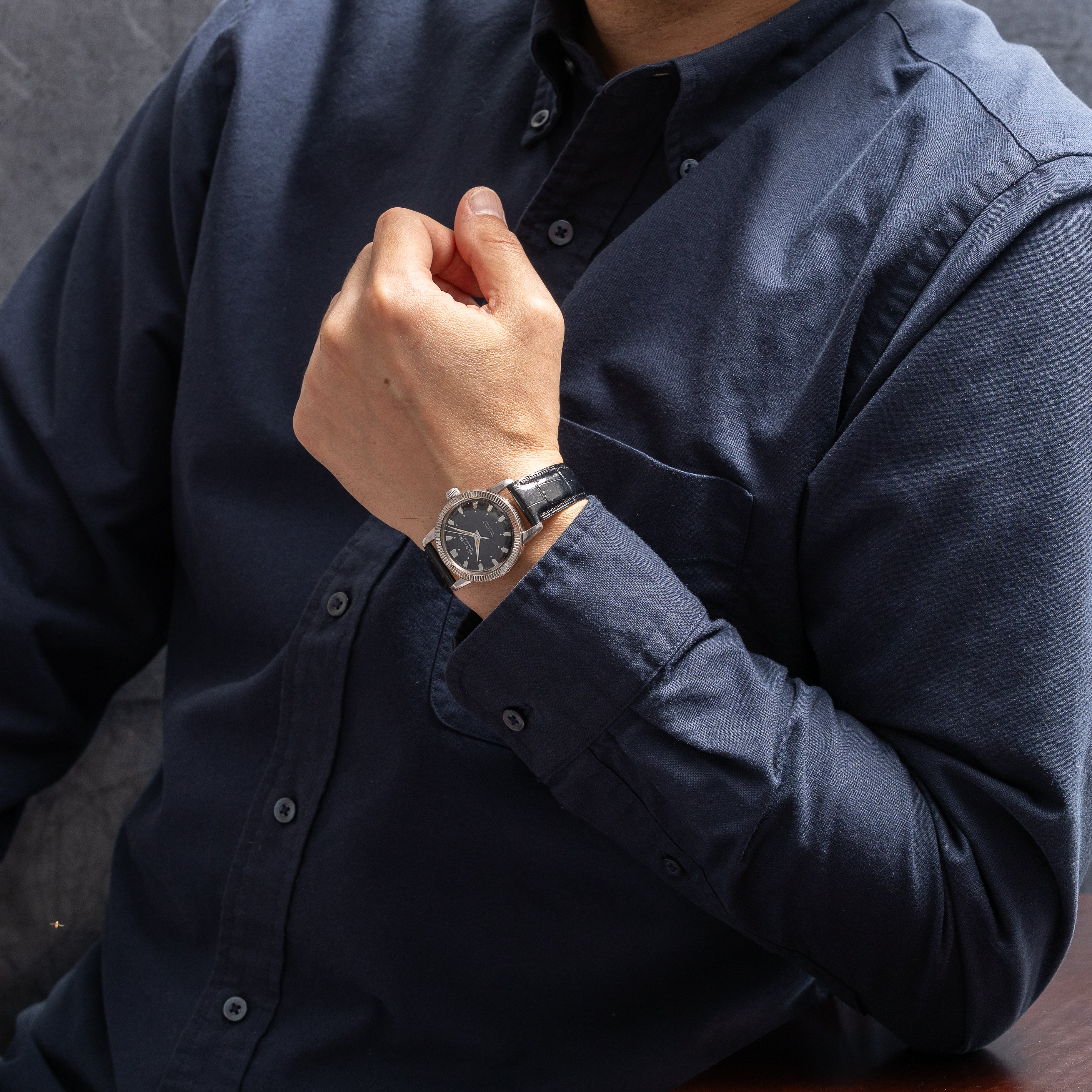 - ヴィンテージ時計の特性上、風防・パッキン・リューズ・バネ棒などの消耗部品は後年メンテナンス過程で交換されている場合がございます。オリジナル性を重視しておりますが、必要に応じて適切な部品にて調整されていますので、よりコレクション性重視のお求めのお客様は事前にご確認ください。