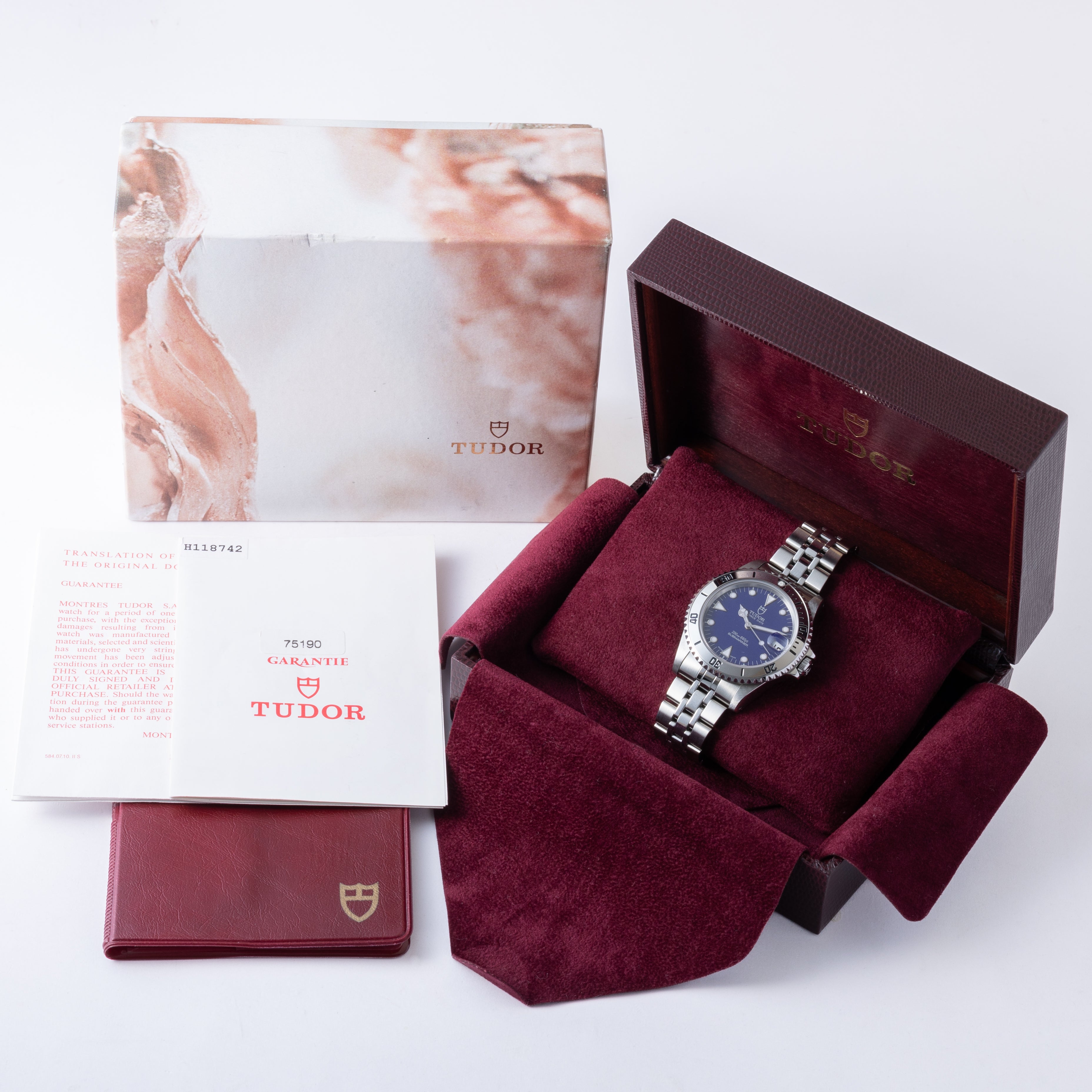 チューダー サブマリーナ ミッドサイズ ブルーダイヤル 1999年製 Ref.75190 箱、ギャラ付き