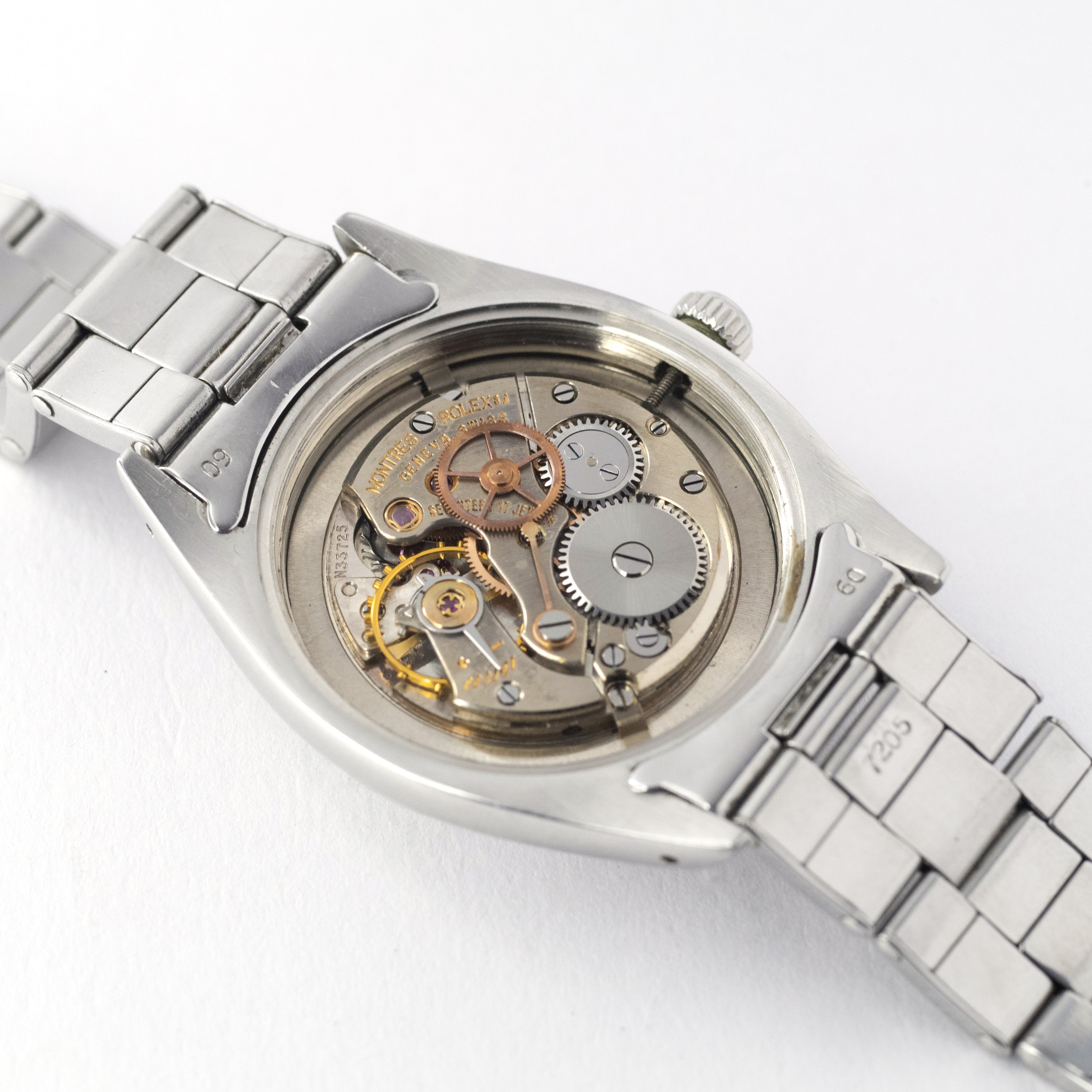 - ヴィンテージ時計の特性上、風防・パッキン・リューズ・バネ棒などの消耗部品は後年メンテナンス過程で交換されている場合がございます。オリジナル性を重視しておりますが、必要に応じて適切な部品にて調整されていますので、よりコレクション性重視のお求めのお客様は事前にご確認ください。