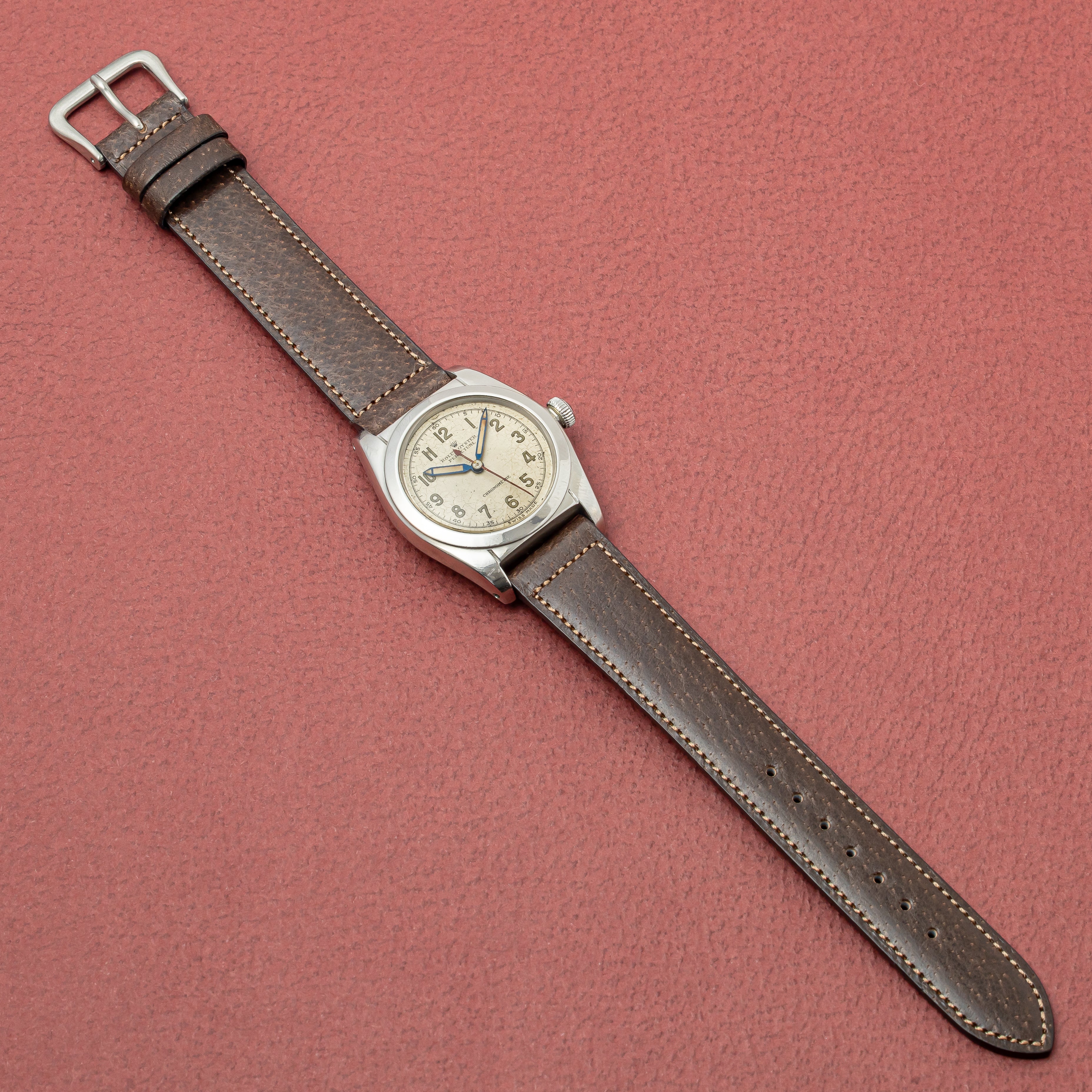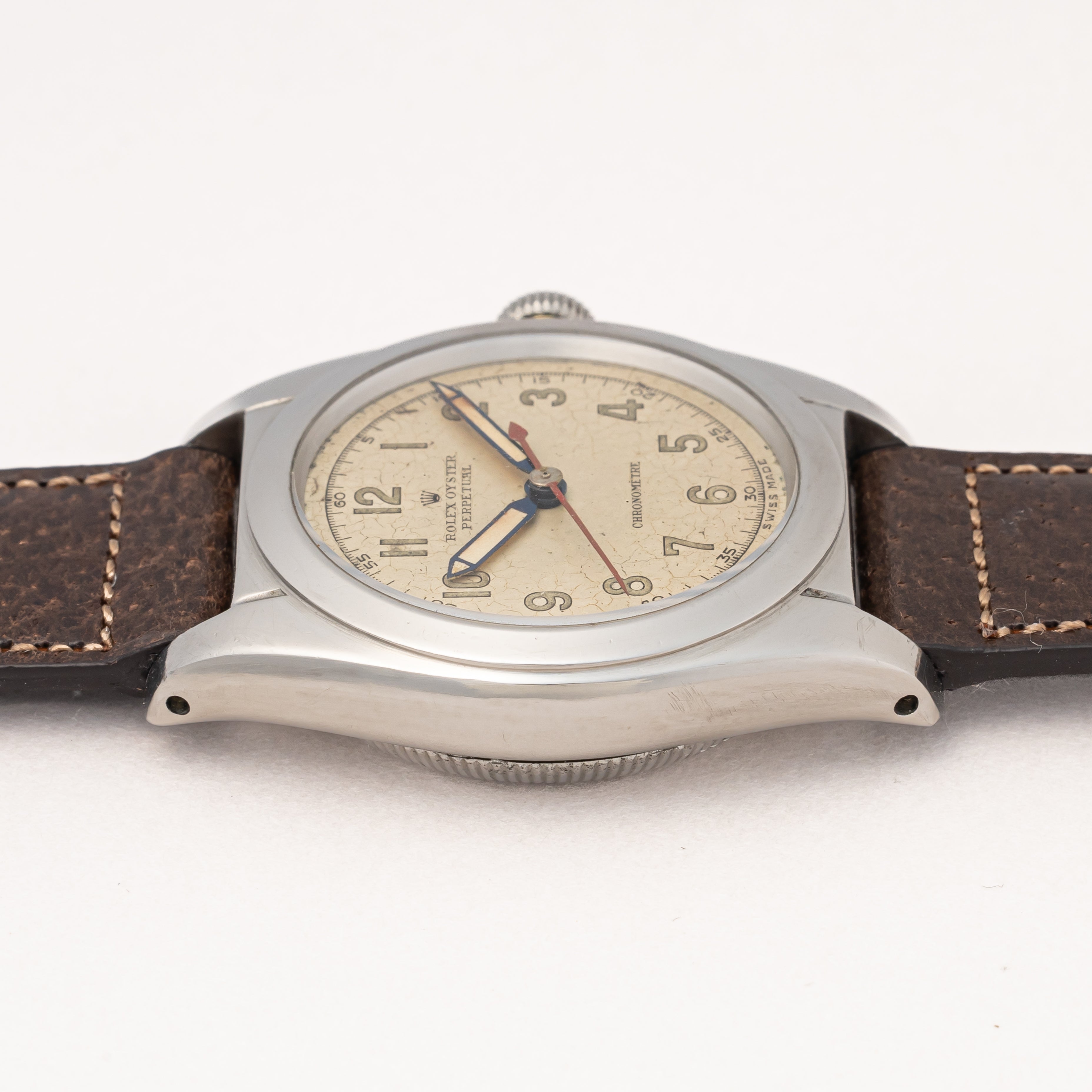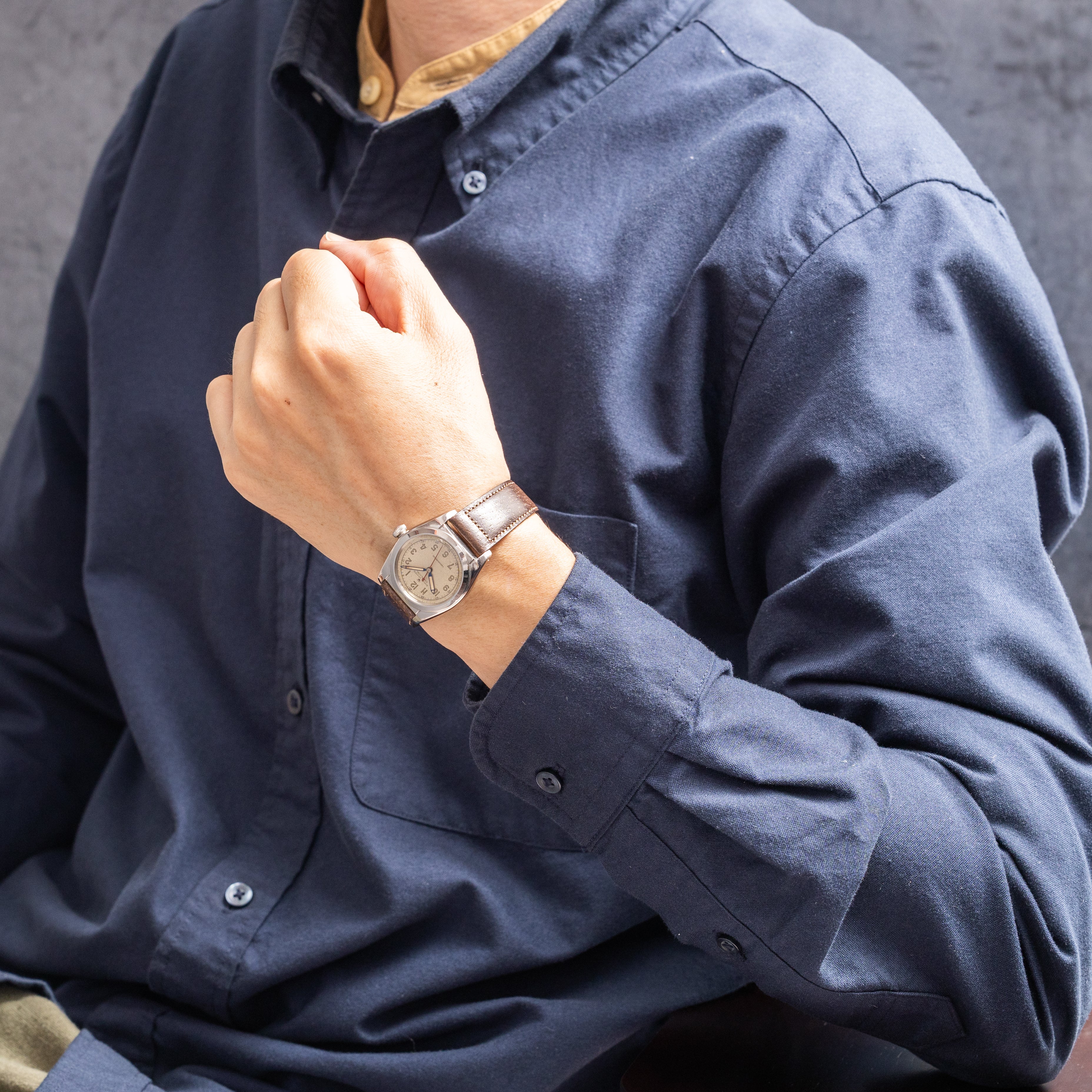 - ヴィンテージ時計の特性上、風防・パッキン・リューズ・バネ棒などの消耗部品は後年メンテナンス過程で交換されている場合がございます。オリジナル性を重視しておりますが、必要に応じて適切な部品にて調整されていますので、よりコレクション性重視のお求めのお客様は事前にご確認ください。