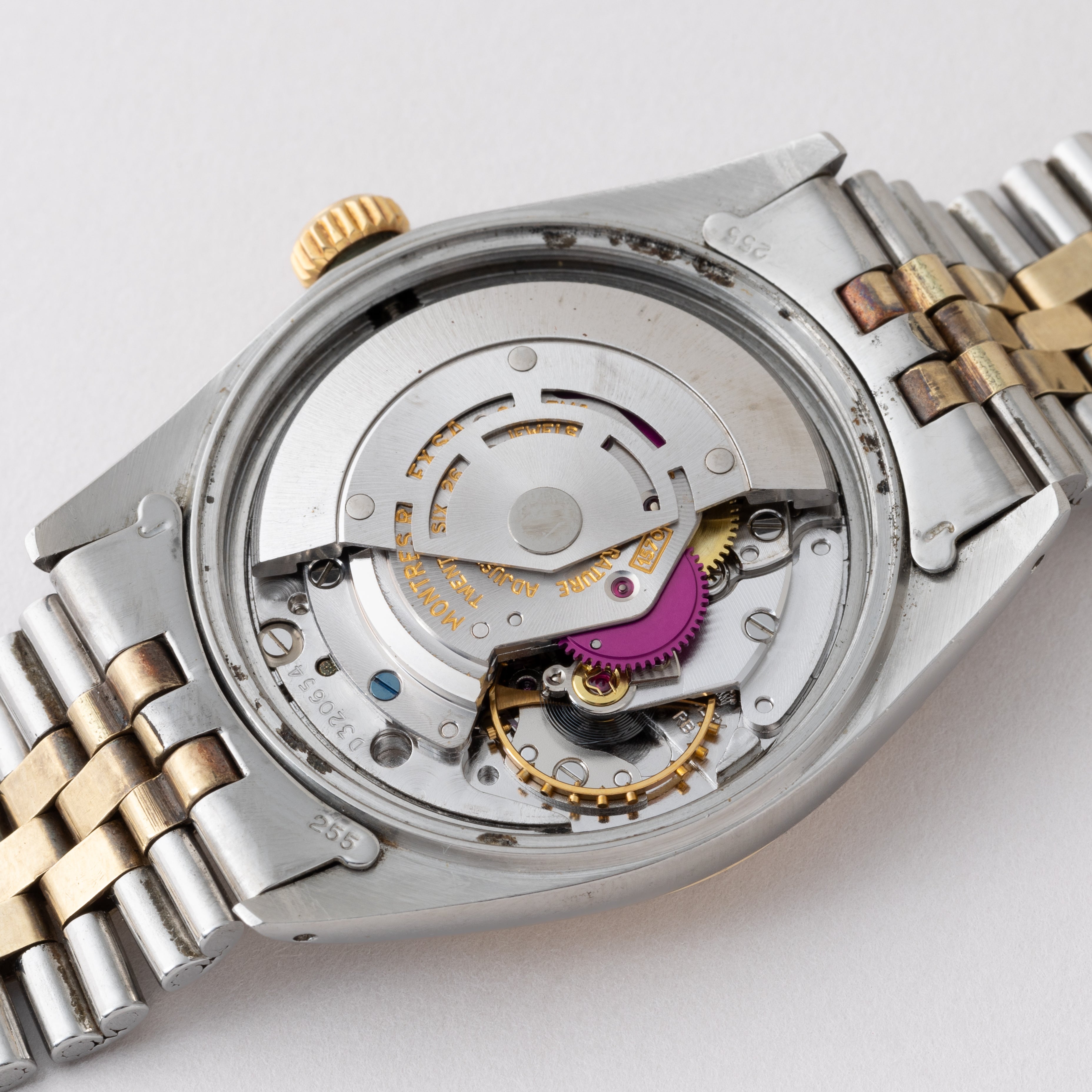 - ヴィンテージ時計の特性上、風防・パッキン・リューズ・バネ棒などの消耗部品は後年メンテナンス過程で交換されている場合がございます。オリジナル性を重視しておりますが、必要に応じて適切な部品にて調整されていますので、よりコレクション性重視のお求めのお客様は事前にご確認ください。
