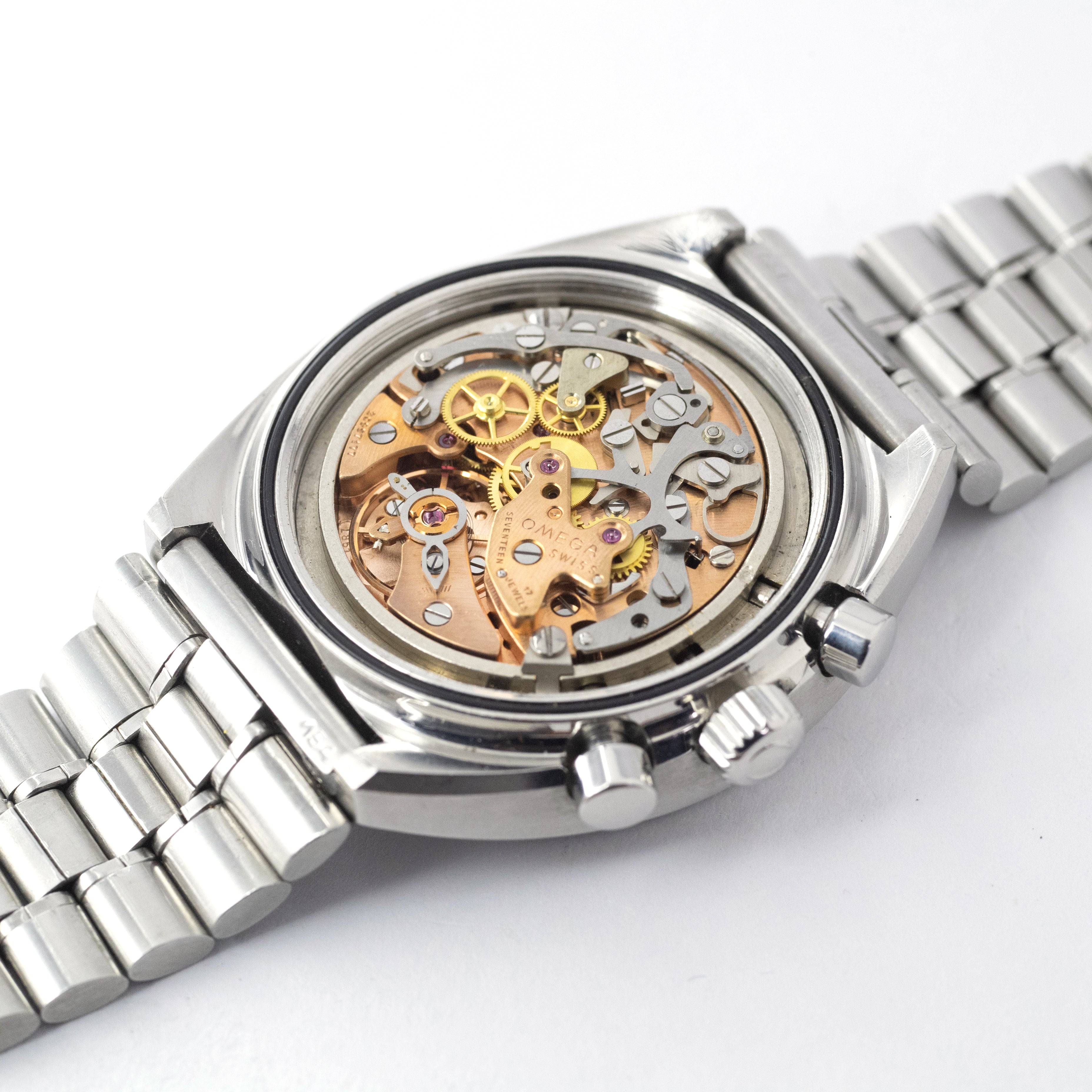 - ヴィンテージ時計の特性上、風防・パッキン・リューズ・バネ棒などの消耗部品は後年メンテナンス過程で交換されている場合がございます。オリジナル性を重視しておりますが、必要に応じて適切な部品にて調整されていますので、よりコレクション性重視のお求めのお客様は事前にご確認ください。