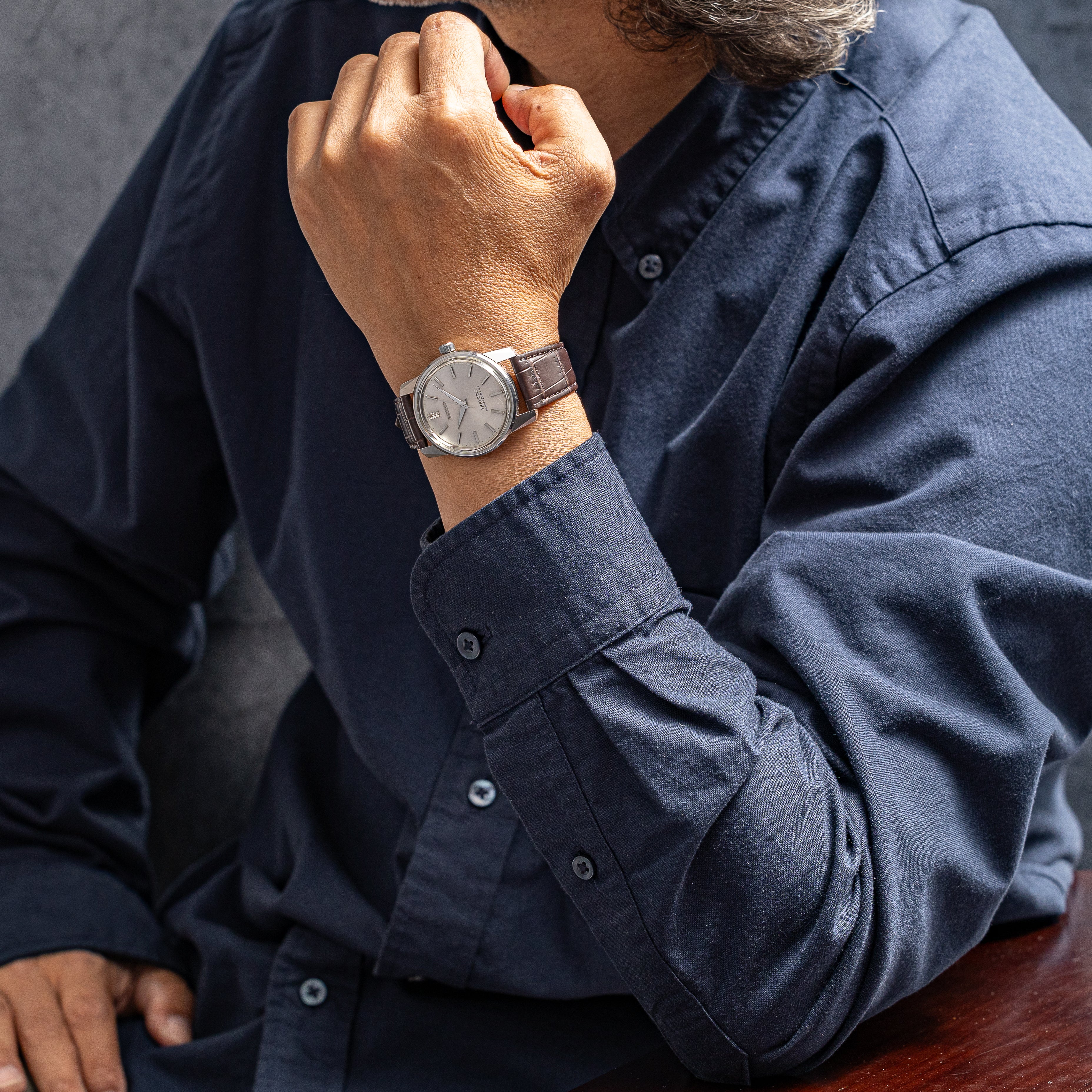 - ヴィンテージ時計の特性上、風防・パッキン・リューズ・バネ棒などの消耗部品は後年メンテナンス過程で交換されている場合がございます。オリジナル性を重視しておりますが、必要に応じて適切な部品にて調整されていますので、よりコレクション性重視のお求めのお客様は事前にご確認ください。