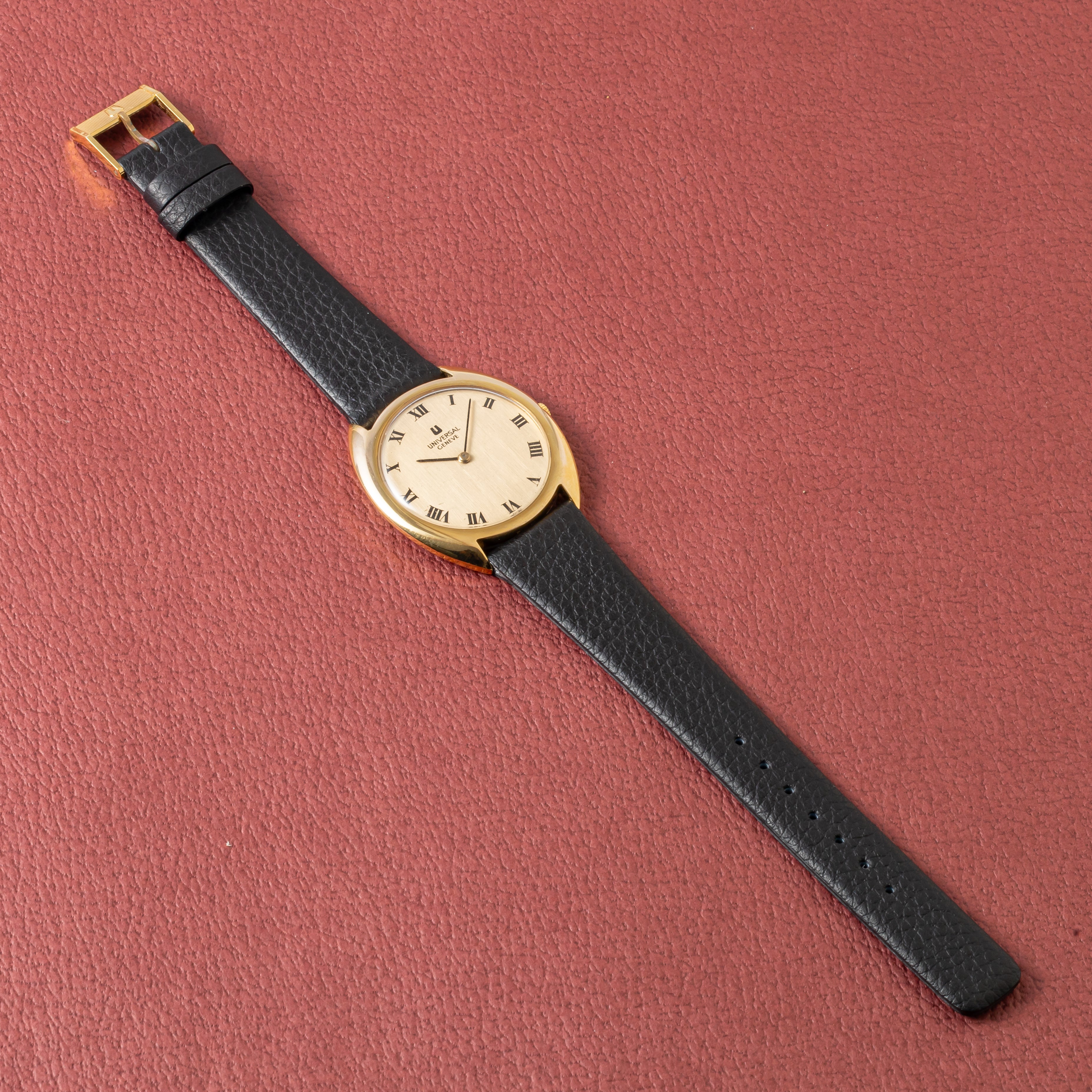 ユニバーサルジュネーブ 薄型手巻き 14金張り 1970年代 箱、タグ付き ローマンダイヤル