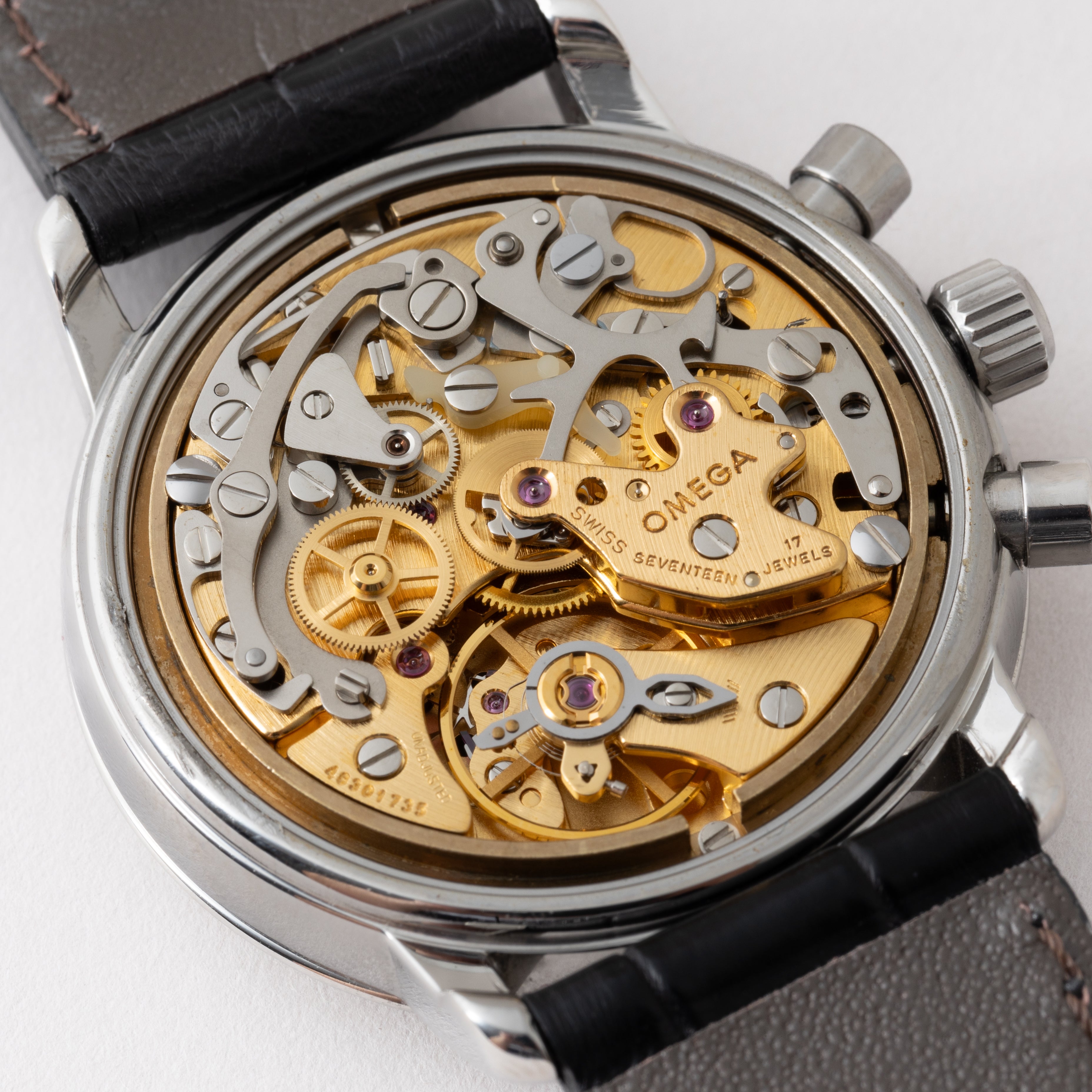 - ヴィンテージ時計の特性上、風防・パッキン・リューズ・バネ棒などの消耗部品は後年メンテナンス過程で交換されている場合がございます。オリジナル性を重視しておりますが、必要に応じて適切な部品にて調整されていますので、よりコレクション性重視のお求めのお客様は事前にご確認ください。