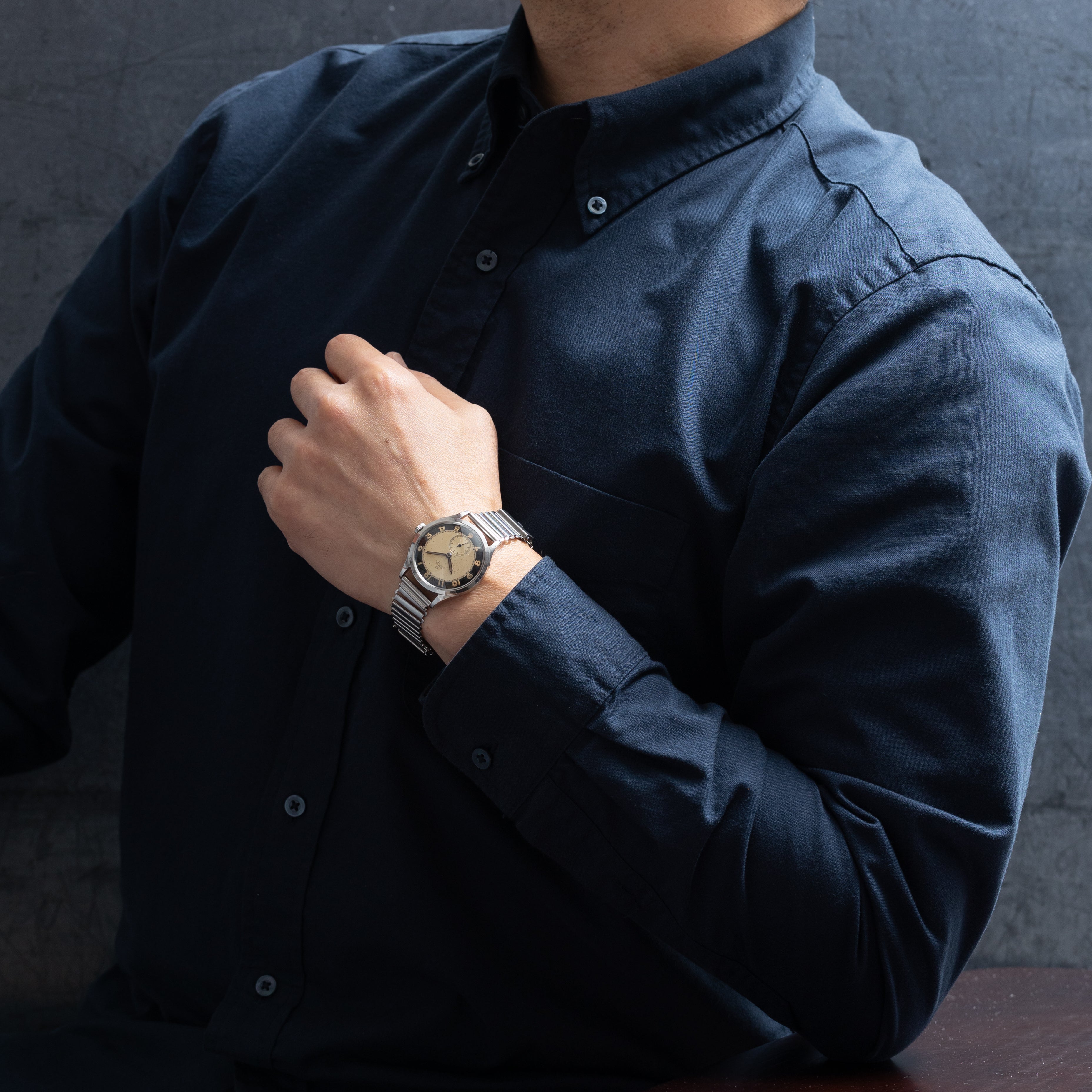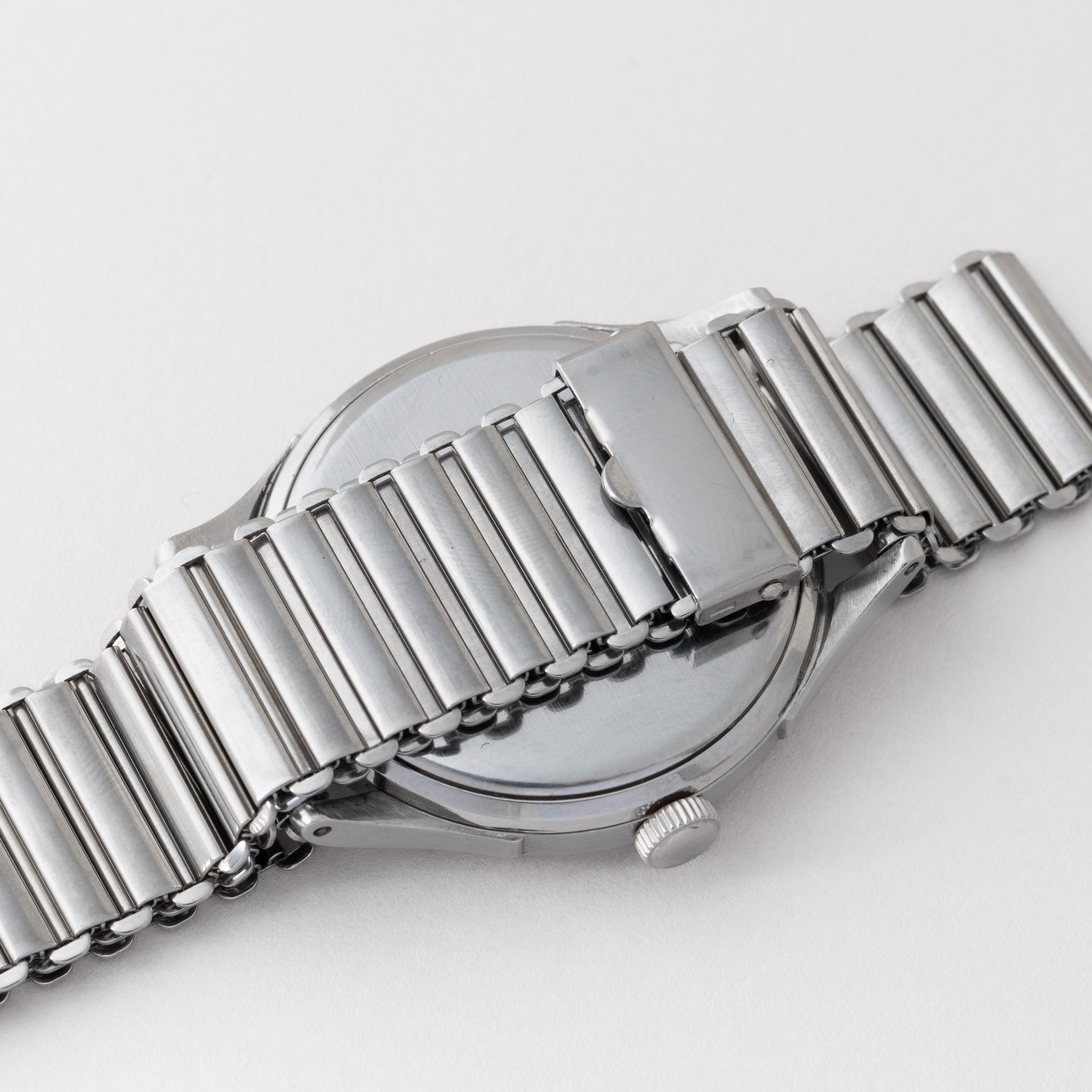 - ヴィンテージ時計の特性上、風防・パッキン・リューズ・バネ棒などの消耗部品は後年メンテナンス過程で交換されている場合がございます。オリジナル性を重視しておりますが、必要に応じて適切な部品にて調整されていますので、よりコレクション性重視のお求めのお客様は事前にご確認ください。