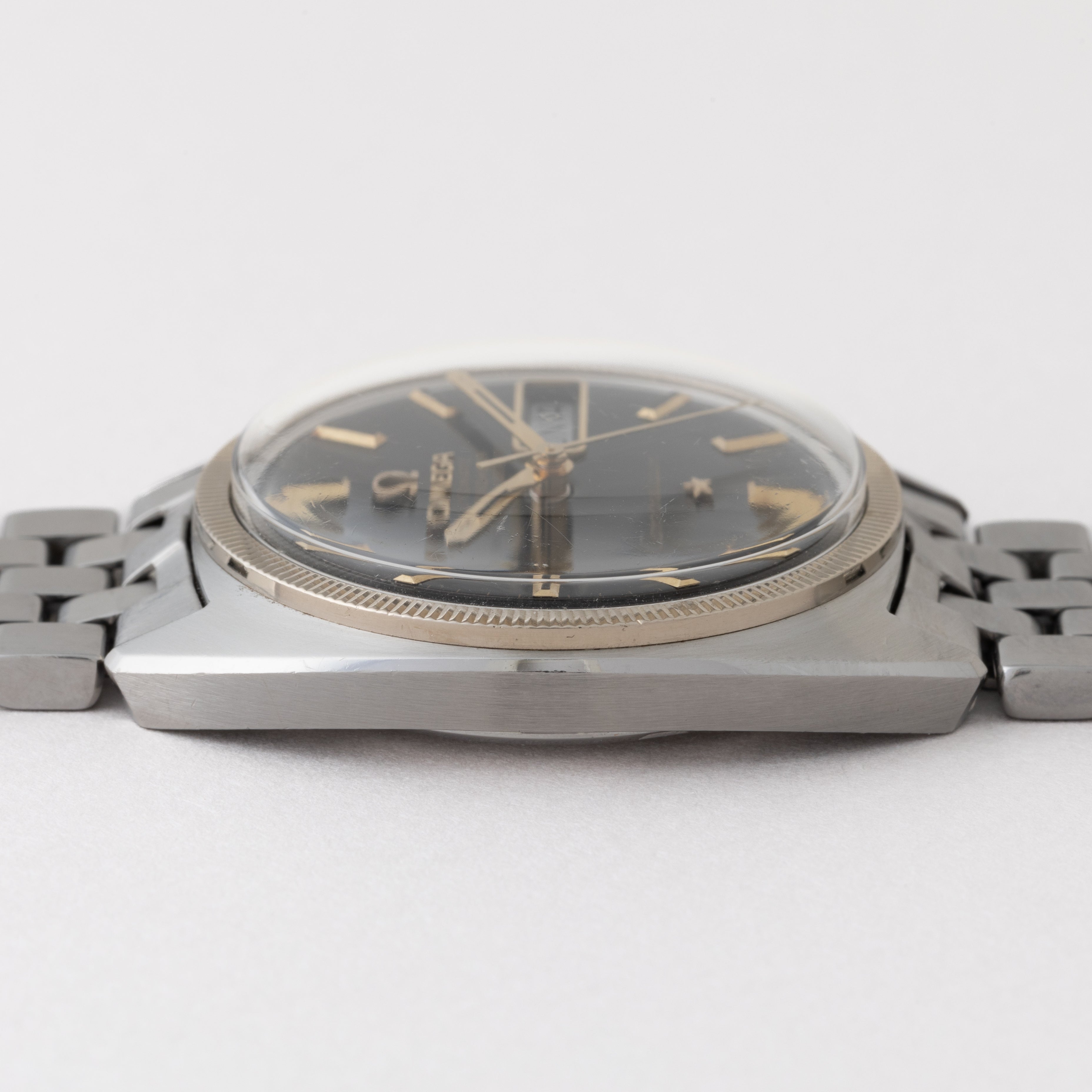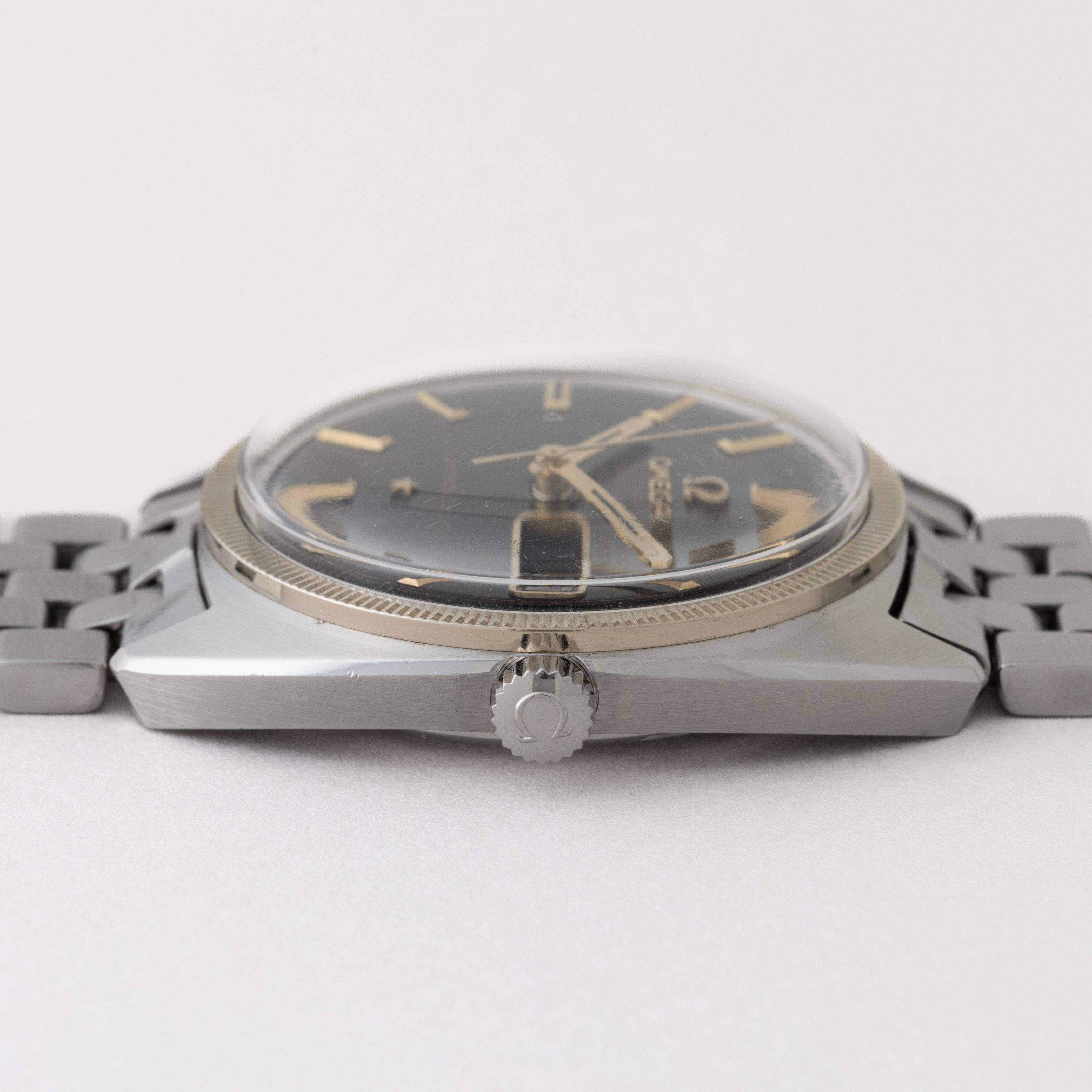 - ヴィンテージ時計の特性上、風防・パッキン・リューズ・バネ棒などの消耗部品は後年メンテナンス過程で交換されている場合がございます。オリジナル性を重視しておりますが、必要に応じて適切な部品にて調整されていますので、よりコレクション性重視のお求めのお客様は事前にご確認ください。