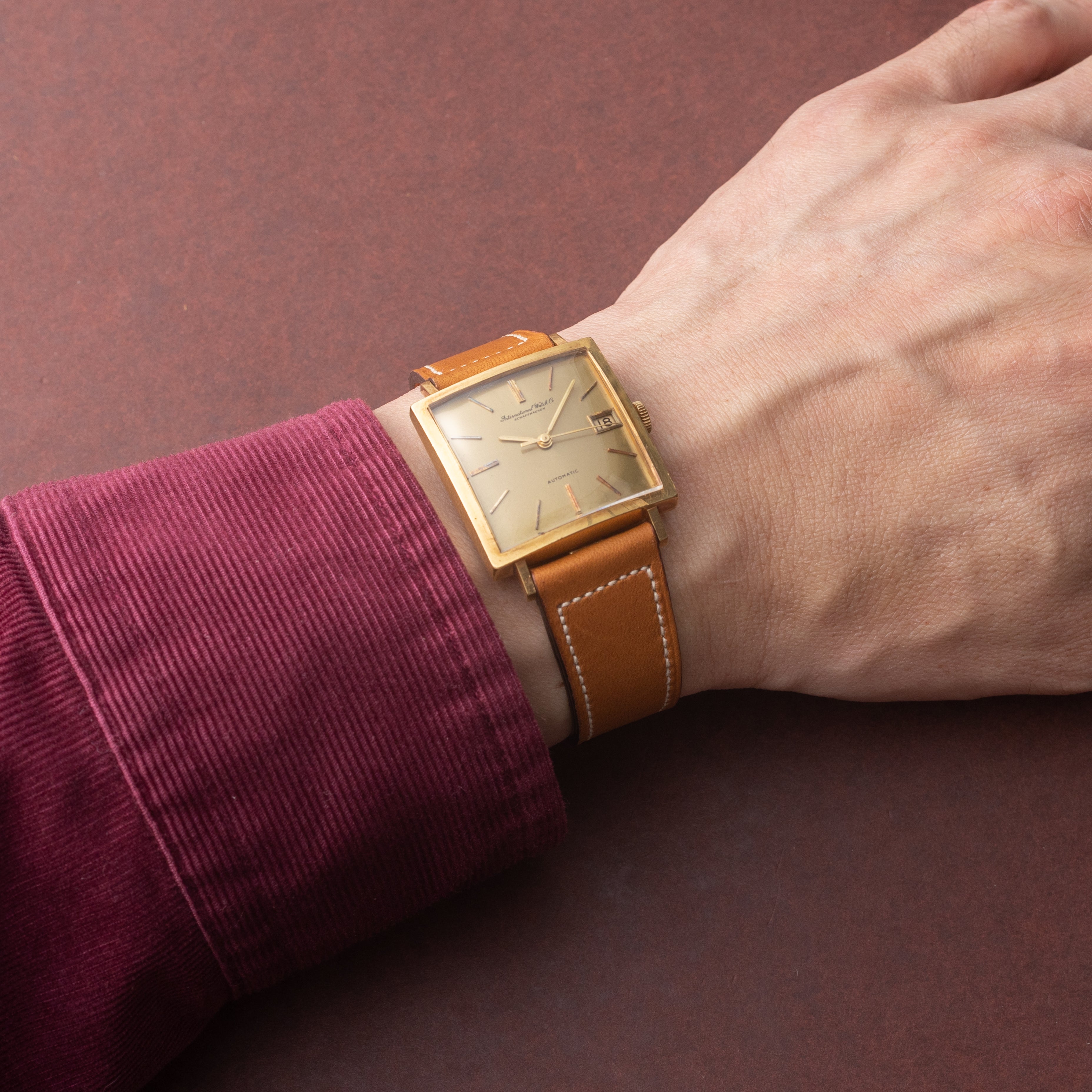 IWC スクエアオート 18金無垢 Cal.8541 純正金張り尾錠付き1972年製