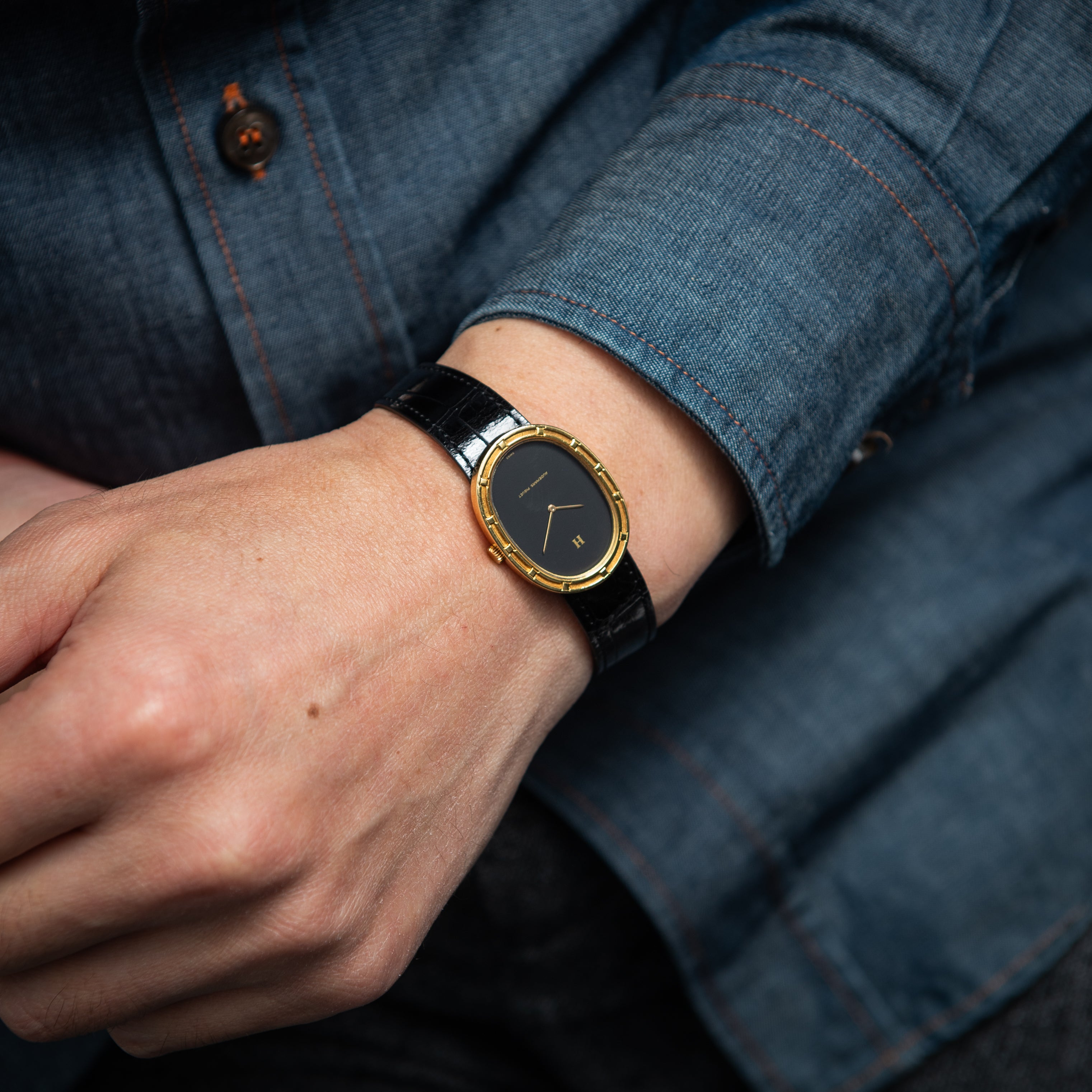 エルメス オーデマ・ピゲ 18金無垢オーバルケース 1970年代製 手巻き 純正金無垢尾錠