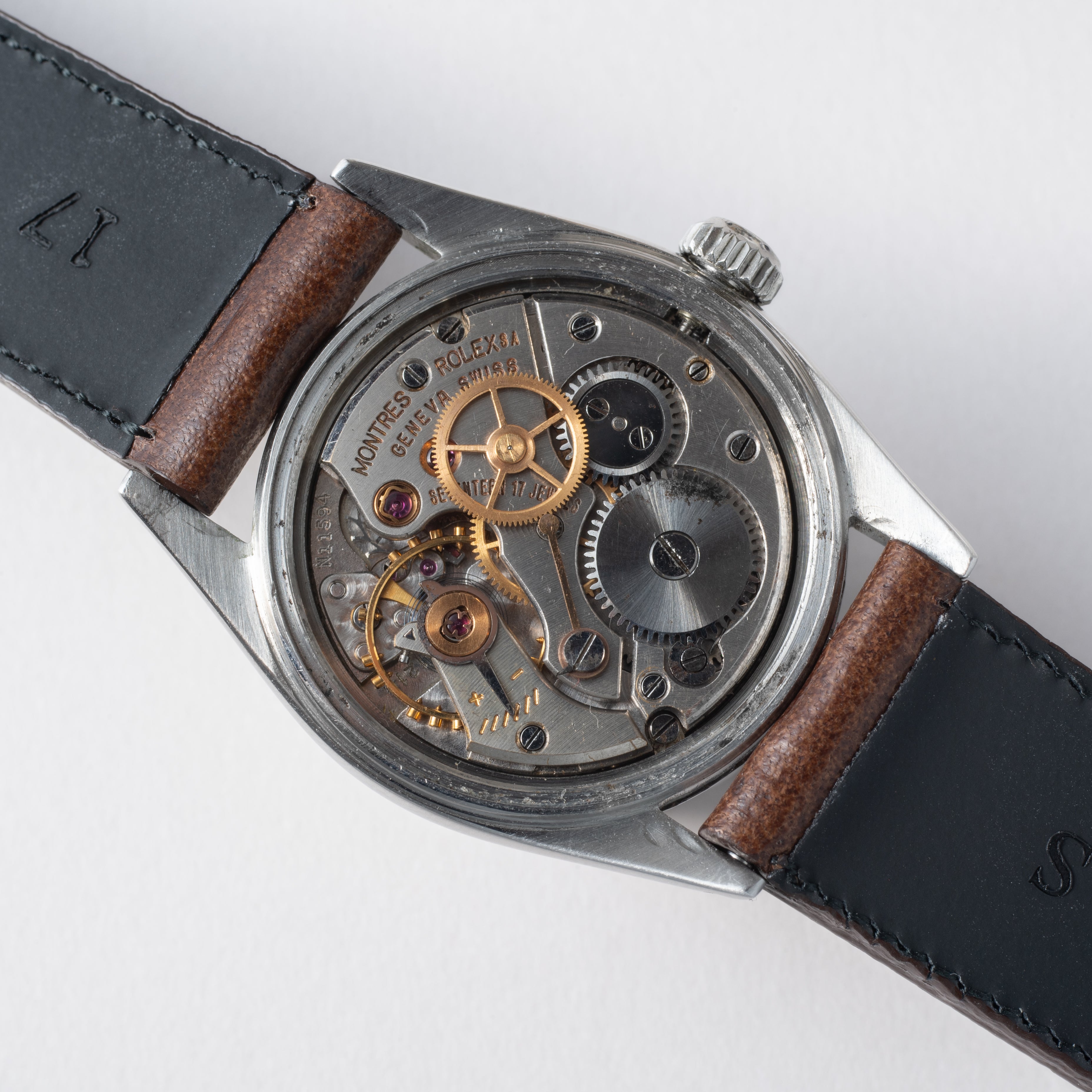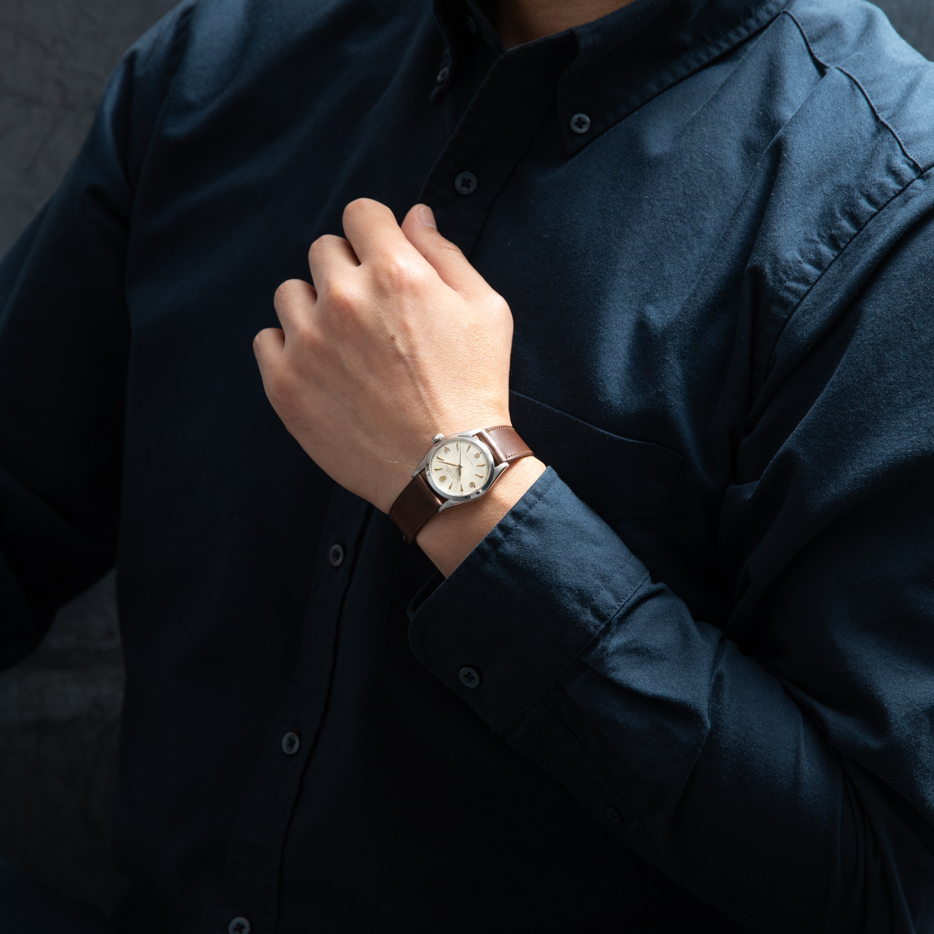 - ヴィンテージ時計の特性上、風防・パッキン・リューズ・バネ棒などの消耗部品は後年メンテナンス過程で交換されている場合がございます。オリジナル性を重視しておりますが、必要に応じて適切な部品にて調整されていますので、よりコレクション性重視のお求めのお客様は事前にご確認ください。