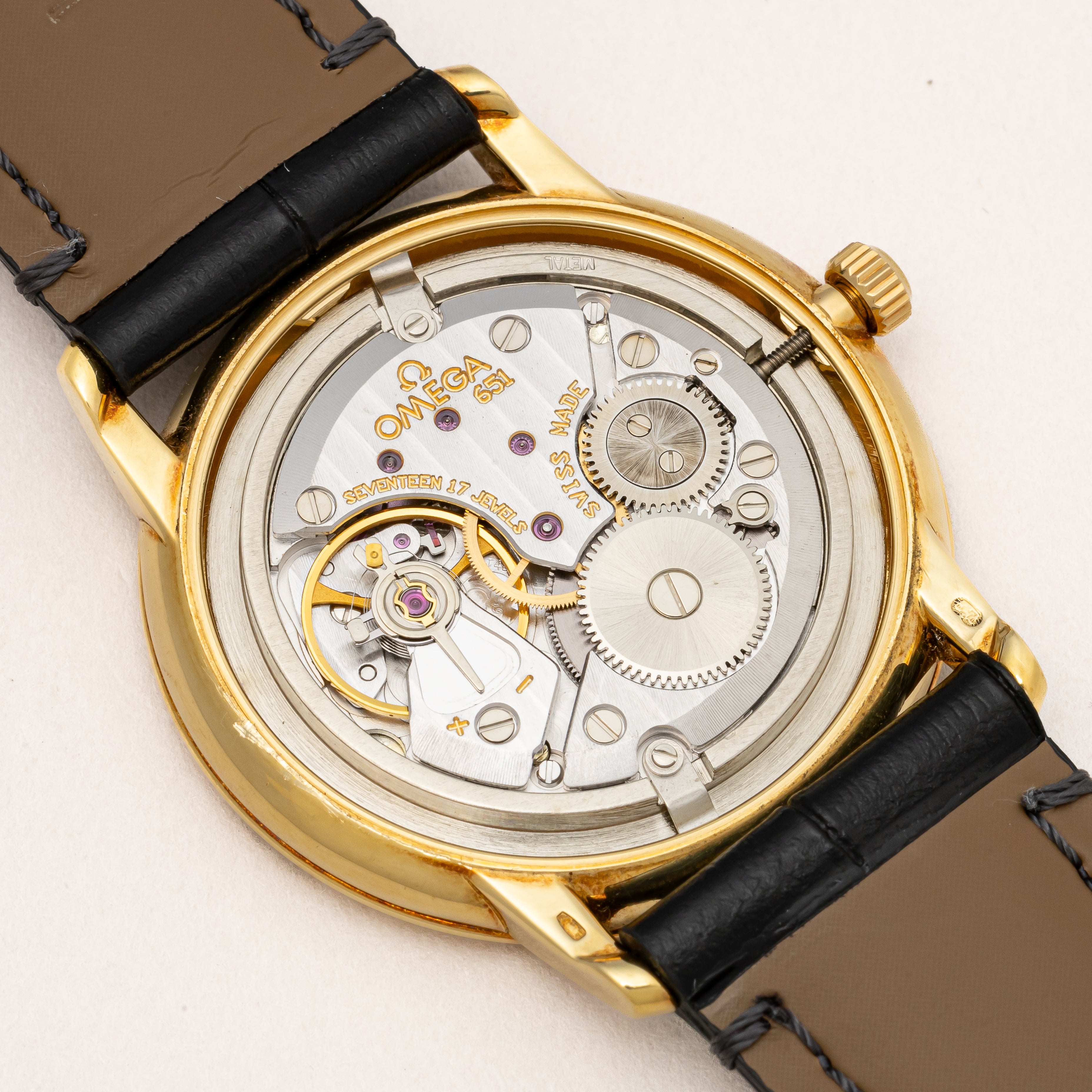 - ヴィンテージ時計の特性上、風防・パッキン・リューズ・バネ棒などの消耗部品は後年メンテナンス過程で交換されている場合がございます。オリジナル性を重視しておりますが、必要に応じて適切な部品にて調整されていますので、よりコレクション性重視のお求めのお客様は事前にご確認ください。