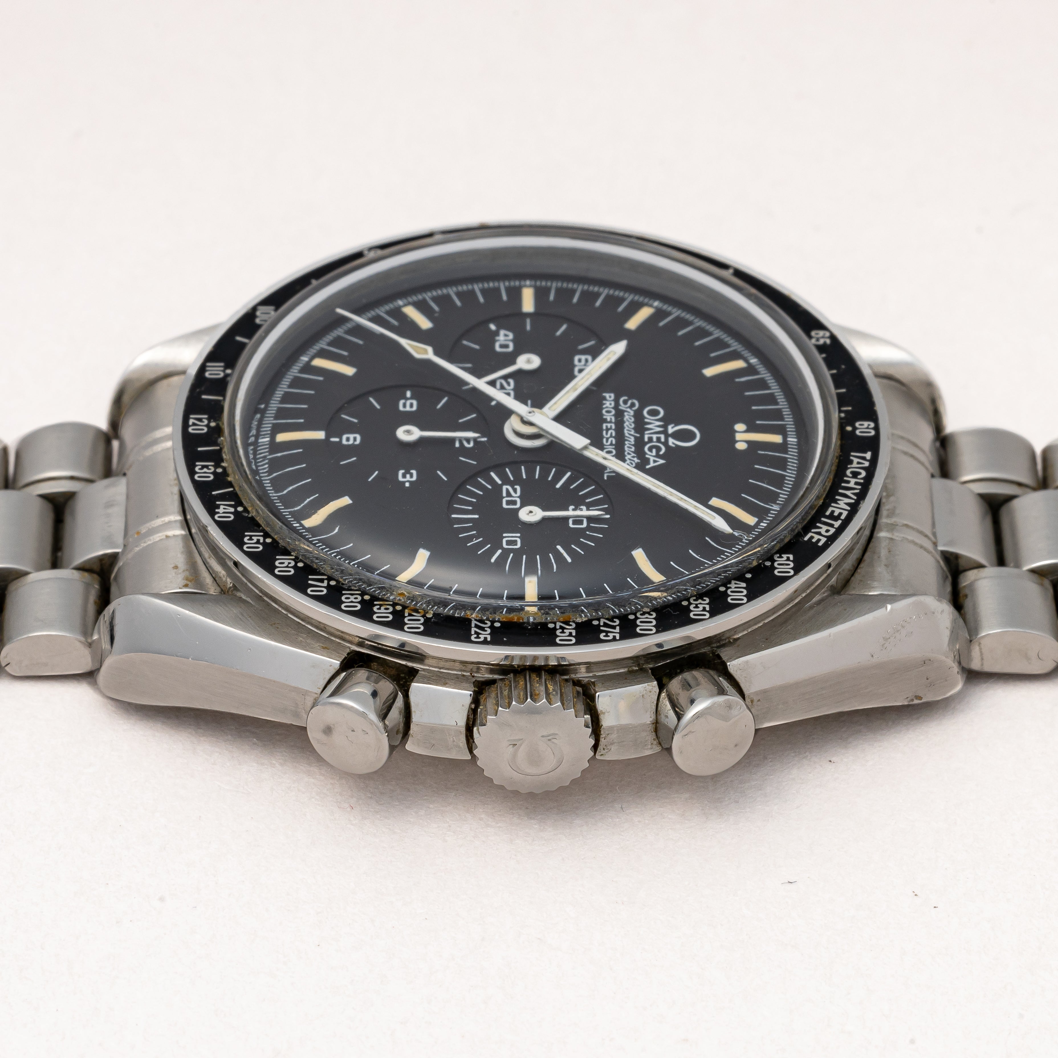 - ヴィンテージ時計の特性上、風防・パッキン・リューズ・バネ棒などの消耗部品は後年メンテナンス過程で交換されている場合がございます。オリジナル性を重視しておりますが、必要に応じて適切な部品にて調整されていますので、よりコレクション性重視のお求めのお客様は事前にご確認ください。